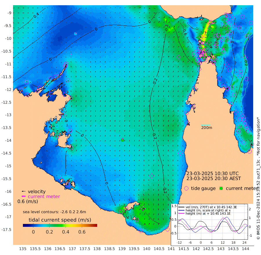 11cm/s 13T +3cm/s rms + 7cm/s -42T. ARA-GOC87 57m 31cm/s 6T +3cm/s rms + 2cm/s -2T. ARA-GOC87 60m 11cm/s 49T +2cm/s rms + 3cm/s 61T. ARA-GOC87 47m -2cm Daru 6cm Bobo Island -17cm Meer Island Barge -1cm Bramble Cay 3cm Unnamed Cay 0cm Pearce Cay 0cm Stephens Island 14cm Merrie England Shoals 13cm Mutacomal Reef -9cm Darnley Island Barge -7cm East Cay -7cm Yorke Island Barge 3cm Rennel Island -2cm Aureed Island -14cm Dungeness Reef -25cm Zagai Island -23cm Yam Island -84cm Dauan Island -63cm Saibai Island -77cm Phipi Reef -41cm Warrior Reef - West -45cm Mabuiag Island Barge 3cm Half Way Island 4cm Coconut Island -1cm Dugong Islet -9cm Poll Island -7cm Kirkcaldie Reef -19cm Suarji Island -11cm Sue Islet -74cm Hawkesbury Island -23cm Alert Patches -16cm Twin Island -73cm Badu Island -27cm St Pauls (Moa Island) -65cm Kubin (Moa Island) -35cm Ince Point -41cm Thursday Island -41cm Nardana Patches -61cm Turtle Head -64cm Round Island -75cm Goods Island -76cm Booby Island -56cm White Rocks Area -44cm Carpentaria -17cm Papou Point -74cm Bampfield Head -58cm Crab Island -63cm Red Wallis Island -65cm Packe Island 14cm Harrington Reef -87cm Herald Camp -2cm Sharp Point -37cm Red Island Point -34cm Possession Island -3cm Alpha Rock -4cm Frederick Point 10cm Wyborn Reef Light 8cm Tetley Island -16cm Triangle Reef 3cm Turtle Head Island -15cm Maclennan Cay -19cm Raine Island 2cm Mcsweeny Reef 0cm Collette Reef -15cm Shadwell Reef 2cm Hannibal Island 3cm Round Point -47cm Vrilya Point 0cm Cape Grenville -10cm Hicks Island -22cm Sir Charles Hardy Island -2cm Harvey Island -1cm Kay Reef -17cm Rocky Island -15cm Chapman Island -16cm Ham Reef -17cm Jubilee Reef -15cm Night Island -12cm Unnamed Reef No. 3 -15cm Morris Island -26cm 1st 3 Mile Opening -18cm Creech Reef -9cm Fife Island -22cm Eden Reef -13cm Stanley Island -5cm Normanby River -8cm Yabooma Island -20cm Hutchison River -7cm Elcho Island -3cm North West Crocodile Island 11cm Cape Wessel 9cm Stevens Island -20cm Guluwuru Island 2cm Hopeful Bay 4cm Auster Point -7cm Two Island Bay -23cm Cadell Strait -13cm Mallison Island -14cm Melville Bay (Gove Harbour) -13cm Truant Island -10cm Cape Arnhem 7cm Cape Grey 9cm Hawk Island 42cm Milner Bay (Groote Eylandt) 37cm Cape Beatrice 58cm West Island 59cm Centre Island 17cm Mornington Island 24cm West Wellesley Islands 4cm Bountiful Island 21cm Albert River Mouth 35cm Sweers Island 13cm Karumba -21cm Nassau River Offshore -46cm Christmas Creek -51cm Archer River -57cm Boyd Point -69cm Weipa (Humbug Point) -39cm Pennefather River -58cm Cullen Point