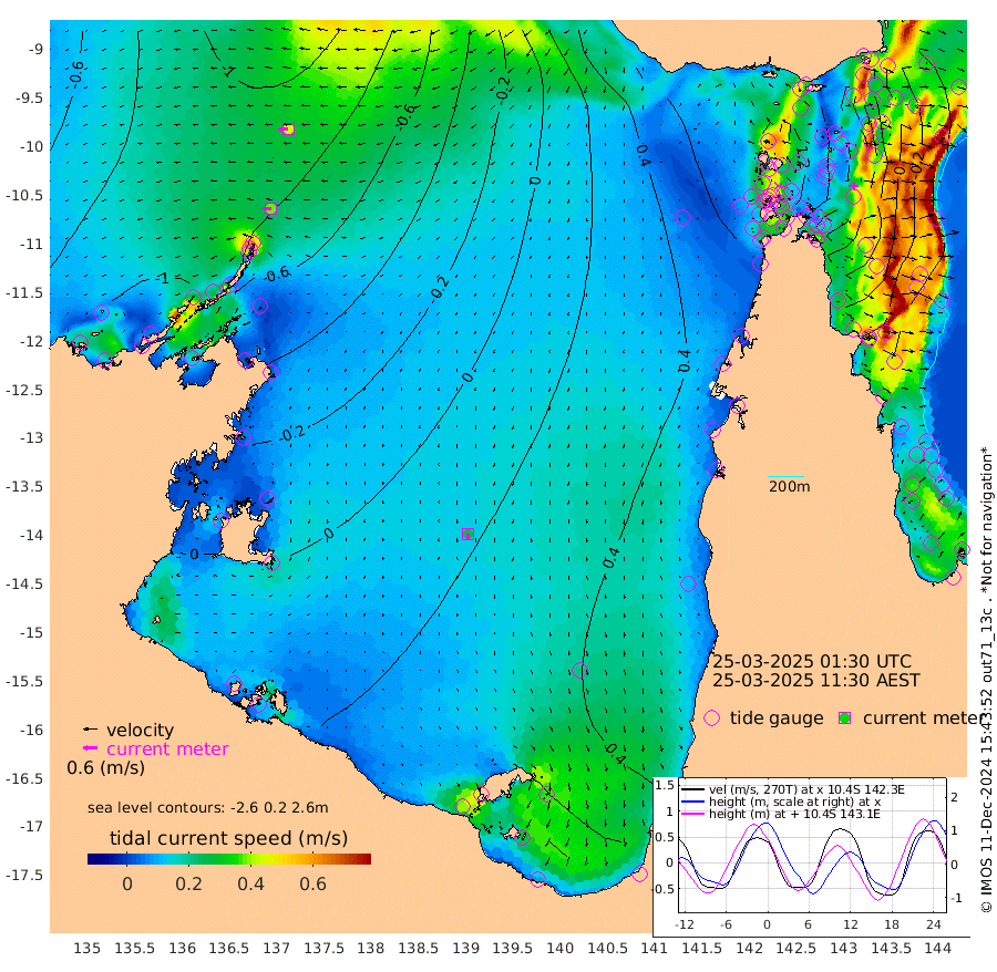 38cm/s -91T +3cm/s rms + 7cm/s -42T. ARA-GOC87 57m 25cm/s -171T +3cm/s rms + 2cm/s -2T. ARA-GOC87 60m 43cm/s -95T +2cm/s rms + 3cm/s 61T. ARA-GOC87 47m 53cm Daru 38cm Bobo Island -27cm Meer Island Barge -13cm Bramble Cay 16cm Unnamed Cay 29cm Pearce Cay 7cm Stephens Island 8cm Merrie England Shoals 49cm Mutacomal Reef -3cm Darnley Island Barge -23cm East Cay 22cm Yorke Island Barge 40cm Rennel Island 41cm Aureed Island 70cm Dungeness Reef 103cm Zagai Island 108cm Yam Island 151cm Dauan Island 131cm Saibai Island 150cm Phipi Reef 126cm Warrior Reef - West 124cm Mabuiag Island Barge 32cm Half Way Island 68cm Coconut Island 52cm Dugong Islet 92cm Poll Island 81cm Kirkcaldie Reef 132cm Suarji Island 81cm Sue Islet 112cm Hawkesbury Island 123cm Alert Patches 118cm Twin Island 120cm Badu Island 132cm St Pauls (Moa Island) 118cm Kubin (Moa Island) 124cm Ince Point 122cm Thursday Island 124cm Nardana Patches 122cm Turtle Head 111cm Round Island 106cm Goods Island 97cm Booby Island 99cm White Rocks Area 63cm Carpentaria 104cm Papou Point 92cm Bampfield Head 79cm Crab Island 106cm Red Wallis Island 124cm Packe Island 63cm Harrington Reef 114cm Herald Camp 43cm Sharp Point 100cm Red Island Point 109cm Possession Island 99cm Alpha Rock 96cm Frederick Point 56cm Wyborn Reef Light 68cm Tetley Island 4cm Triangle Reef 40cm Turtle Head Island -11cm Maclennan Cay -31cm Raine Island 19cm Mcsweeny Reef 7cm Collette Reef -16cm Shadwell Reef -1cm Hannibal Island -8cm Round Point 61cm Vrilya Point -13cm Cape Grenville -17cm Hicks Island -14cm Sir Charles Hardy Island -4cm Harvey Island -30cm Kay Reef -28cm Rocky Island -29cm Chapman Island -32cm Ham Reef -32cm Jubilee Reef -20cm Night Island -28cm Unnamed Reef No. 3 -32cm Morris Island -33cm 1st 3 Mile Opening -31cm Creech Reef -24cm Fife Island -51cm Eden Reef -39cm Stanley Island -44cm Normanby River -108cm Yabooma Island -116cm Hutchison River -106cm Elcho Island -96cm North West Crocodile Island -98cm Cape Wessel -113cm Stevens Island -106cm Guluwuru Island -104cm Hopeful Bay -101cm Auster Point -106cm Two Island Bay -127cm Cadell Strait -170cm Mallison Island -85cm Melville Bay (Gove Harbour) -92cm Truant Island -58cm Cape Arnhem -48cm Cape Grey -23cm Hawk Island -28cm Milner Bay (Groote Eylandt) -9cm Cape Beatrice 11cm West Island 9cm Centre Island 41cm Mornington Island 34cm West Wellesley Islands 38cm Bountiful Island 28cm Albert River Mouth 14cm Sweers Island 46cm Karumba 62cm Nassau River Offshore 68cm Christmas Creek 54cm Archer River 58cm Boyd Point 63cm Weipa (Humbug Point) 44cm Pennefather River 70cm Cullen Point