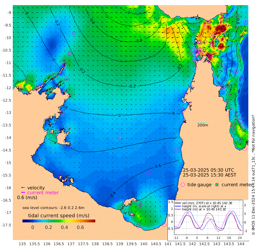 18cm/s -65T +3cm/s rms + 7cm/s -42T. ARA-GOC87 57m 15cm/s -88T +3cm/s rms + 2cm/s -2T. ARA-GOC87 60m 15cm/s -50T +2cm/s rms + 3cm/s 61T. ARA-GOC87 47m -106cm Daru -104cm Bobo Island -43cm Meer Island Barge -75cm Bramble Cay -102cm Unnamed Cay -98cm Pearce Cay -89cm Stephens Island -108cm Merrie England Shoals -122cm Mutacomal Reef -74cm Darnley Island Barge -53cm East Cay -88cm Yorke Island Barge -102cm Rennel Island -93cm Aureed Island -94cm Dungeness Reef -84cm Zagai Island -91cm Yam Island -31cm Dauan Island -41cm Saibai Island -27cm Phipi Reef -75cm Warrior Reef - West -63cm Mabuiag Island Barge -103cm Half Way Island -113cm Coconut Island -108cm Dugong Islet -105cm Poll Island -106cm Kirkcaldie Reef -97cm Suarji Island -98cm Sue Islet -60cm Hawkesbury Island -101cm Alert Patches -108cm Twin Island -57cm Badu Island -101cm St Pauls (Moa Island) -67cm Kubin (Moa Island) -88cm Ince Point -83cm Thursday Island -83cm Nardana Patches -64cm Turtle Head -56cm Round Island -51cm Goods Island -47cm Booby Island -63cm White Rocks Area -58cm Carpentaria -93cm Papou Point -60cm Bampfield Head -35cm Crab Island -57cm Red Wallis Island -68cm Packe Island -128cm Harrington Reef -39cm Herald Camp -26cm Sharp Point -61cm Red Island Point -76cm Possession Island -111cm Alpha Rock -116cm Frederick Point -127cm Wyborn Reef Light -128cm Tetley Island -50cm Triangle Reef -126cm Turtle Head Island -48cm Maclennan Cay -27cm Raine Island -95cm Mcsweeny Reef -82cm Collette Reef -46cm Shadwell Reef -89cm Hannibal Island -82cm Round Point -38cm Vrilya Point -70cm Cape Grenville -56cm Hicks Island -54cm Sir Charles Hardy Island -19cm Harvey Island -59cm Kay Reef -35cm Rocky Island -32cm Chapman Island -30cm Ham Reef -35cm Jubilee Reef -34cm Night Island -35cm Unnamed Reef No. 3 -39cm Morris Island -28cm 1st 3 Mile Opening -34cm Creech Reef -41cm Fife Island -31cm Eden Reef -39cm Stanley Island -47cm Normanby River -4cm Yabooma Island -1cm Hutchison River 5cm Elcho Island 7cm North West Crocodile Island -36cm Cape Wessel -25cm Stevens Island -25cm Guluwuru Island -6cm Hopeful Bay -22cm Auster Point -16cm Two Island Bay -7cm Cadell Strait -77cm Mallison Island -19cm Melville Bay (Gove Harbour) -29cm Truant Island -13cm Cape Arnhem 3cm Cape Grey 18cm Hawk Island 25cm Milner Bay (Groote Eylandt) 33cm Cape Beatrice 38cm West Island 44cm Centre Island 92cm Mornington Island 84cm West Wellesley Islands 118cm Bountiful Island 159cm Albert River Mouth 164cm Sweers Island 160cm Karumba 72cm Nassau River Offshore 44cm Christmas Creek 17cm Archer River -2cm Boyd Point 10cm Weipa (Humbug Point) -16cm Pennefather River -21cm Cullen Point