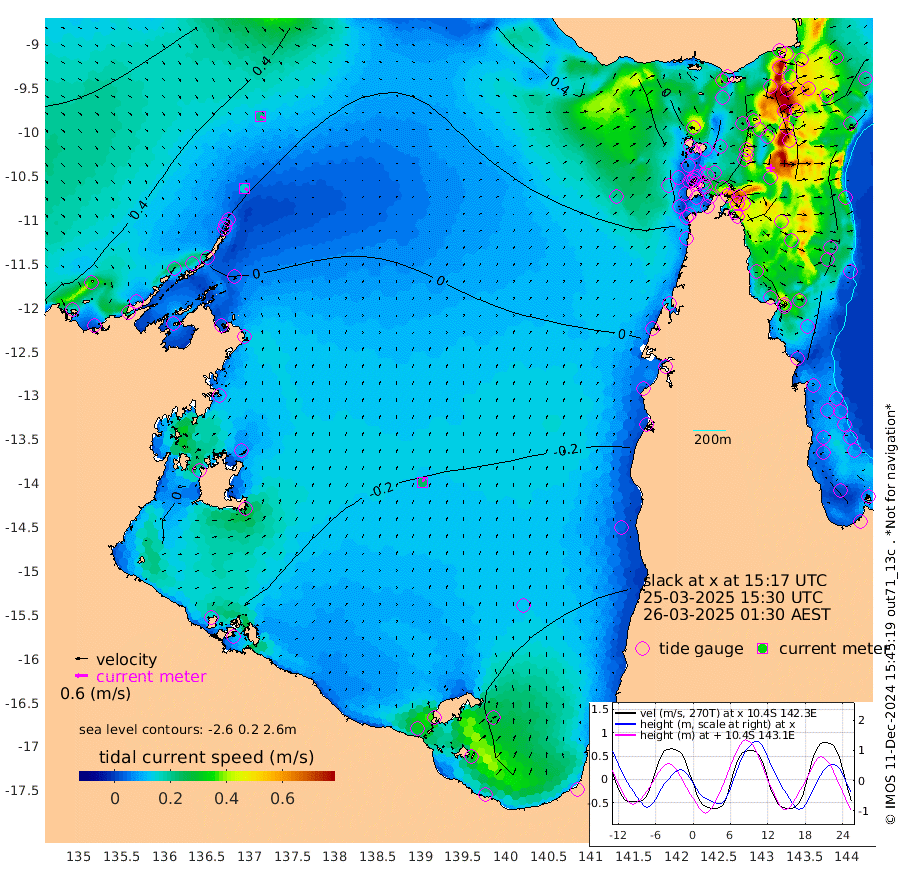 15cm/s 115T +3cm/s rms + 7cm/s -42T. ARA-GOC87 57m 23cm/s 19T +3cm/s rms + 2cm/s -2T. ARA-GOC87 60m 21cm/s 117T +2cm/s rms + 3cm/s 61T. ARA-GOC87 47m -105cm Daru -99cm Bobo Island -92cm Meer Island Barge -116cm Bramble Cay -123cm Unnamed Cay -107cm Pearce Cay -116cm Stephens Island -135cm Merrie England Shoals -119cm Mutacomal Reef -109cm Darnley Island Barge -102cm East Cay -101cm Yorke Island Barge -110cm Rennel Island -93cm Aureed Island -87cm Dungeness Reef -29cm Zagai Island -37cm Yam Island 9cm Dauan Island 17cm Saibai Island -19cm Phipi Reef -38cm Warrior Reef - West 20cm Mabuiag Island Barge -106cm Half Way Island -81cm Coconut Island -101cm Dugong Islet -61cm Poll Island -74cm Kirkcaldie Reef -30cm Suarji Island -57cm Sue Islet 15cm Hawkesbury Island -37cm Alert Patches -33cm Twin Island 30cm Badu Island -19cm St Pauls (Moa Island) 8cm Kubin (Moa Island) -12cm Ince Point -1cm Thursday Island -3cm Nardana Patches -1cm Turtle Head 10cm Round Island 17cm Goods Island 37cm Booby Island 30cm White Rocks Area 59cm Carpentaria -10cm Papou Point 36cm Bampfield Head 33cm Crab Island 32cm Red Wallis Island 2cm Packe Island -100cm Harrington Reef 14cm Herald Camp -5cm Sharp Point 5cm Red Island Point -13cm Possession Island -43cm Alpha Rock -61cm Frederick Point -100cm Wyborn Reef Light -89cm Tetley Island -76cm Triangle Reef -101cm Turtle Head Island -86cm Maclennan Cay -77cm Raine Island -110cm Mcsweeny Reef -112cm Collette Reef -94cm Shadwell Reef -125cm Hannibal Island -122cm Round Point 32cm Vrilya Point -114cm Cape Grenville -101cm Hicks Island -100cm Sir Charles Hardy Island -34cm Harvey Island -111cm Kay Reef -91cm Rocky Island -85cm Chapman Island -80cm Ham Reef -85cm Jubilee Reef -84cm Night Island -84cm Unnamed Reef No. 3 -95cm Morris Island -82cm 1st 3 Mile Opening -88cm Creech Reef -98cm Fife Island -106cm Eden Reef -104cm Stanley Island -111cm Normanby River 42cm Yabooma Island 43cm Hutchison River 45cm Elcho Island 45cm North West Crocodile Island 41cm Cape Wessel 32cm Stevens Island 12cm Guluwuru Island 24cm Hopeful Bay 36cm Auster Point 37cm Two Island Bay 31cm Cadell Strait -84cm Mallison Island 12cm Melville Bay (Gove Harbour) 19cm Truant Island 10cm Cape Arnhem 4cm Cape Grey -10cm Hawk Island 6cm Milner Bay (Groote Eylandt) -12cm Cape Beatrice -14cm West Island -10cm Centre Island -69cm Mornington Island -72cm West Wellesley Islands -74cm Bountiful Island -71cm Albert River Mouth -70cm Sweers Island -81cm Karumba -78cm Nassau River Offshore -68cm Christmas Creek -35cm Archer River -11cm Boyd Point -15cm Weipa (Humbug Point) -2cm Pennefather River 23cm Cullen Point