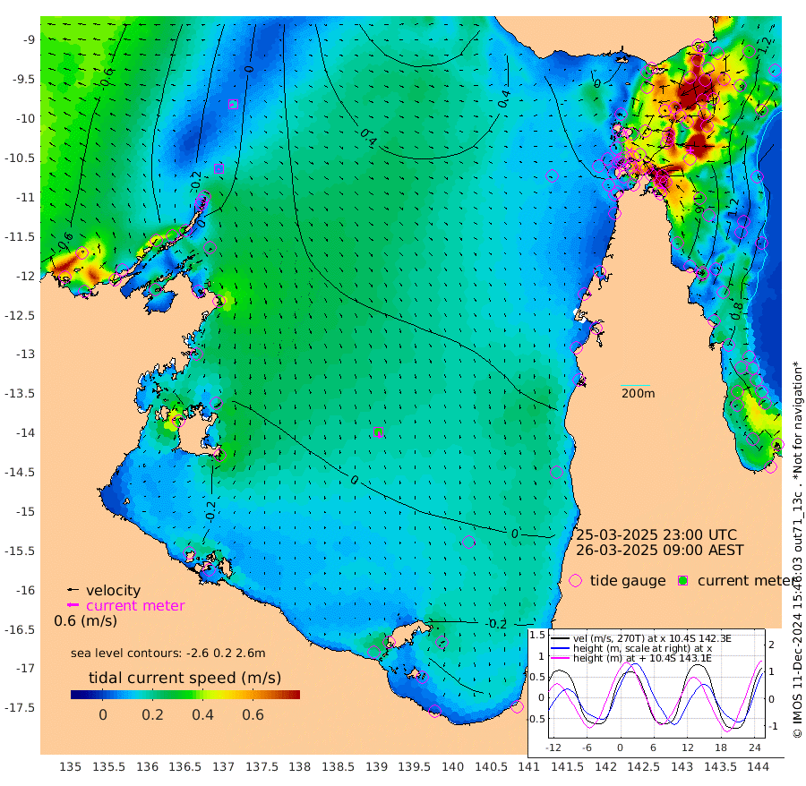 7cm/s -157T +3cm/s rms + 7cm/s -42T. ARA-GOC87 57m 34cm/s 168T +3cm/s rms + 2cm/s -2T. ARA-GOC87 60m 16cm/s -115T +2cm/s rms + 3cm/s 61T. ARA-GOC87 47m 172cm Daru 160cm Bobo Island 100cm Meer Island Barge 140cm Bramble Cay 172cm Unnamed Cay 162cm Pearce Cay 157cm Stephens Island 180cm Merrie England Shoals 189cm Mutacomal Reef 139cm Darnley Island Barge 113cm East Cay 149cm Yorke Island Barge 168cm Rennel Island 150cm Aureed Island 157cm Dungeness Reef 119cm Zagai Island 134cm Yam Island 80cm Dauan Island 72cm Saibai Island 86cm Phipi Reef 128cm Warrior Reef - West 80cm Mabuiag Island Barge 166cm Half Way Island 162cm Coconut Island 173cm Dugong Islet 152cm Poll Island 160cm Kirkcaldie Reef 132cm Suarji Island 141cm Sue Islet 94cm Hawkesbury Island 142cm Alert Patches 143cm Twin Island 81cm Badu Island 134cm St Pauls (Moa Island) 101cm Kubin (Moa Island) 121cm Ince Point 111cm Thursday Island 112cm Nardana Patches 103cm Turtle Head 83cm Round Island 84cm Goods Island 66cm Booby Island 79cm White Rocks Area 44cm Carpentaria 114cm Papou Point 67cm Bampfield Head 47cm Crab Island 77cm Red Wallis Island 108cm Packe Island 184cm Harrington Reef 77cm Herald Camp 34cm Sharp Point 83cm Red Island Point 102cm Possession Island 145cm Alpha Rock 160cm Frederick Point 183cm Wyborn Reef Light 179cm Tetley Island 101cm Triangle Reef 181cm Turtle Head Island 104cm Maclennan Cay 75cm Raine Island 158cm Mcsweeny Reef 145cm Collette Reef 104cm Shadwell Reef 158cm Hannibal Island 149cm Round Point 45cm Vrilya Point 134cm Cape Grenville 116cm Hicks Island 120cm Sir Charles Hardy Island 39cm Harvey Island 119cm Kay Reef 91cm Rocky Island 84cm Chapman Island 79cm Ham Reef 88cm Jubilee Reef 87cm Night Island 86cm Unnamed Reef No. 3 97cm Morris Island 82cm 1st 3 Mile Opening 90cm Creech Reef 100cm Fife Island 97cm Eden Reef 101cm Stanley Island 110cm Normanby River -38cm Yabooma Island -38cm Hutchison River -48cm Elcho Island -47cm North West Crocodile Island -13cm Cape Wessel -21cm Stevens Island 5cm Guluwuru Island -31cm Hopeful Bay -24cm Auster Point -24cm Two Island Bay -23cm Cadell Strait 100cm Mallison Island -1cm Melville Bay (Gove Harbour) 1cm Truant Island -3cm Cape Arnhem -20cm Cape Grey -22cm Hawk Island -52cm Milner Bay (Groote Eylandt) -40cm Cape Beatrice -48cm West Island -60cm Centre Island -42cm Mornington Island -34cm West Wellesley Islands -60cm Bountiful Island -104cm Albert River Mouth -125cm Sweers Island -94cm Karumba 5cm Nassau River Offshore 35cm Christmas Creek 37cm Archer River 43cm Boyd Point 39cm Weipa (Humbug Point) 38cm Pennefather River 40cm Cullen Point