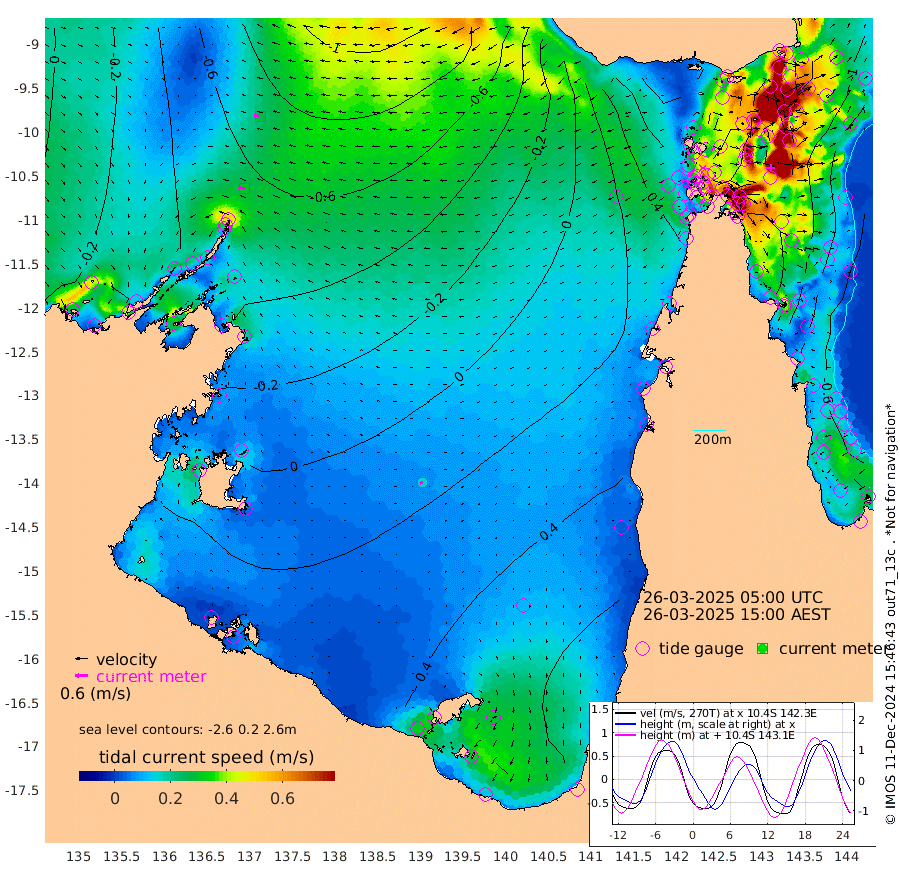 29cm/s -83T +3cm/s rms + 7cm/s -42T. ARA-GOC87 57m 15cm/s -115T +3cm/s rms + 2cm/s -2T. ARA-GOC87 60m 27cm/s -84T +2cm/s rms + 3cm/s 61T. ARA-GOC87 47m -123cm Daru -126cm Bobo Island -77cm Meer Island Barge -111cm Bramble Cay -133cm Unnamed Cay -123cm Pearce Cay -122cm Stephens Island -142cm Merrie England Shoals -140cm Mutacomal Reef -108cm Darnley Island Barge -89cm East Cay -113cm Yorke Island Barge -122cm Rennel Island -110cm Aureed Island -101cm Dungeness Reef -67cm Zagai Island -72cm Yam Island 15cm Dauan Island 0cm Saibai Island 7cm Phipi Reef -52cm Warrior Reef - West -17cm Mabuiag Island Barge -124cm Half Way Island -117cm Coconut Island -122cm Dugong Islet -96cm Poll Island -103cm Kirkcaldie Reef -68cm Suarji Island -92cm Sue Islet -2cm Hawkesbury Island -70cm Alert Patches -78cm Twin Island 2cm Badu Island -65cm St Pauls (Moa Island) -15cm Kubin (Moa Island) -46cm Ince Point -35cm Thursday Island -36cm Nardana Patches -12cm Turtle Head -6cm Round Island 7cm Goods Island 21cm Booby Island 1cm White Rocks Area 6cm Carpentaria -65cm Papou Point 1cm Bampfield Head 23cm Crab Island 14cm Red Wallis Island -6cm Packe Island -138cm Harrington Reef 21cm Herald Camp -14cm Sharp Point -18cm Red Island Point -43cm Possession Island -89cm Alpha Rock -103cm Frederick Point -140cm Wyborn Reef Light -133cm Tetley Island -68cm Triangle Reef -146cm Turtle Head Island -75cm Maclennan Cay -54cm Raine Island -120cm Mcsweeny Reef -111cm Collette Reef -75cm Shadwell Reef -124cm Hannibal Island -116cm Round Point 18cm Vrilya Point -103cm Cape Grenville -89cm Hicks Island -84cm Sir Charles Hardy Island -30cm Harvey Island -95cm Kay Reef -67cm Rocky Island -60cm Chapman Island -58cm Ham Reef -66cm Jubilee Reef -60cm Night Island -62cm Unnamed Reef No. 3 -72cm Morris Island -59cm 1st 3 Mile Opening -64cm Creech Reef -71cm Fife Island -73cm Eden Reef -76cm Stanley Island -90cm Normanby River -57cm Yabooma Island -64cm Hutchison River -47cm Elcho Island -42cm North West Crocodile Island -79cm Cape Wessel -79cm Stevens Island -82cm Guluwuru Island -57cm Hopeful Bay -70cm Auster Point -66cm Two Island Bay -76cm Cadell Strait -157cm Mallison Island -67cm Melville Bay (Gove Harbour) -78cm Truant Island -46cm Cape Arnhem -30cm Cape Grey -7cm Hawk Island 5cm Milner Bay (Groote Eylandt) 18cm Cape Beatrice 33cm West Island 41cm Centre Island 79cm Mornington Island 70cm West Wellesley Islands 92cm Bountiful Island 130cm Albert River Mouth 122cm Sweers Island 134cm Karumba 74cm Nassau River Offshore 59cm Christmas Creek 42cm Archer River 31cm Boyd Point 45cm Weipa (Humbug Point) 20cm Pennefather River 33cm Cullen Point