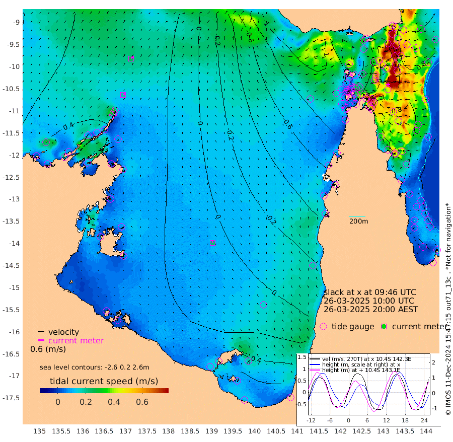 19cm/s 46T +3cm/s rms + 7cm/s -42T. ARA-GOC87 57m 22cm/s -16T +3cm/s rms + 2cm/s -2T. ARA-GOC87 60m 26cm/s 47T +2cm/s rms + 3cm/s 61T. ARA-GOC87 47m 65cm Daru 72cm Bobo Island 65cm Meer Island Barge 87cm Bramble Cay 87cm Unnamed Cay 74cm Pearce Cay 84cm Stephens Island 100cm Merrie England Shoals 75cm Mutacomal Reef 78cm Darnley Island Barge 76cm East Cay 67cm Yorke Island Barge 70cm Rennel Island 59cm Aureed Island 39cm Dungeness Reef -15cm Zagai Island -19cm Yam Island -98cm Dauan Island -89cm Saibai Island -58cm Phipi Reef -28cm Warrior Reef - West -88cm Mabuiag Island Barge 67cm Half Way Island 45cm Coconut Island 54cm Dugong Islet 12cm Poll Island 24cm Kirkcaldie Reef -23cm Suarji Island 10cm Sue Islet -124cm Hawkesbury Island -30cm Alert Patches -27cm Twin Island -124cm Badu Island -46cm St Pauls (Moa Island) -103cm Kubin (Moa Island) -63cm Ince Point -80cm Thursday Island -77cm Nardana Patches -95cm Turtle Head -93cm Round Island -123cm Goods Island -145cm Booby Island -128cm White Rocks Area -139cm Carpentaria -37cm Papou Point -124cm Bampfield Head -118cm Crab Island -142cm Red Wallis Island -113cm Packe Island 62cm Harrington Reef -126cm Herald Camp -12cm Sharp Point -76cm Red Island Point -43cm Possession Island -11cm Alpha Rock 10cm Frederick Point 63cm Wyborn Reef Light 48cm Tetley Island 41cm Triangle Reef 70cm Turtle Head Island 53cm Maclennan Cay 51cm Raine Island 76cm Mcsweeny Reef 79cm Collette Reef 63cm Shadwell Reef 93cm Hannibal Island 90cm Round Point -114cm Vrilya Point 82cm Cape Grenville 74cm Hicks Island 57cm Sir Charles Hardy Island 25cm Harvey Island 81cm Kay Reef 62cm Rocky Island 55cm Chapman Island 51cm Ham Reef 57cm Jubilee Reef 54cm Night Island 53cm Unnamed Reef No. 3 67cm Morris Island 53cm 1st 3 Mile Opening 58cm Creech Reef 68cm Fife Island 76cm Eden Reef 73cm Stanley Island 86cm Normanby River 47cm Yabooma Island 57cm Hutchison River 48cm Elcho Island 44cm North West Crocodile Island 38cm Cape Wessel 63cm Stevens Island 53cm Guluwuru Island 60cm Hopeful Bay 51cm Auster Point 43cm Two Island Bay 60cm Cadell Strait 109cm Mallison Island 51cm Melville Bay (Gove Harbour) 48cm Truant Island 35cm Cape Arnhem 49cm Cape Grey 51cm Hawk Island 56cm Milner Bay (Groote Eylandt) 51cm Cape Beatrice 50cm West Island 52cm Centre Island 71cm Mornington Island 71cm West Wellesley Islands 82cm Bountiful Island 103cm Albert River Mouth 135cm Sweers Island 102cm Karumba 27cm Nassau River Offshore -11cm Christmas Creek -43cm Archer River -71cm Boyd Point -75cm Weipa (Humbug Point) -63cm Pennefather River -112cm Cullen Point