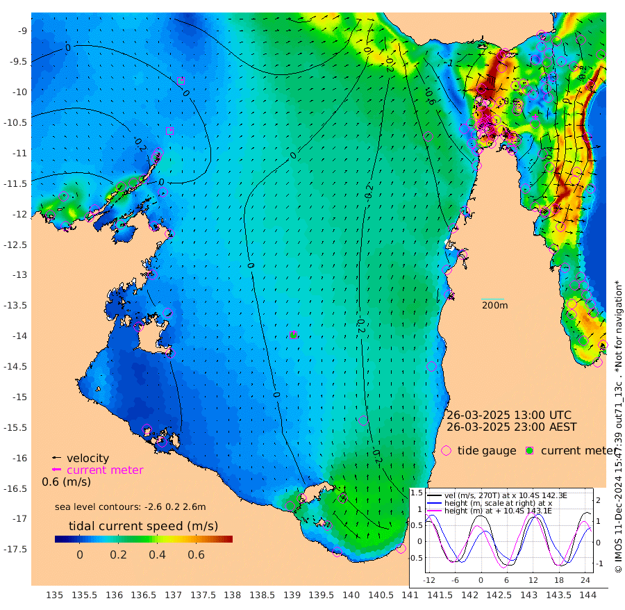 14cm/s 42T +3cm/s rms + 7cm/s -42T. ARA-GOC87 57m 30cm/s 11T +3cm/s rms + 2cm/s -2T. ARA-GOC87 60m 17cm/s 55T +2cm/s rms + 3cm/s 61T. ARA-GOC87 47m 55cm Daru 54cm Bobo Island -30cm Meer Island Barge -4cm Bramble Cay 29cm Unnamed Cay 29cm Pearce Cay 15cm Stephens Island 28cm Merrie England Shoals 57cm Mutacomal Reef 5cm Darnley Island Barge -24cm East Cay 30cm Yorke Island Barge 37cm Rennel Island 41cm Aureed Island 46cm Dungeness Reef 75cm Zagai Island 66cm Yam Island 30cm Dauan Island 47cm Saibai Island 43cm Phipi Reef 63cm Warrior Reef - West 41cm Mabuiag Island Barge 33cm Half Way Island 67cm Coconut Island 41cm Dugong Islet 65cm Poll Island 59cm Kirkcaldie Reef 81cm Suarji Island 66cm Sue Islet -52cm Hawkesbury Island 59cm Alert Patches 65cm Twin Island -25cm Badu Island 70cm St Pauls (Moa Island) -20cm Kubin (Moa Island) 36cm Ince Point 19cm Thursday Island 24cm Nardana Patches -16cm Turtle Head -17cm Round Island -61cm Goods Island -79cm Booby Island -61cm White Rocks Area -56cm Carpentaria 62cm Papou Point -52cm Bampfield Head -63cm Crab Island -69cm Red Wallis Island -41cm Packe Island 67cm Harrington Reef -63cm Herald Camp 31cm Sharp Point -2cm Red Island Point 38cm Possession Island 68cm Alpha Rock 68cm Frederick Point 68cm Wyborn Reef Light 73cm Tetley Island -14cm Triangle Reef 56cm Turtle Head Island -26cm Maclennan Cay -46cm Raine Island 25cm Mcsweeny Reef 15cm Collette Reef -22cm Shadwell Reef 14cm Hannibal Island -3cm Round Point -65cm Vrilya Point -11cm Cape Grenville -19cm Hicks Island -33cm Sir Charles Hardy Island -4cm Harvey Island -27cm Kay Reef -40cm Rocky Island -46cm Chapman Island -46cm Ham Reef -42cm Jubilee Reef -36cm Night Island -45cm Unnamed Reef No. 3 -42cm Morris Island -50cm 1st 3 Mile Opening -46cm Creech Reef -38cm Fife Island -63cm Eden Reef -47cm Stanley Island -44cm Normanby River -33cm Yabooma Island -31cm Hutchison River -27cm Elcho Island -24cm North West Crocodile Island 8cm Cape Wessel -1cm Stevens Island 3cm Guluwuru Island -13cm Hopeful Bay 2cm Auster Point -12cm Two Island Bay -24cm Cadell Strait 7cm Mallison Island 8cm Melville Bay (Gove Harbour) 10cm Truant Island 12cm Cape Arnhem 28cm Cape Grey 29cm Hawk Island 51cm Milner Bay (Groote Eylandt) 37cm Cape Beatrice 54cm West Island 57cm Centre Island 20cm Mornington Island 16cm West Wellesley Islands 13cm Bountiful Island 16cm Albert River Mouth 46cm Sweers Island 16cm Karumba -29cm Nassau River Offshore -54cm Christmas Creek -67cm Archer River -66cm Boyd Point -83cm Weipa (Humbug Point) -52cm Pennefather River -69cm Cullen Point