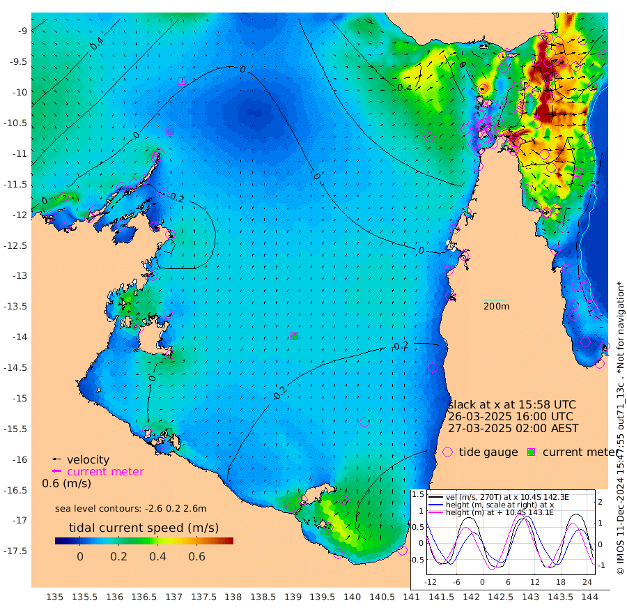 6cm/s 117T +3cm/s rms + 7cm/s -42T. ARA-GOC87 57m 24cm/s 20T +3cm/s rms + 2cm/s -2T. ARA-GOC87 60m 13cm/s 123T +2cm/s rms + 3cm/s 61T. ARA-GOC87 47m -121cm Daru -116cm Bobo Island -105cm Meer Island Barge -132cm Bramble Cay -139cm Unnamed Cay -128cm Pearce Cay -135cm Stephens Island -151cm Merrie England Shoals -133cm Mutacomal Reef -123cm Darnley Island Barge -117cm East Cay -115cm Yorke Island Barge -127cm Rennel Island -108cm Aureed Island -102cm Dungeness Reef -37cm Zagai Island -46cm Yam Island 7cm Dauan Island 22cm Saibai Island -22cm Phipi Reef -46cm Warrior Reef - West 22cm Mabuiag Island Barge -124cm Half Way Island -96cm Coconut Island -117cm Dugong Islet -74cm Poll Island -87cm Kirkcaldie Reef -36cm Suarji Island -63cm Sue Islet 9cm Hawkesbury Island -43cm Alert Patches -42cm Twin Island 24cm Badu Island -26cm St Pauls (Moa Island) -1cm Kubin (Moa Island) -18cm Ince Point -6cm Thursday Island -8cm Nardana Patches -8cm Turtle Head 6cm Round Island 9cm Goods Island 33cm Booby Island 23cm White Rocks Area 63cm Carpentaria -19cm Papou Point 36cm Bampfield Head 28cm Crab Island 26cm Red Wallis Island -7cm Packe Island -117cm Harrington Reef 13cm Herald Camp -3cm Sharp Point 0cm Red Island Point -17cm Possession Island -48cm Alpha Rock -73cm Frederick Point -115cm Wyborn Reef Light -103cm Tetley Island -86cm Triangle Reef -121cm Turtle Head Island -99cm Maclennan Cay -89cm Raine Island -126cm Mcsweeny Reef -124cm Collette Reef -104cm Shadwell Reef -140cm Hannibal Island -139cm Round Point 30cm Vrilya Point -127cm Cape Grenville -116cm Hicks Island -112cm Sir Charles Hardy Island -38cm Harvey Island -122cm Kay Reef -102cm Rocky Island -94cm Chapman Island -89cm Ham Reef -97cm Jubilee Reef -95cm Night Island -94cm Unnamed Reef No. 3 -108cm Morris Island -94cm 1st 3 Mile Opening -100cm Creech Reef -112cm Fife Island -121cm Eden Reef -115cm Stanley Island -127cm Normanby River -3cm Yabooma Island -11cm Hutchison River 0cm Elcho Island 1cm North West Crocodile Island 11cm Cape Wessel -8cm Stevens Island -17cm Guluwuru Island -9cm Hopeful Bay 3cm Auster Point 2cm Two Island Bay -20cm Cadell Strait -92cm Mallison Island -14cm Melville Bay (Gove Harbour) -9cm Truant Island -6cm Cape Arnhem -3cm Cape Grey -13cm Hawk Island 11cm Milner Bay (Groote Eylandt) -6cm Cape Beatrice 4cm West Island 10cm Centre Island -54cm Mornington Island -56cm West Wellesley Islands -55cm Bountiful Island -59cm Albert River Mouth -51cm Sweers Island -67cm Karumba -69cm Nassau River Offshore -62cm Christmas Creek -32cm Archer River -9cm Boyd Point -15cm Weipa (Humbug Point) -2cm Pennefather River 25cm Cullen Point