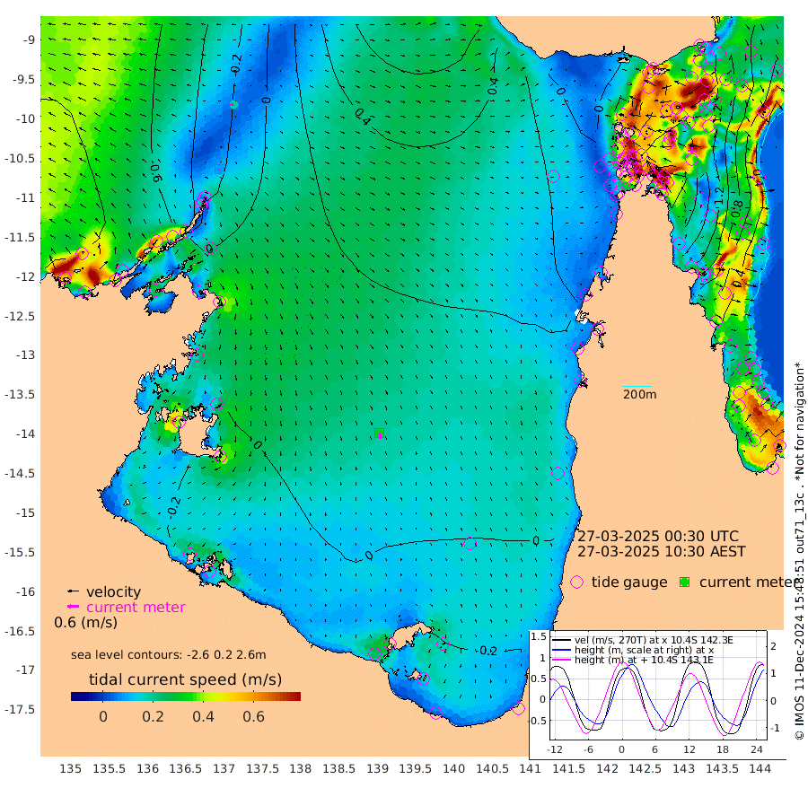 8cm/s -118T +3cm/s rms + 7cm/s -42T. ARA-GOC87 57m 32cm/s 170T +3cm/s rms + 2cm/s -2T. ARA-GOC87 60m 18cm/s -101T +2cm/s rms + 3cm/s 61T. ARA-GOC87 47m 172cm Daru 156cm Bobo Island 60cm Meer Island Barge 103cm Bramble Cay 147cm Unnamed Cay 146cm Pearce Cay 129cm Stephens Island 149cm Merrie England Shoals 182cm Mutacomal Reef 111cm Darnley Island Barge 70cm East Cay 136cm Yorke Island Barge 156cm Rennel Island 144cm Aureed Island 163cm Dungeness Reef 159cm Zagai Island 170cm Yam Island 140cm Dauan Island 129cm Saibai Island 140cm Phipi Reef 174cm Warrior Reef - West 122cm Mabuiag Island Barge 153cm Half Way Island 169cm Coconut Island 169cm Dugong Islet 174cm Poll Island 174cm Kirkcaldie Reef 169cm Suarji Island 163cm Sue Islet 93cm Hawkesbury Island 168cm Alert Patches 172cm Twin Island 96cm Badu Island 175cm St Pauls (Moa Island) 115cm Kubin (Moa Island) 149cm Ince Point 133cm Thursday Island 137cm Nardana Patches 115cm Turtle Head 88cm Round Island 79cm Goods Island 53cm Booby Island 67cm White Rocks Area 31cm Carpentaria 146cm Papou Point 48cm Bampfield Head 40cm Crab Island 69cm Red Wallis Island 111cm Packe Island 184cm Harrington Reef 71cm Herald Camp 53cm Sharp Point 95cm Red Island Point 121cm Possession Island 168cm Alpha Rock 179cm Frederick Point 182cm Wyborn Reef Light 186cm Tetley Island 75cm Triangle Reef 172cm Turtle Head Island 68cm Maclennan Cay 32cm Raine Island 137cm Mcsweeny Reef 118cm Collette Reef 68cm Shadwell Reef 125cm Hannibal Island 109cm Round Point 32cm Vrilya Point 93cm Cape Grenville 77cm Hicks Island 78cm Sir Charles Hardy Island 27cm Harvey Island 69cm Kay Reef 46cm Rocky Island 36cm Chapman Island 34cm Ham Reef 43cm Jubilee Reef 48cm Night Island 40cm Unnamed Reef No. 3 48cm Morris Island 35cm 1st 3 Mile Opening 43cm Creech Reef 55cm Fife Island 37cm Eden Reef 47cm Stanley Island 53cm Normanby River -70cm Yabooma Island -66cm Hutchison River -73cm Elcho Island -67cm North West Crocodile Island -31cm Cape Wessel -46cm Stevens Island -8cm Guluwuru Island -60cm Hopeful Bay -46cm Auster Point -44cm Two Island Bay -42cm Cadell Strait 62cm Mallison Island -13cm Melville Bay (Gove Harbour) -12cm Truant Island -8cm Cape Arnhem -20cm Cape Grey -18cm Hawk Island -44cm Milner Bay (Groote Eylandt) -29cm Cape Beatrice -32cm West Island -43cm Centre Island -22cm Mornington Island -20cm West Wellesley Islands -43cm Bountiful Island -73cm Albert River Mouth -98cm Sweers Island -64cm Karumba 12cm Nassau River Offshore 33cm Christmas Creek 23cm Archer River 32cm Boyd Point 24cm Weipa (Humbug Point) 26cm Pennefather River 30cm Cullen Point