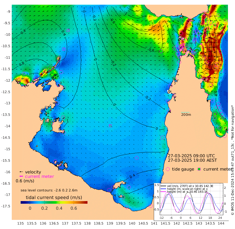 10cm/s 53T +3cm/s rms + 7cm/s -42T. ARA-GOC87 57m 18cm/s -46T +3cm/s rms + 2cm/s -2T. ARA-GOC87 60m 17cm/s 52T +2cm/s rms + 3cm/s 61T. ARA-GOC87 47m -9cm Daru 3cm Bobo Island 60cm Meer Island Barge 56cm Bramble Cay 27cm Unnamed Cay 21cm Pearce Cay 39cm Stephens Island 39cm Merrie England Shoals -6cm Mutacomal Reef 40cm Darnley Island Barge 65cm East Cay 12cm Yorke Island Barge 10cm Rennel Island 1cm Aureed Island -23cm Dungeness Reef -88cm Zagai Island -90cm Yam Island -131cm Dauan Island -136cm Saibai Island -95cm Phipi Reef -94cm Warrior Reef - West -128cm Mabuiag Island Barge 8cm Half Way Island -30cm Coconut Island -13cm Dugong Islet -60cm Poll Island -48cm Kirkcaldie Reef -96cm Suarji Island -66cm Sue Islet -101cm Hawkesbury Island -92cm Alert Patches -94cm Twin Island -113cm Badu Island -114cm St Pauls (Moa Island) -102cm Kubin (Moa Island) -106cm Ince Point -108cm Thursday Island -108cm Nardana Patches -95cm Turtle Head -87cm Round Island -88cm Goods Island -95cm Booby Island -91cm White Rocks Area -107cm Carpentaria -96cm Papou Point -88cm Bampfield Head -74cm Crab Island -100cm Red Wallis Island -96cm Packe Island -20cm Harrington Reef -89cm Herald Camp -40cm Sharp Point -83cm Red Island Point -80cm Possession Island -86cm Alpha Rock -65cm Frederick Point -22cm Wyborn Reef Light -38cm Tetley Island 28cm Triangle Reef -5cm Turtle Head Island 46cm Maclennan Cay 64cm Raine Island 23cm Mcsweeny Reef 35cm Collette Reef 51cm Shadwell Reef 46cm Hannibal Island 58cm Round Point -73cm Vrilya Point 56cm Cape Grenville 60cm Hicks Island 48cm Sir Charles Hardy Island 18cm Harvey Island 68cm Kay Reef 66cm Rocky Island 65cm Chapman Island 61cm Ham Reef 62cm Jubilee Reef 58cm Night Island 61cm Unnamed Reef No. 3 71cm Morris Island 66cm 1st 3 Mile Opening 66cm Creech Reef 71cm Fife Island 92cm Eden Reef 78cm Stanley Island 87cm Normanby River 89cm Yabooma Island 101cm Hutchison River 90cm Elcho Island 83cm North West Crocodile Island 37cm Cape Wessel 77cm Stevens Island 43cm Guluwuru Island 84cm Hopeful Bay 60cm Auster Point 58cm Two Island Bay 85cm Cadell Strait 46cm Mallison Island 45cm Melville Bay (Gove Harbour) 40cm Truant Island 27cm Cape Arnhem 33cm Cape Grey 38cm Hawk Island 36cm Milner Bay (Groote Eylandt) 37cm Cape Beatrice 24cm West Island 29cm Centre Island 72cm Mornington Island 70cm West Wellesley Islands 90cm Bountiful Island 125cm Albert River Mouth 143cm Sweers Island 124cm Karumba 51cm Nassau River Offshore 21cm Christmas Creek -2cm Archer River -33cm Boyd Point -22cm Weipa (Humbug Point) -30cm Pennefather River -67cm Cullen Point