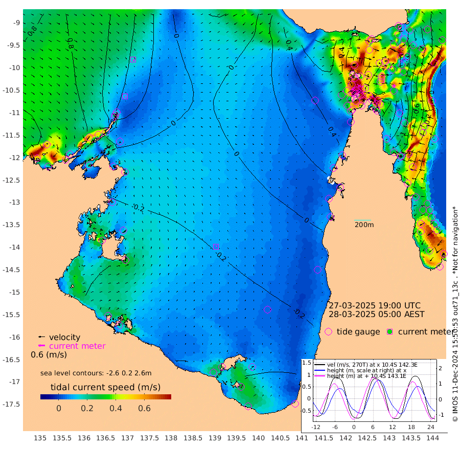 11cm/s 148T +3cm/s rms + 7cm/s -42T. ARA-GOC87 57m 6cm/s 40T +3cm/s rms + 2cm/s -2T. ARA-GOC87 60m 16cm/s 142T +2cm/s rms + 3cm/s 61T. ARA-GOC87 47m -136cm Daru -123cm Bobo Island -24cm Meer Island Barge -63cm Bramble Cay -105cm Unnamed Cay -104cm Pearce Cay -88cm Stephens Island -106cm Merrie England Shoals -136cm Mutacomal Reef -73cm Darnley Island Barge -32cm East Cay -99cm Yorke Island Barge -114cm Rennel Island -110cm Aureed Island -124cm Dungeness Reef -131cm Zagai Island -127cm Yam Island -99cm Dauan Island -89cm Saibai Island -125cm Phipi Reef -140cm Warrior Reef - West -65cm Mabuiag Island Barge -109cm Half Way Island -133cm Coconut Island -119cm Dugong Islet -131cm Poll Island -130cm Kirkcaldie Reef -131cm Suarji Island -122cm Sue Islet 25cm Hawkesbury Island -114cm Alert Patches -117cm Twin Island 0cm Badu Island -122cm St Pauls (Moa Island) -20cm Kubin (Moa Island) -82cm Ince Point -57cm Thursday Island -65cm Nardana Patches -29cm Turtle Head -9cm Round Island 31cm Goods Island 67cm Booby Island 52cm White Rocks Area 79cm Carpentaria -97cm Papou Point 59cm Bampfield Head 48cm Crab Island 50cm Red Wallis Island -6cm Packe Island -139cm Harrington Reef 33cm Herald Camp -47cm Sharp Point -23cm Red Island Point -72cm Possession Island -115cm Alpha Rock -128cm Frederick Point -137cm Wyborn Reef Light -139cm Tetley Island -37cm Triangle Reef -124cm Turtle Head Island -26cm Maclennan Cay 2cm Raine Island -96cm Mcsweeny Reef -83cm Collette Reef -34cm Shadwell Reef -88cm Hannibal Island -66cm Round Point 56cm Vrilya Point -51cm Cape Grenville -39cm Hicks Island -25cm Sir Charles Hardy Island -16cm Harvey Island -26cm Kay Reef -8cm Rocky Island 4cm Chapman Island 6cm Ham Reef -4cm Jubilee Reef -16cm Night Island 1cm Unnamed Reef No. 3 -9cm Morris Island 3cm 1st 3 Mile Opening -4cm Creech Reef -19cm Fife Island 6cm Eden Reef -7cm Stanley Island -9cm Normanby River 100cm Yabooma Island 90cm Hutchison River 88cm Elcho Island 84cm North West Crocodile Island 56cm Cape Wessel 61cm Stevens Island 21cm Guluwuru Island 68cm Hopeful Bay 60cm Auster Point 66cm Two Island Bay 62cm Cadell Strait -43cm Mallison Island 18cm Melville Bay (Gove Harbour) 23cm Truant Island 5cm Cape Arnhem -5cm Cape Grey -24cm Hawk Island -21cm Milner Bay (Groote Eylandt) -31cm Cape Beatrice -43cm West Island -43cm Centre Island -83cm Mornington Island -75cm West Wellesley Islands -65cm Bountiful Island -86cm Albert River Mouth -89cm Sweers Island -95cm Karumba -60cm Nassau River Offshore -35cm Christmas Creek 10cm Archer River 25cm Boyd Point 36cm Weipa (Humbug Point) 21cm Pennefather River 51cm Cullen Point