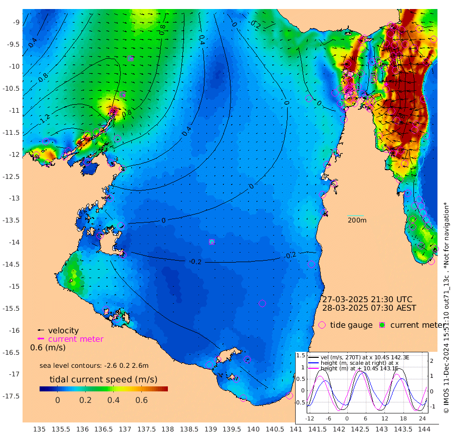 24cm/s 120T +3cm/s rms + 7cm/s -42T. ARA-GOC87 57m 16cm/s 169T +3cm/s rms + 2cm/s -2T. ARA-GOC87 60m 21cm/s 118T +2cm/s rms + 3cm/s 61T. ARA-GOC87 47m 53cm Daru 64cm Bobo Island 107cm Meer Island Barge 112cm Bramble Cay 92cm Unnamed Cay 89cm Pearce Cay 102cm Stephens Island 101cm Merrie England Shoals 65cm Mutacomal Reef 97cm Darnley Island Barge 116cm East Cay 73cm Yorke Island Barge 75cm Rennel Island 60cm Aureed Island 40cm Dungeness Reef -30cm Zagai Island -16cm Yam Island -70cm Dauan Island -73cm Saibai Island -71cm Phipi Reef -34cm Warrior Reef - West -48cm Mabuiag Island Barge 78cm Half Way Island 33cm Coconut Island 65cm Dugong Islet 11cm Poll Island 23cm Kirkcaldie Reef -33cm Suarji Island 4cm Sue Islet 36cm Hawkesbury Island -16cm Alert Patches -12cm Twin Island 3cm Badu Island -32cm St Pauls (Moa Island) 14cm Kubin (Moa Island) -16cm Ince Point -10cm Thursday Island -14cm Nardana Patches 6cm Turtle Head 4cm Round Island 35cm Goods Island 36cm Booby Island 41cm White Rocks Area 16cm Carpentaria -18cm Papou Point 29cm Bampfield Head 17cm Crab Island 31cm Red Wallis Island 22cm Packe Island 55cm Harrington Reef 22cm Herald Camp -29cm Sharp Point 5cm Red Island Point -14cm Possession Island -6cm Alpha Rock 14cm Frederick Point 53cm Wyborn Reef Light 39cm Tetley Island 78cm Triangle Reef 77cm Turtle Head Island 101cm Maclennan Cay 103cm Raine Island 85cm Mcsweeny Reef 86cm Collette Reef 92cm Shadwell Reef 101cm Hannibal Island 117cm Round Point 17cm Vrilya Point 109cm Cape Grenville 109cm Hicks Island 116cm Sir Charles Hardy Island 33cm Harvey Island 120cm Kay Reef 110cm Rocky Island 109cm Chapman Island 106cm Ham Reef 110cm Jubilee Reef 95cm Night Island 108cm Unnamed Reef No. 3 118cm Morris Island 110cm 1st 3 Mile Opening 112cm Creech Reef 113cm Fife Island 142cm Eden Reef 124cm Stanley Island 141cm Normanby River 169cm Yabooma Island 184cm Hutchison River 152cm Elcho Island 144cm North West Crocodile Island 113cm Cape Wessel 142cm Stevens Island 109cm Guluwuru Island 129cm Hopeful Bay 120cm Auster Point 130cm Two Island Bay 168cm Cadell Strait 110cm Mallison Island 92cm Melville Bay (Gove Harbour) 99cm Truant Island 52cm Cape Arnhem 22cm Cape Grey -6cm Hawk Island -41cm Milner Bay (Groote Eylandt) -43cm Cape Beatrice -83cm West Island -96cm Centre Island -90cm Mornington Island -78cm West Wellesley Islands -75cm Bountiful Island -108cm Albert River Mouth -124cm Sweers Island -112cm Karumba -44cm Nassau River Offshore -15cm Christmas Creek 11cm Archer River 16cm Boyd Point 25cm Weipa (Humbug Point) 7cm Pennefather River 11cm Cullen Point