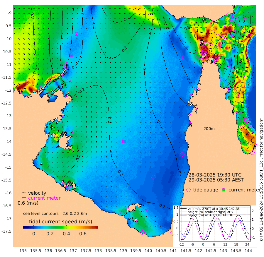9cm/s -137T +3cm/s rms + 7cm/s -42T. ARA-GOC87 57m 7cm/s 15T +3cm/s rms + 2cm/s -2T. ARA-GOC87 60m 11cm/s -175T +2cm/s rms + 3cm/s 61T. ARA-GOC87 47m -142cm Daru -130cm Bobo Island -31cm Meer Island Barge -68cm Bramble Cay -108cm Unnamed Cay -110cm Pearce Cay -95cm Stephens Island -109cm Merrie England Shoals -138cm Mutacomal Reef -81cm Darnley Island Barge -37cm East Cay -106cm Yorke Island Barge -118cm Rennel Island -116cm Aureed Island -128cm Dungeness Reef -136cm Zagai Island -131cm Yam Island -103cm Dauan Island -92cm Saibai Island -124cm Phipi Reef -144cm Warrior Reef - West -63cm Mabuiag Island Barge -115cm Half Way Island -137cm Coconut Island -124cm Dugong Islet -134cm Poll Island -134cm Kirkcaldie Reef -128cm Suarji Island -125cm Sue Islet 31cm Hawkesbury Island -111cm Alert Patches -117cm Twin Island 3cm Badu Island -123cm St Pauls (Moa Island) -18cm Kubin (Moa Island) -80cm Ince Point -54cm Thursday Island -62cm Nardana Patches -25cm Turtle Head -1cm Round Island 35cm Goods Island 73cm Booby Island 60cm White Rocks Area 81cm Carpentaria -99cm Papou Point 69cm Bampfield Head 51cm Crab Island 56cm Red Wallis Island -1cm Packe Island -143cm Harrington Reef 42cm Herald Camp -47cm Sharp Point -19cm Red Island Point -67cm Possession Island -114cm Alpha Rock -130cm Frederick Point -139cm Wyborn Reef Light -142cm Tetley Island -41cm Triangle Reef -131cm Turtle Head Island -31cm Maclennan Cay -3cm Raine Island -101cm Mcsweeny Reef -86cm Collette Reef -38cm Shadwell Reef -92cm Hannibal Island -69cm Round Point 57cm Vrilya Point -54cm Cape Grenville -44cm Hicks Island -30cm Sir Charles Hardy Island -17cm Harvey Island -28cm Kay Reef -12cm Rocky Island 2cm Chapman Island 3cm Ham Reef -9cm Jubilee Reef -20cm Night Island -2cm Unnamed Reef No. 3 -13cm Morris Island -3cm 1st 3 Mile Opening -9cm Creech Reef -23cm Fife Island 0cm Eden Reef -10cm Stanley Island -14cm Normanby River 87cm Yabooma Island 70cm Hutchison River 73cm Elcho Island 71cm North West Crocodile Island 35cm Cape Wessel 44cm Stevens Island -10cm Guluwuru Island 56cm Hopeful Bay 43cm Auster Point 44cm Two Island Bay 30cm Cadell Strait -90cm Mallison Island -4cm Melville Bay (Gove Harbour) -3cm Truant Island -13cm Cape Arnhem -12cm Cape Grey -24cm Hawk Island -14cm Milner Bay (Groote Eylandt) -22cm Cape Beatrice -24cm West Island -24cm Centre Island -61cm Mornington Island -53cm West Wellesley Islands -35cm Bountiful Island -58cm Albert River Mouth -54cm Sweers Island -63cm Karumba -42cm Nassau River Offshore -24cm Christmas Creek 17cm Archer River 28cm Boyd Point 42cm Weipa (Humbug Point) 22cm Pennefather River 55cm Cullen Point