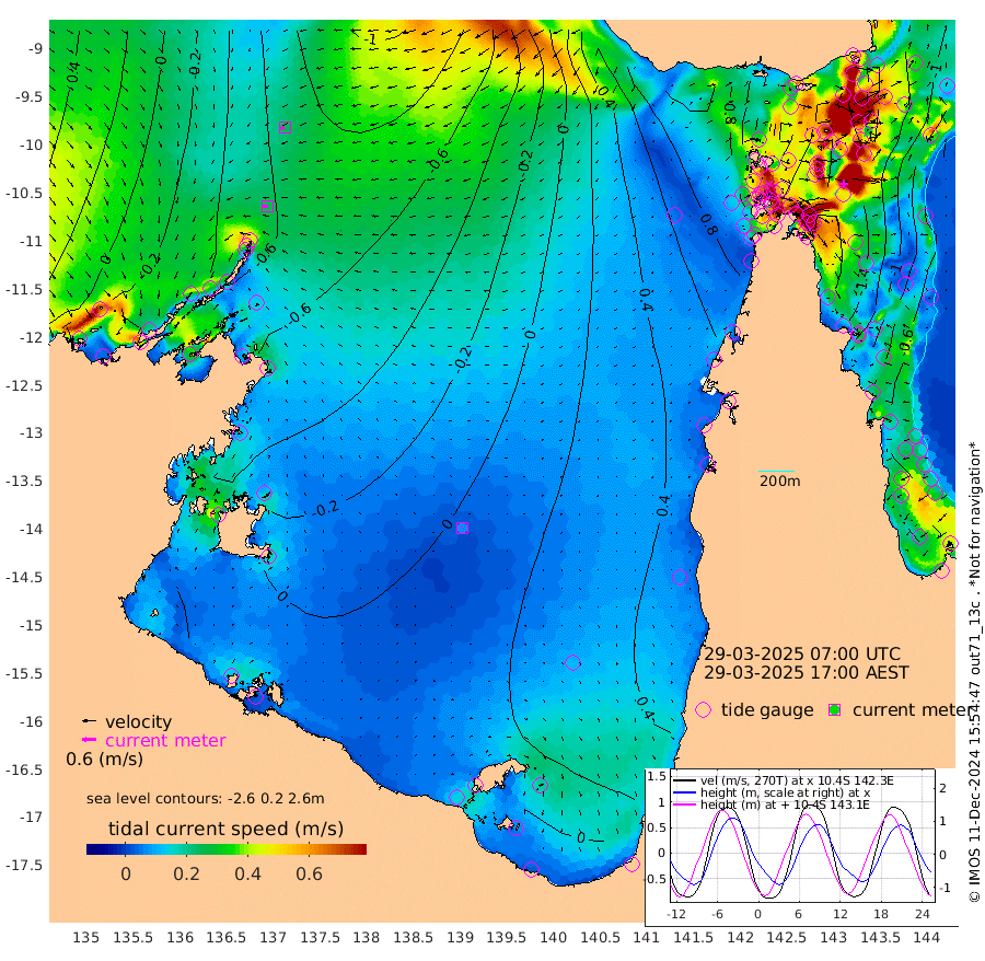 25cm/s -95T +3cm/s rms + 7cm/s -42T. ARA-GOC87 57m 7cm/s -86T +3cm/s rms + 2cm/s -2T. ARA-GOC87 60m 25cm/s -107T +2cm/s rms + 3cm/s 61T. ARA-GOC87 47m -164cm Daru -165cm Bobo Island -81cm Meer Island Barge -117cm Bramble Cay -153cm Unnamed Cay -151cm Pearce Cay -141cm Stephens Island -149cm Merrie England Shoals -166cm Mutacomal Reef -128cm Darnley Island Barge -89cm East Cay -145cm Yorke Island Barge -149cm Rennel Island -148cm Aureed Island -146cm Dungeness Reef -133cm Zagai Island -129cm Yam Island -67cm Dauan Island -72cm Saibai Island -82cm Phipi Reef -129cm Warrior Reef - West -54cm Mabuiag Island Barge -147cm Half Way Island -155cm Coconut Island -153cm Dugong Islet -141cm Poll Island -141cm Kirkcaldie Reef -130cm Suarji Island -138cm Sue Islet 22cm Hawkesbury Island -106cm Alert Patches -116cm Twin Island 7cm Badu Island -115cm St Pauls (Moa Island) -19cm Kubin (Moa Island) -72cm Ince Point -48cm Thursday Island -54cm Nardana Patches -16cm Turtle Head -5cm Round Island 33cm Goods Island 70cm Booby Island 50cm White Rocks Area 70cm Carpentaria -101cm Papou Point 38cm Bampfield Head 73cm Crab Island 64cm Red Wallis Island 11cm Packe Island -171cm Harrington Reef 35cm Herald Camp -33cm Sharp Point -14cm Red Island Point -71cm Possession Island -119cm Alpha Rock -140cm Frederick Point -171cm Wyborn Reef Light -167cm Tetley Island -77cm Triangle Reef -174cm Turtle Head Island -78cm Maclennan Cay -44cm Raine Island -140cm Mcsweeny Reef -125cm Collette Reef -77cm Shadwell Reef -137cm Hannibal Island -118cm Round Point 82cm Vrilya Point -101cm Cape Grenville -94cm Hicks Island -90cm Sir Charles Hardy Island -32cm Harvey Island -83cm Kay Reef -63cm Rocky Island -48cm Chapman Island -47cm Ham Reef -58cm Jubilee Reef -55cm Night Island -46cm Unnamed Reef No. 3 -64cm Morris Island -52cm 1st 3 Mile Opening -56cm Creech Reef -64cm Fife Island -61cm Eden Reef -61cm Stanley Island -76cm Normanby River -52cm Yabooma Island -78cm Hutchison River -49cm Elcho Island -44cm North West Crocodile Island -80cm Cape Wessel -76cm Stevens Island -112cm Guluwuru Island -55cm Hopeful Bay -73cm Auster Point -73cm Two Island Bay -96cm Cadell Strait -159cm Mallison Island -96cm Melville Bay (Gove Harbour) -103cm Truant Island -71cm Cape Arnhem -57cm Cape Grey -38cm Hawk Island -14cm Milner Bay (Groote Eylandt) -1cm Cape Beatrice 17cm West Island 26cm Centre Island 27cm Mornington Island 28cm West Wellesley Islands 17cm Bountiful Island 53cm Albert River Mouth 36cm Sweers Island 53cm Karumba 38cm Nassau River Offshore 41cm Christmas Creek 56cm Archer River 49cm Boyd Point 63cm Weipa (Humbug Point) 62cm Pennefather River 75cm Cullen Point