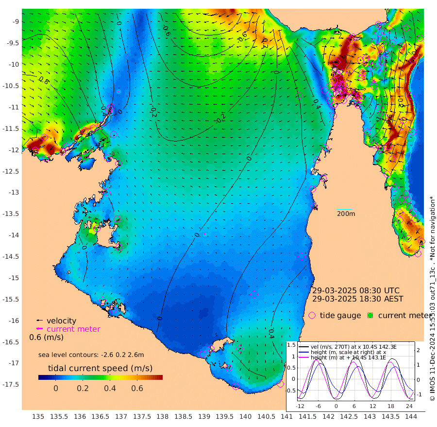 9cm/s -127T +3cm/s rms + 7cm/s -42T. ARA-GOC87 57m 13cm/s -64T +3cm/s rms + 2cm/s -2T. ARA-GOC87 60m 7cm/s -157T +2cm/s rms + 3cm/s 61T. ARA-GOC87 47m -112cm Daru -103cm Bobo Island -7cm Meer Island Barge -34cm Bramble Cay -80cm Unnamed Cay -77cm Pearce Cay -61cm Stephens Island -70cm Merrie England Shoals -111cm Mutacomal Reef -56cm Darnley Island Barge -7cm East Cay -87cm Yorke Island Barge -86cm Rennel Island -93cm Aureed Island -106cm Dungeness Reef -144cm Zagai Island -139cm Yam Island -122cm Dauan Island -134cm Saibai Island -113cm Phipi Reef -143cm Warrior Reef - West -105cm Mabuiag Island Barge -86cm Half Way Island -115cm Coconut Island -105cm Dugong Islet -125cm Poll Island -119cm Kirkcaldie Reef -139cm Suarji Island -133cm Sue Islet -7cm Hawkesbury Island -117cm Alert Patches -124cm Twin Island -27cm Badu Island -139cm St Pauls (Moa Island) -43cm Kubin (Moa Island) -97cm Ince Point -76cm Thursday Island -83cm Nardana Patches -39cm Turtle Head -26cm Round Island 12cm Goods Island 36cm Booby Island 27cm White Rocks Area 15cm Carpentaria -116cm Papou Point 18cm Bampfield Head 41cm Crab Island 27cm Red Wallis Island -13cm Packe Island -119cm Harrington Reef 5cm Herald Camp -50cm Sharp Point -34cm Red Island Point -80cm Possession Island -128cm Alpha Rock -125cm Frederick Point -122cm Wyborn Reef Light -130cm Tetley Island -24cm Triangle Reef -110cm Turtle Head Island -12cm Maclennan Cay 24cm Raine Island -72cm Mcsweeny Reef -56cm Collette Reef -13cm Shadwell Reef -57cm Hannibal Island -30cm Round Point 43cm Vrilya Point -24cm Cape Grenville -15cm Hicks Island -19cm Sir Charles Hardy Island -8cm Harvey Island -2cm Kay Reef 11cm Rocky Island 23cm Chapman Island 19cm Ham Reef 11cm Jubilee Reef 10cm Night Island 21cm Unnamed Reef No. 3 14cm Morris Island 20cm 1st 3 Mile Opening 16cm Creech Reef 15cm Fife Island 32cm Eden Reef 19cm Stanley Island 17cm Normanby River 75cm Yabooma Island 71cm Hutchison River 74cm Elcho Island 71cm North West Crocodile Island 0cm Cape Wessel 40cm Stevens Island -32cm Guluwuru Island 53cm Hopeful Bay 22cm Auster Point 21cm Two Island Bay 32cm Cadell Strait -98cm Mallison Island -18cm Melville Bay (Gove Harbour) -23cm Truant Island -22cm Cape Arnhem -20cm Cape Grey -10cm Hawk Island -5cm Milner Bay (Groote Eylandt) 3cm Cape Beatrice -6cm West Island 2cm Centre Island 27cm Mornington Island 27cm West Wellesley Islands 31cm Bountiful Island 70cm Albert River Mouth 63cm Sweers Island 70cm Karumba 39cm Nassau River Offshore 37cm Christmas Creek 49cm Archer River 30cm Boyd Point 51cm Weipa (Humbug Point) 42cm Pennefather River 37cm Cullen Point