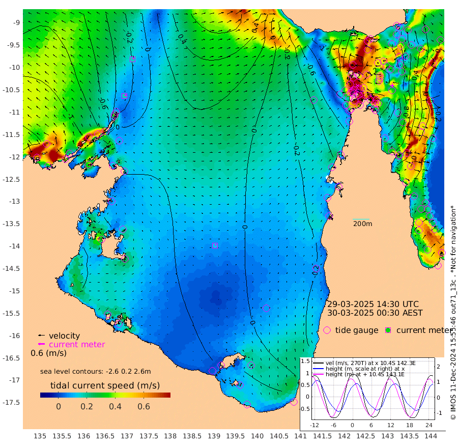 16cm/s 59T +3cm/s rms + 7cm/s -42T. ARA-GOC87 57m 12cm/s 31T +3cm/s rms + 2cm/s -2T. ARA-GOC87 60m 17cm/s 47T +2cm/s rms + 3cm/s 61T. ARA-GOC87 47m 108cm Daru 100cm Bobo Island 8cm Meer Island Barge 33cm Bramble Cay 75cm Unnamed Cay 72cm Pearce Cay 59cm Stephens Island 68cm Merrie England Shoals 100cm Mutacomal Reef 55cm Darnley Island Barge 7cm East Cay 82cm Yorke Island Barge 80cm Rennel Island 90cm Aureed Island 99cm Dungeness Reef 130cm Zagai Island 114cm Yam Island 93cm Dauan Island 99cm Saibai Island 112cm Phipi Reef 125cm Warrior Reef - West 66cm Mabuiag Island Barge 78cm Half Way Island 111cm Coconut Island 89cm Dugong Islet 110cm Poll Island 104cm Kirkcaldie Reef 125cm Suarji Island 114cm Sue Islet -58cm Hawkesbury Island 96cm Alert Patches 100cm Twin Island -19cm Badu Island 112cm St Pauls (Moa Island) -5cm Kubin (Moa Island) 65cm Ince Point 40cm Thursday Island 48cm Nardana Patches 2cm Turtle Head -6cm Round Island -60cm Goods Island -88cm Booby Island -80cm White Rocks Area -65cm Carpentaria 89cm Papou Point -53cm Bampfield Head -73cm Crab Island -82cm Red Wallis Island -32cm Packe Island 110cm Harrington Reef -52cm Herald Camp 45cm Sharp Point -2cm Red Island Point 65cm Possession Island 100cm Alpha Rock 106cm Frederick Point 111cm Wyborn Reef Light 115cm Tetley Island 19cm Triangle Reef 101cm Turtle Head Island 7cm Maclennan Cay -20cm Raine Island 69cm Mcsweeny Reef 57cm Collette Reef 15cm Shadwell Reef 60cm Hannibal Island 30cm Round Point -75cm Vrilya Point 23cm Cape Grenville 16cm Hicks Island 7cm Sir Charles Hardy Island 8cm Harvey Island 0cm Kay Reef -11cm Rocky Island -23cm Chapman Island -22cm Ham Reef -13cm Jubilee Reef -6cm Night Island -23cm Unnamed Reef No. 3 -13cm Morris Island -15cm 1st 3 Mile Opening -15cm Creech Reef -12cm Fife Island -29cm Eden Reef -17cm Stanley Island -19cm Normanby River -109cm Yabooma Island -99cm Hutchison River -98cm Elcho Island -101cm North West Crocodile Island -27cm Cape Wessel -59cm Stevens Island 18cm Guluwuru Island -66cm Hopeful Bay -39cm Auster Point -48cm Two Island Bay -58cm Cadell Strait 100cm Mallison Island 12cm Melville Bay (Gove Harbour) 14cm Truant Island 24cm Cape Arnhem 32cm Cape Grey 34cm Hawk Island 40cm Milner Bay (Groote Eylandt) 28cm Cape Beatrice 41cm West Island 47cm Centre Island 40cm Mornington Island 32cm West Wellesley Islands 28cm Bountiful Island 19cm Albert River Mouth 46cm Sweers Island 22cm Karumba -1cm Nassau River Offshore -18cm Christmas Creek -49cm Archer River -48cm Boyd Point -67cm Weipa (Humbug Point) -46cm Pennefather River -68cm Cullen Point