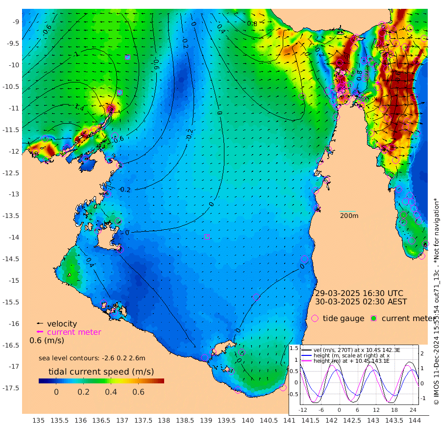15cm/s -54T +3cm/s rms + 7cm/s -42T. ARA-GOC87 57m 15cm/s 37T +3cm/s rms + 2cm/s -2T. ARA-GOC87 60m 14cm/s -68T +2cm/s rms + 3cm/s 61T. ARA-GOC87 47m -39cm Daru -49cm Bobo Island -81cm Meer Island Barge -89cm Bramble Cay -65cm Unnamed Cay -75cm Pearce Cay -79cm Stephens Island -77cm Merrie England Shoals -45cm Mutacomal Reef -69cm Darnley Island Barge -93cm East Cay -47cm Yorke Island Barge -59cm Rennel Island -43cm Aureed Island -28cm Dungeness Reef 39cm Zagai Island 26cm Yam Island 63cm Dauan Island 82cm Saibai Island 53cm Phipi Reef 32cm Warrior Reef - West 62cm Mabuiag Island Barge -58cm Half Way Island -21cm Coconut Island -44cm Dugong Islet 0cm Poll Island -10cm Kirkcaldie Reef 43cm Suarji Island 18cm Sue Islet -16cm Hawkesbury Island 29cm Alert Patches 24cm Twin Island 8cm Badu Island 43cm St Pauls (Moa Island) -1cm Kubin (Moa Island) 28cm Ince Point 25cm Thursday Island 27cm Nardana Patches 4cm Turtle Head 12cm Round Island -18cm Goods Island -10cm Booby Island -19cm White Rocks Area 35cm Carpentaria 29cm Papou Point 13cm Bampfield Head -9cm Crab Island -13cm Red Wallis Island -13cm Packe Island -37cm Harrington Reef 3cm Herald Camp 29cm Sharp Point 0cm Red Island Point 27cm Possession Island 26cm Alpha Rock 0cm Frederick Point -32cm Wyborn Reef Light -19cm Tetley Island -59cm Triangle Reef -51cm Turtle Head Island -76cm Maclennan Cay -83cm Raine Island -62cm Mcsweeny Reef -63cm Collette Reef -69cm Shadwell Reef -75cm Hannibal Island -96cm Round Point -1cm Vrilya Point -83cm Cape Grenville -87cm Hicks Island -82cm Sir Charles Hardy Island -26cm Harvey Island -90cm Kay Reef -85cm Rocky Island -86cm Chapman Island -80cm Ham Reef -84cm Jubilee Reef -77cm Night Island -85cm Unnamed Reef No. 3 -94cm Morris Island -82cm 1st 3 Mile Opening -86cm Creech Reef -98cm Fife Island -114cm Eden Reef -95cm Stanley Island -113cm Normanby River -185cm Yabooma Island -212cm Hutchison River -179cm Elcho Island -175cm North West Crocodile Island -98cm Cape Wessel -154cm Stevens Island -87cm Guluwuru Island -140cm Hopeful Bay -116cm Auster Point -126cm Two Island Bay -184cm Cadell Strait -42cm Mallison Island -81cm Melville Bay (Gove Harbour) -82cm Truant Island -43cm Cape Arnhem -16cm Cape Grey -7cm Hawk Island 30cm Milner Bay (Groote Eylandt) 19cm Cape Beatrice 63cm West Island 72cm Centre Island 23cm Mornington Island 21cm West Wellesley Islands 16cm Bountiful Island -5cm Albert River Mouth 20cm Sweers Island -4cm Karumba -11cm Nassau River Offshore -18cm Christmas Creek -22cm Archer River -9cm Boyd Point -23cm Weipa (Humbug Point) -7cm Pennefather River 4cm Cullen Point