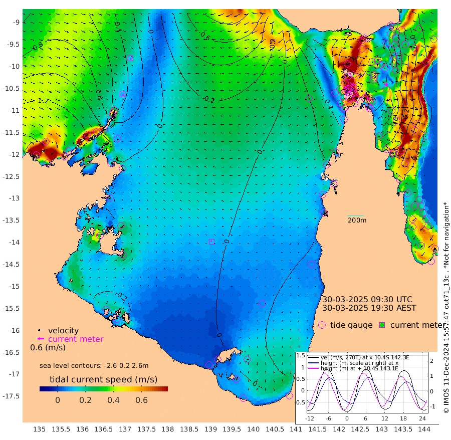 11cm/s 166T +3cm/s rms + 7cm/s -42T. ARA-GOC87 57m 12cm/s -52T +3cm/s rms + 2cm/s -2T. ARA-GOC87 60m 13cm/s 145T +2cm/s rms + 3cm/s 61T. ARA-GOC87 47m -77cm Daru -65cm Bobo Island 13cm Meer Island Barge -4cm Bramble Cay -45cm Unnamed Cay -38cm Pearce Cay -27cm Stephens Island -33cm Merrie England Shoals -73cm Mutacomal Reef -29cm Darnley Island Barge 18cm East Cay -58cm Yorke Island Barge -50cm Rennel Island -61cm Aureed Island -74cm Dungeness Reef -121cm Zagai Island -114cm Yam Island -116cm Dauan Island -130cm Saibai Island -102cm Phipi Reef -123cm Warrior Reef - West -91cm Mabuiag Island Barge -52cm Half Way Island -78cm Coconut Island -71cm Dugong Islet -94cm Poll Island -87cm Kirkcaldie Reef -112cm Suarji Island -108cm Sue Islet 16cm Hawkesbury Island -89cm Alert Patches -95cm Twin Island -4cm Badu Island -113cm St Pauls (Moa Island) -20cm Kubin (Moa Island) -73cm Ince Point -54cm Thursday Island -60cm Nardana Patches -17cm Turtle Head -6cm Round Island 32cm Goods Island 52cm Booby Island 49cm White Rocks Area 21cm Carpentaria -90cm Papou Point 37cm Bampfield Head 55cm Crab Island 45cm Red Wallis Island 9cm Packe Island -79cm Harrington Reef 18cm Herald Camp -47cm Sharp Point -12cm Red Island Point -57cm Possession Island -101cm Alpha Rock -91cm Frederick Point -82cm Wyborn Reef Light -91cm Tetley Island -4cm Triangle Reef -65cm Turtle Head Island 9cm Maclennan Cay 41cm Raine Island -40cm Mcsweeny Reef -27cm Collette Reef 7cm Shadwell Reef -25cm Hannibal Island 3cm Round Point 52cm Vrilya Point 3cm Cape Grenville 10cm Hicks Island 3cm Sir Charles Hardy Island 0cm Harvey Island 22cm Kay Reef 29cm Rocky Island 41cm Chapman Island 34cm Ham Reef 29cm Jubilee Reef 27cm Night Island 38cm Unnamed Reef No. 3 35cm Morris Island 36cm 1st 3 Mile Opening 34cm Creech Reef 36cm Fife Island 52cm Eden Reef 38cm Stanley Island 41cm Normanby River 130cm Yabooma Island 135cm Hutchison River 126cm Elcho Island 121cm North West Crocodile Island 39cm Cape Wessel 92cm Stevens Island 1cm Guluwuru Island 95cm Hopeful Bay 64cm Auster Point 60cm Two Island Bay 86cm Cadell Strait -80cm Mallison Island 13cm Melville Bay (Gove Harbour) 11cm Truant Island -3cm Cape Arnhem -11cm Cape Grey -8cm Hawk Island -12cm Milner Bay (Groote Eylandt) -8cm Cape Beatrice -30cm West Island -25cm Centre Island -2cm Mornington Island -3cm West Wellesley Islands -2cm Bountiful Island 34cm Albert River Mouth 24cm Sweers Island 35cm Karumba 18cm Nassau River Offshore 23cm Christmas Creek 46cm Archer River 29cm Boyd Point 50cm Weipa (Humbug Point) 46cm Pennefather River 40cm Cullen Point