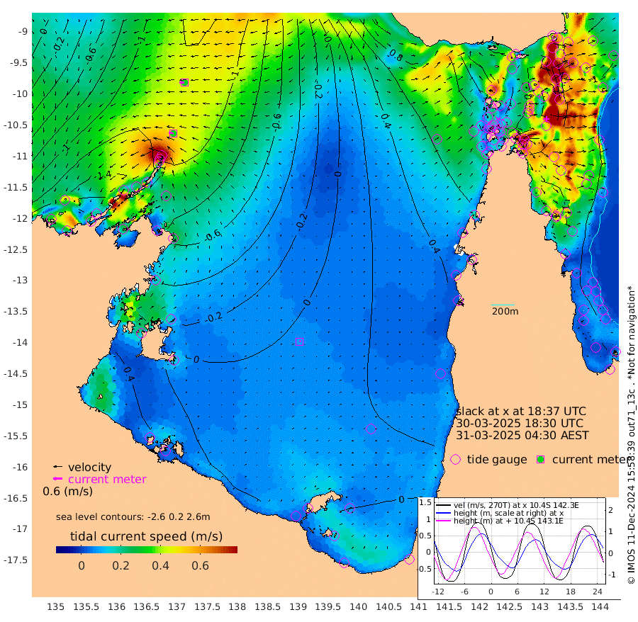 33cm/s -79T +3cm/s rms + 7cm/s -42T. ARA-GOC87 57m 8cm/s 47T +3cm/s rms + 2cm/s -2T. ARA-GOC87 60m 32cm/s -93T +2cm/s rms + 3cm/s 61T. ARA-GOC87 47m -105cm Daru -114cm Bobo Island -81cm Meer Island Barge -105cm Bramble Cay -105cm Unnamed Cay -122cm Pearce Cay -113cm Stephens Island -111cm Merrie England Shoals -102cm Mutacomal Reef -98cm Darnley Island Barge -92cm East Cay -96cm Yorke Island Barge -106cm Rennel Island -99cm Aureed Island -88cm Dungeness Reef -47cm Zagai Island -48cm Yam Island -1cm Dauan Island 15cm Saibai Island -17cm Phipi Reef -51cm Warrior Reef - West 21cm Mabuiag Island Barge -104cm Half Way Island -89cm Coconut Island -96cm Dugong Islet -69cm Poll Island -73cm Kirkcaldie Reef -29cm Suarji Island -50cm Sue Islet 25cm Hawkesbury Island -24cm Alert Patches -36cm Twin Island 23cm Badu Island -25cm St Pauls (Moa Island) 4cm Kubin (Moa Island) -8cm Ince Point 6cm Thursday Island 3cm Nardana Patches 10cm Turtle Head 27cm Round Island 28cm Goods Island 58cm Booby Island 43cm White Rocks Area 93cm Carpentaria -29cm Papou Point 70cm Bampfield Head 45cm Crab Island 48cm Red Wallis Island 14cm Packe Island -103cm Harrington Reef 52cm Herald Camp 2cm Sharp Point 4cm Red Island Point -4cm Possession Island -32cm Alpha Rock -65cm Frederick Point -98cm Wyborn Reef Light -90cm Tetley Island -67cm Triangle Reef -113cm Turtle Head Island -74cm Maclennan Cay -65cm Raine Island -100cm Mcsweeny Reef -92cm Collette Reef -70cm Shadwell Reef -105cm Hannibal Island -109cm Round Point 57cm Vrilya Point -87cm Cape Grenville -90cm Hicks Island -77cm Sir Charles Hardy Island -28cm Harvey Island -80cm Kay Reef -70cm Rocky Island -63cm Chapman Island -59cm Ham Reef -69cm Jubilee Reef -67cm Night Island -63cm Unnamed Reef No. 3 -77cm Morris Island -63cm 1st 3 Mile Opening -69cm Creech Reef -86cm Fife Island -88cm Eden Reef -74cm Stanley Island -94cm Normanby River -167cm Yabooma Island -213cm Hutchison River -171cm Elcho Island -166cm North West Crocodile Island -123cm Cape Wessel -167cm Stevens Island -141cm Guluwuru Island -139cm Hopeful Bay -131cm Auster Point -142cm Two Island Bay -215cm Cadell Strait -138cm Mallison Island -123cm Melville Bay (Gove Harbour) -128cm Truant Island -81cm Cape Arnhem -46cm Cape Grey -33cm Hawk Island 11cm Milner Bay (Groote Eylandt) 9cm Cape Beatrice 60cm West Island 68cm Centre Island 19cm Mornington Island 25cm West Wellesley Islands 27cm Bountiful Island -3cm Albert River Mouth 14cm Sweers Island -1cm Karumba 8cm Nassau River Offshore 11cm Christmas Creek 22cm Archer River 34cm Boyd Point 33cm Weipa (Humbug Point) 32cm Pennefather River 59cm Cullen Point