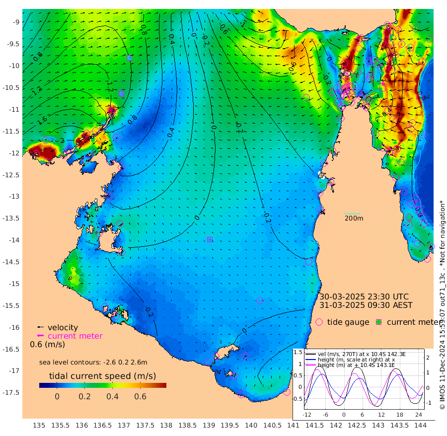 10cm/s 112T +3cm/s rms + 7cm/s -42T. ARA-GOC87 57m 9cm/s -121T +3cm/s rms + 2cm/s -2T. ARA-GOC87 60m 13cm/s 90T +2cm/s rms + 3cm/s 61T. ARA-GOC87 47m 52cm Daru 64cm Bobo Island 74cm Meer Island Barge 86cm Bramble Cay 73cm Unnamed Cay 82cm Pearce Cay 80cm Stephens Island 75cm Merrie England Shoals 58cm Mutacomal Reef 70cm Darnley Island Barge 86cm East Cay 58cm Yorke Island Barge 67cm Rennel Island 58cm Aureed Island 45cm Dungeness Reef -4cm Zagai Island 4cm Yam Island -30cm Dauan Island -40cm Saibai Island -20cm Phipi Reef 1cm Warrior Reef - West -30cm Mabuiag Island Barge 61cm Half Way Island 38cm Coconut Island 54cm Dugong Islet 23cm Poll Island 23cm Kirkcaldie Reef 1cm Suarji Island 9cm Sue Islet 10cm Hawkesbury Island -6cm Alert Patches 0cm Twin Island -7cm Badu Island -13cm St Pauls (Moa Island) 5cm Kubin (Moa Island) -11cm Ince Point -14cm Thursday Island -14cm Nardana Patches -4cm Turtle Head -2cm Round Island 5cm Goods Island -13cm Booby Island 4cm White Rocks Area -56cm Carpentaria -4cm Papou Point -10cm Bampfield Head -28cm Crab Island -13cm Red Wallis Island 1cm Packe Island 52cm Harrington Reef -4cm Herald Camp -20cm Sharp Point -3cm Red Island Point -5cm Possession Island 0cm Alpha Rock 22cm Frederick Point 52cm Wyborn Reef Light 42cm Tetley Island 58cm Triangle Reef 63cm Turtle Head Island 71cm Maclennan Cay 68cm Raine Island 68cm Mcsweeny Reef 65cm Collette Reef 62cm Shadwell Reef 76cm Hannibal Island 91cm Round Point -48cm Vrilya Point 77cm Cape Grenville 81cm Hicks Island 82cm Sir Charles Hardy Island 24cm Harvey Island 81cm Kay Reef 78cm Rocky Island 76cm Chapman Island 70cm Ham Reef 72cm Jubilee Reef 64cm Night Island 70cm Unnamed Reef No. 3 81cm Morris Island 69cm 1st 3 Mile Opening 72cm Creech Reef 82cm Fife Island 96cm Eden Reef 79cm Stanley Island 99cm Normanby River 224cm Yabooma Island 257cm Hutchison River 214cm Elcho Island 210cm North West Crocodile Island 136cm Cape Wessel 188cm Stevens Island 117cm Guluwuru Island 174cm Hopeful Bay 152cm Auster Point 157cm Two Island Bay 209cm Cadell Strait 32cm Mallison Island 115cm Melville Bay (Gove Harbour) 117cm Truant Island 66cm Cape Arnhem 45cm Cape Grey 31cm Hawk Island -5cm Milner Bay (Groote Eylandt) -5cm Cape Beatrice -46cm West Island -59cm Centre Island -24cm Mornington Island -22cm West Wellesley Islands 19cm Bountiful Island 13cm Albert River Mouth 10cm Sweers Island 10cm Karumba -7cm Nassau River Offshore -10cm Christmas Creek -12cm Archer River -18cm Boyd Point -4cm Weipa (Humbug Point) -42cm Pennefather River -36cm Cullen Point