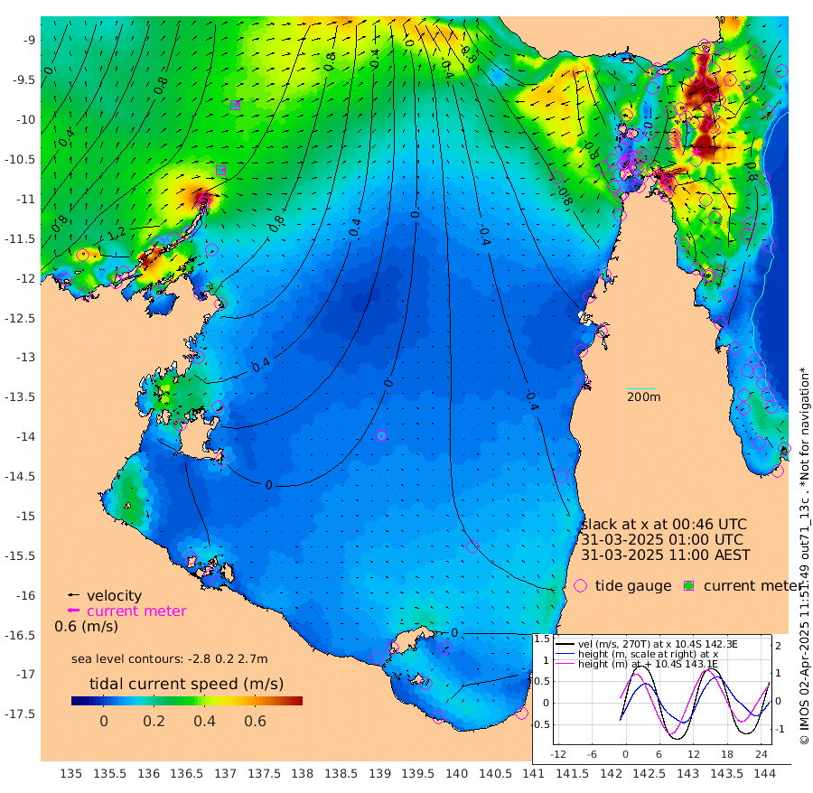 21cm/s 87T +3cm/s rms + 7cm/s -42T. ARA-GOC87 57m 10cm/s -156T +3cm/s rms + 2cm/s -2T. ARA-GOC87 60m 23cm/s 69T +2cm/s rms + 3cm/s 61T. ARA-GOC87 47m 119cm Daru 126cm Bobo Island 78cm Meer Island Barge 104cm Bramble Cay 116cm Unnamed Cay 127cm Pearce Cay 116cm Stephens Island 113cm Merrie England Shoals 117cm Mutacomal Reef 105cm Darnley Island Barge 88cm East Cay 109cm Yorke Island Barge 114cm Rennel Island 112cm Aureed Island 104cm Dungeness Reef 77cm Zagai Island 78cm Yam Island 36cm Dauan Island 29cm Saibai Island 43cm Phipi Reef 83cm Warrior Reef - West 8cm Mabuiag Island Barge 111cm Half Way Island 102cm Coconut Island 112cm Dugong Islet 90cm Poll Island 88cm Kirkcaldie Reef 63cm Suarji Island 79cm Sue Islet -28cm Hawkesbury Island 44cm Alert Patches 56cm Twin Island -27cm Badu Island 53cm St Pauls (Moa Island) -1cm Kubin (Moa Island) 24cm Ince Point 4cm Thursday Island 10cm Nardana Patches -10cm Turtle Head -24cm Round Island -41cm Goods Island -79cm Booby Island -59cm White Rocks Area -105cm Carpentaria 49cm Papou Point -76cm Bampfield Head -79cm Crab Island -69cm Red Wallis Island -24cm Packe Island 117cm Harrington Reef -51cm Herald Camp 9cm Sharp Point -9cm Red Island Point 18cm Possession Island 59cm Alpha Rock 84cm Frederick Point 116cm Wyborn Reef Light 110cm Tetley Island 69cm Triangle Reef 121cm Turtle Head Island 74cm Maclennan Cay 52cm Raine Island 107cm Mcsweeny Reef 96cm Collette Reef 67cm Shadwell Reef 108cm Hannibal Island 106cm Round Point -96cm Vrilya Point 86cm Cape Grenville 88cm Hicks Island 86cm Sir Charles Hardy Island 28cm Harvey Island 76cm Kay Reef 66cm Rocky Island 56cm Chapman Island 54cm Ham Reef 62cm Jubilee Reef 58cm Night Island 53cm Unnamed Reef No. 3 69cm Morris Island 54cm 1st 3 Mile Opening 60cm Creech Reef 73cm Fife Island 76cm Eden Reef 64cm Stanley Island 86cm Normanby River 157cm Yabooma Island 199cm Hutchison River 156cm Elcho Island 153cm North West Crocodile Island 127cm Cape Wessel 154cm Stevens Island 147cm Guluwuru Island 130cm Hopeful Bay 128cm Auster Point 140cm Two Island Bay 198cm Cadell Strait 138cm Mallison Island 130cm Melville Bay (Gove Harbour) 134cm Truant Island 86cm Cape Arnhem 59cm Cape Grey 43cm Hawk Island 1cm Milner Bay (Groote Eylandt) 1cm Cape Beatrice -40cm West Island -54cm Centre Island -15cm Mornington Island -17cm West Wellesley Islands 7cm Bountiful Island 5cm Albert River Mouth 0cm Sweers Island 1cm Karumba -13cm Nassau River Offshore -23cm Christmas Creek -45cm Archer River -48cm Boyd Point -50cm Weipa (Humbug Point) -72cm Pennefather River -81cm Cullen Point