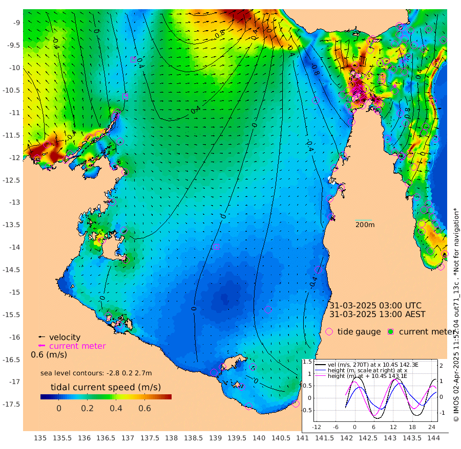 17cm/s 57T +3cm/s rms + 7cm/s -42T. ARA-GOC87 57m 10cm/s 160T +3cm/s rms + 2cm/s -2T. ARA-GOC87 60m 17cm/s 34T +2cm/s rms + 3cm/s 61T. ARA-GOC87 47m 96cm Daru 92cm Bobo Island 14cm Meer Island Barge 37cm Bramble Cay 68cm Unnamed Cay 72cm Pearce Cay 59cm Stephens Island 61cm Merrie England Shoals 90cm Mutacomal Reef 56cm Darnley Island Barge 13cm East Cay 78cm Yorke Island Barge 74cm Rennel Island 80cm Aureed Island 84cm Dungeness Reef 108cm Zagai Island 103cm Yam Island 85cm Dauan Island 90cm Saibai Island 74cm Phipi Reef 113cm Warrior Reef - West 47cm Mabuiag Island Barge 77cm Half Way Island 86cm Coconut Island 88cm Dugong Islet 93cm Poll Island 90cm Kirkcaldie Reef 80cm Suarji Island 98cm Sue Islet -52cm Hawkesbury Island 60cm Alert Patches 74cm Twin Island -36cm Badu Island 84cm St Pauls (Moa Island) -11cm Kubin (Moa Island) 41cm Ince Point 17cm Thursday Island 24cm Nardana Patches -18cm Turtle Head -40cm Round Island -71cm Goods Island -103cm Booby Island -95cm White Rocks Area -86cm Carpentaria 70cm Papou Point -110cm Bampfield Head -89cm Crab Island -87cm Red Wallis Island -42cm Packe Island 93cm Harrington Reef -72cm Herald Camp 36cm Sharp Point -14cm Red Island Point 21cm Possession Island 81cm Alpha Rock 85cm Frederick Point 93cm Wyborn Reef Light 97cm Tetley Island 21cm Triangle Reef 86cm Turtle Head Island 13cm Maclennan Cay -17cm Raine Island 62cm Mcsweeny Reef 49cm Collette Reef 13cm Shadwell Reef 52cm Hannibal Island 31cm Round Point -88cm Vrilya Point 22cm Cape Grenville 18cm Hicks Island 17cm Sir Charles Hardy Island 9cm Harvey Island 3cm Kay Reef -6cm Rocky Island -20cm Chapman Island -14cm Ham Reef -5cm Jubilee Reef -3cm Night Island -16cm Unnamed Reef No. 3 -8cm Morris Island -17cm 1st 3 Mile Opening -10cm Creech Reef -2cm Fife Island -16cm Eden Reef -11cm Stanley Island -4cm Normanby River -39cm Yabooma Island -21cm Hutchison River -29cm Elcho Island -25cm North West Crocodile Island 24cm Cape Wessel -2cm Stevens Island 69cm Guluwuru Island -20cm Hopeful Bay 3cm Auster Point 19cm Two Island Bay 36cm Cadell Strait 153cm Mallison Island 46cm Melville Bay (Gove Harbour) 50cm Truant Island 40cm Cape Arnhem 29cm Cape Grey 23cm Hawk Island 6cm Milner Bay (Groote Eylandt) 8cm Cape Beatrice 2cm West Island -8cm Centre Island 1cm Mornington Island -1cm West Wellesley Islands -13cm Bountiful Island -11cm Albert River Mouth -19cm Sweers Island -16cm Karumba -16cm Nassau River Offshore -29cm Christmas Creek -60cm Archer River -53cm Boyd Point -74cm Weipa (Humbug Point) -64cm Pennefather River -79cm Cullen Point