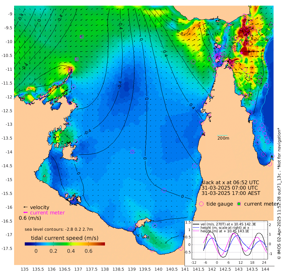 23cm/s -83T +3cm/s rms + 7cm/s -42T. ARA-GOC87 57m 7cm/s 27T +3cm/s rms + 2cm/s -2T. ARA-GOC87 60m 24cm/s -101T +2cm/s rms + 3cm/s 61T. ARA-GOC87 47m -135cm Daru -142cm Bobo Island -99cm Meer Island Barge -122cm Bramble Cay -135cm Unnamed Cay -143cm Pearce Cay -135cm Stephens Island -131cm Merrie England Shoals -130cm Mutacomal Reef -125cm Darnley Island Barge -108cm East Cay -127cm Yorke Island Barge -130cm Rennel Island -133cm Aureed Island -124cm Dungeness Reef -94cm Zagai Island -86cm Yam Island -50cm Dauan Island -38cm Saibai Island -76cm Phipi Reef -97cm Warrior Reef - West -19cm Mabuiag Island Barge -123cm Half Way Island -124cm Coconut Island -123cm Dugong Islet -104cm Poll Island -101cm Kirkcaldie Reef -95cm Suarji Island -91cm Sue Islet 23cm Hawkesbury Island -68cm Alert Patches -73cm Twin Island 7cm Badu Island -69cm St Pauls (Moa Island) -13cm Kubin (Moa Island) -41cm Ince Point -22cm Thursday Island -28cm Nardana Patches -14cm Turtle Head -6cm Round Island 17cm Goods Island 53cm Booby Island 37cm White Rocks Area 83cm Carpentaria -59cm Papou Point 23cm Bampfield Head 61cm Crab Island 53cm Red Wallis Island 4cm Packe Island -133cm Harrington Reef 22cm Herald Camp -10cm Sharp Point -2cm Red Island Point -48cm Possession Island -68cm Alpha Rock -99cm Frederick Point -132cm Wyborn Reef Light -123cm Tetley Island -88cm Triangle Reef -138cm Turtle Head Island -94cm Maclennan Cay -75cm Raine Island -126cm Mcsweeny Reef -117cm Collette Reef -90cm Shadwell Reef -131cm Hannibal Island -125cm Round Point 82cm Vrilya Point -107cm Cape Grenville -109cm Hicks Island -107cm Sir Charles Hardy Island -34cm Harvey Island -97cm Kay Reef -90cm Rocky Island -81cm Chapman Island -73cm Ham Reef -82cm Jubilee Reef -79cm Night Island -74cm Unnamed Reef No. 3 -93cm Morris Island -83cm 1st 3 Mile Opening -84cm Creech Reef -93cm Fife Island -101cm Eden Reef -88cm Stanley Island -103cm Normanby River -122cm Yabooma Island -165cm Hutchison River -122cm Elcho Island -111cm North West Crocodile Island -101cm Cape Wessel -123cm Stevens Island -131cm Guluwuru Island -109cm Hopeful Bay -109cm Auster Point -106cm Two Island Bay -154cm Cadell Strait -125cm Mallison Island -121cm Melville Bay (Gove Harbour) -125cm Truant Island -86cm Cape Arnhem -63cm Cape Grey -50cm Hawk Island -12cm Milner Bay (Groote Eylandt) -4cm Cape Beatrice 33cm West Island 38cm Centre Island -7cm Mornington Island -2cm West Wellesley Islands -39cm Bountiful Island -21cm Albert River Mouth -33cm Sweers Island -20cm Karumba -8cm Nassau River Offshore -2cm Christmas Creek 21cm Archer River 28cm Boyd Point 24cm Weipa (Humbug Point) 54cm Pennefather River 64cm Cullen Point
