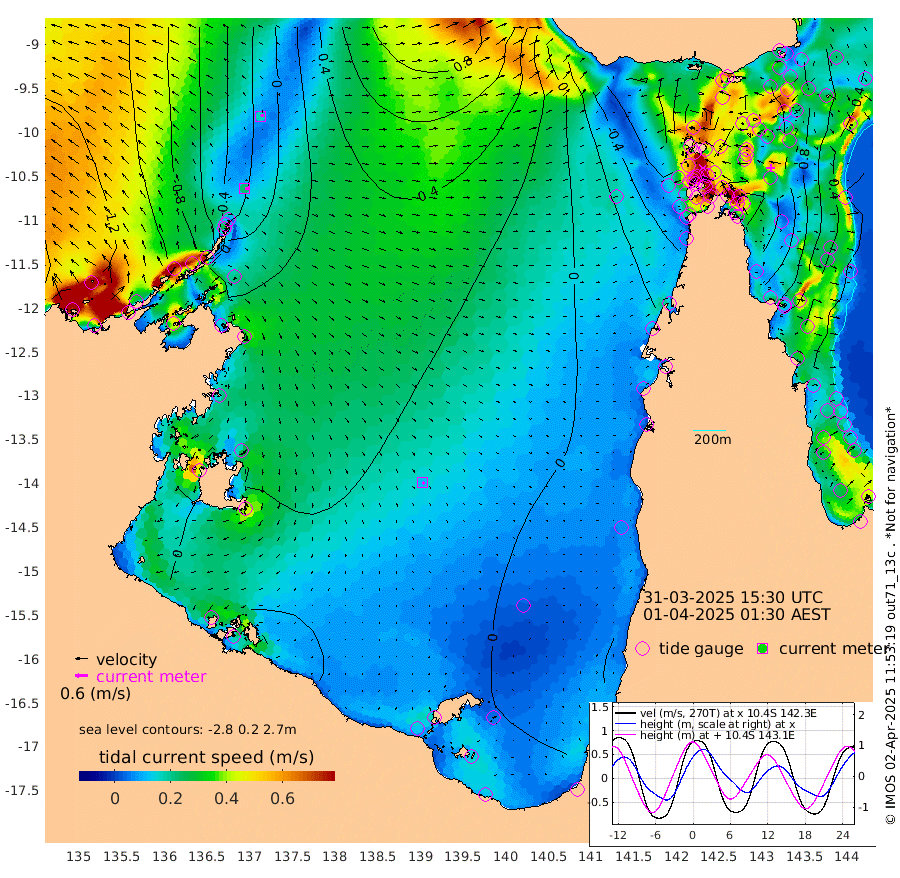 22cm/s 88T +3cm/s rms + 7cm/s -42T. ARA-GOC87 57m 11cm/s 135T +3cm/s rms + 2cm/s -2T. ARA-GOC87 60m 17cm/s 68T +2cm/s rms + 3cm/s 61T. ARA-GOC87 47m 115cm Daru 110cm Bobo Island 43cm Meer Island Barge 58cm Bramble Cay 90cm Unnamed Cay 91cm Pearce Cay 82cm Stephens Island 82cm Merrie England Shoals 103cm Mutacomal Reef 83cm Darnley Island Barge 38cm East Cay 100cm Yorke Island Barge 91cm Rennel Island 105cm Aureed Island 108cm Dungeness Reef 128cm Zagai Island 110cm Yam Island 99cm Dauan Island 99cm Saibai Island 112cm Phipi Reef 127cm Warrior Reef - West 59cm Mabuiag Island Barge 93cm Half Way Island 114cm Coconut Island 101cm Dugong Islet 109cm Poll Island 107cm Kirkcaldie Reef 114cm Suarji Island 113cm Sue Islet -43cm Hawkesbury Island 91cm Alert Patches 95cm Twin Island -7cm Badu Island 104cm St Pauls (Moa Island) 8cm Kubin (Moa Island) 64cm Ince Point 43cm Thursday Island 49cm Nardana Patches 15cm Turtle Head -2cm Round Island -36cm Goods Island -61cm Booby Island -61cm White Rocks Area -40cm Carpentaria 82cm Papou Point -38cm Bampfield Head -50cm Crab Island -57cm Red Wallis Island -12cm Packe Island 113cm Harrington Reef -34cm Herald Camp 39cm Sharp Point 3cm Red Island Point 59cm Possession Island 91cm Alpha Rock 104cm Frederick Point 110cm Wyborn Reef Light 112cm Tetley Island 45cm Triangle Reef 108cm Turtle Head Island 38cm Maclennan Cay 15cm Raine Island 86cm Mcsweeny Reef 76cm Collette Reef 44cm Shadwell Reef 81cm Hannibal Island 54cm Round Point -48cm Vrilya Point 48cm Cape Grenville 45cm Hicks Island 43cm Sir Charles Hardy Island 17cm Harvey Island 30cm Kay Reef 22cm Rocky Island 12cm Chapman Island 12cm Ham Reef 22cm Jubilee Reef 26cm Night Island 12cm Unnamed Reef No. 3 22cm Morris Island 23cm 1st 3 Mile Opening 23cm Creech Reef 23cm Fife Island 17cm Eden Reef 20cm Stanley Island 17cm Normanby River -123cm Yabooma Island -109cm Hutchison River -111cm Elcho Island -118cm North West Crocodile Island -29cm Cape Wessel -73cm Stevens Island 39cm Guluwuru Island -79cm Hopeful Bay -46cm Auster Point -49cm Two Island Bay -47cm Cadell Strait 160cm Mallison Island 20cm Melville Bay (Gove Harbour) 25cm Truant Island 32cm Cape Arnhem 24cm Cape Grey 20cm Hawk Island 10cm Milner Bay (Groote Eylandt) 1cm Cape Beatrice 3cm West Island 8cm Centre Island 18cm Mornington Island 12cm West Wellesley Islands -2cm Bountiful Island -20cm Albert River Mouth -10cm Sweers Island -19cm Karumba 4cm Nassau River Offshore 6cm Christmas Creek -20cm Archer River -17cm Boyd Point -33cm Weipa (Humbug Point) -21cm Pennefather River -42cm Cullen Point