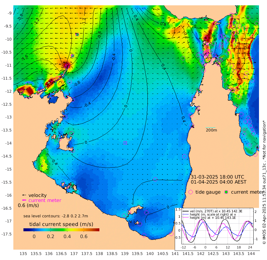 26cm/s -73T +3cm/s rms + 7cm/s -42T. ARA-GOC87 57m 10cm/s 118T +3cm/s rms + 2cm/s -2T. ARA-GOC87 60m 30cm/s -86T +2cm/s rms + 3cm/s 61T. ARA-GOC87 47m -21cm Daru -35cm Bobo Island -42cm Meer Island Barge -52cm Bramble Cay -33cm Unnamed Cay -51cm Pearce Cay -45cm Stephens Island -39cm Merrie England Shoals -21cm Mutacomal Reef -34cm Darnley Island Barge -53cm East Cay -22cm Yorke Island Barge -33cm Rennel Island -24cm Aureed Island -11cm Dungeness Reef 27cm Zagai Island 22cm Yam Island 50cm Dauan Island 63cm Saibai Island 43cm Phipi Reef 25cm Warrior Reef - West 51cm Mabuiag Island Barge -29cm Half Way Island -11cm Coconut Island -17cm Dugong Islet 5cm Poll Island 4cm Kirkcaldie Reef 38cm Suarji Island 23cm Sue Islet 8cm Hawkesbury Island 35cm Alert Patches 26cm Twin Island 19cm Badu Island 39cm St Pauls (Moa Island) 14cm Kubin (Moa Island) 34cm Ince Point 36cm Thursday Island 36cm Nardana Patches 25cm Turtle Head 26cm Round Island 13cm Goods Island 27cm Booby Island 14cm White Rocks Area 68cm Carpentaria 22cm Papou Point 42cm Bampfield Head 22cm Crab Island 23cm Red Wallis Island 16cm Packe Island -18cm Harrington Reef 35cm Herald Camp 25cm Sharp Point 12cm Red Island Point 31cm Possession Island 29cm Alpha Rock 7cm Frederick Point -18cm Wyborn Reef Light -10cm Tetley Island -30cm Triangle Reef -31cm Turtle Head Island -38cm Maclennan Cay -44cm Raine Island -32cm Mcsweeny Reef -30cm Collette Reef -31cm Shadwell Reef -38cm Hannibal Island -57cm Round Point 37cm Vrilya Point -40cm Cape Grenville -48cm Hicks Island -38cm Sir Charles Hardy Island -13cm Harvey Island -44cm Kay Reef -44cm Rocky Island -45cm Chapman Island -40cm Ham Reef -42cm Jubilee Reef -38cm Night Island -42cm Unnamed Reef No. 3 -49cm Morris Island -37cm 1st 3 Mile Opening -41cm Creech Reef -55cm Fife Island -61cm Eden Reef -45cm Stanley Island -64cm Normanby River -245cm Yabooma Island -286cm Hutchison River -245cm Elcho Island -240cm North West Crocodile Island -151cm Cape Wessel -218cm Stevens Island -131cm Guluwuru Island -194cm Hopeful Bay -169cm Auster Point -179cm Two Island Bay -250cm Cadell Strait -52cm Mallison Island -124cm Melville Bay (Gove Harbour) -128cm Truant Island -73cm Cape Arnhem -42cm Cape Grey -29cm Hawk Island 8cm Milner Bay (Groote Eylandt) 8cm Cape Beatrice 62cm West Island 70cm Centre Island 35cm Mornington Island 40cm West Wellesley Islands 26cm Bountiful Island -10cm Albert River Mouth 4cm Sweers Island -6cm Karumba 23cm Nassau River Offshore 28cm Christmas Creek 20cm Archer River 30cm Boyd Point 21cm Weipa (Humbug Point) 29cm Pennefather River 40cm Cullen Point