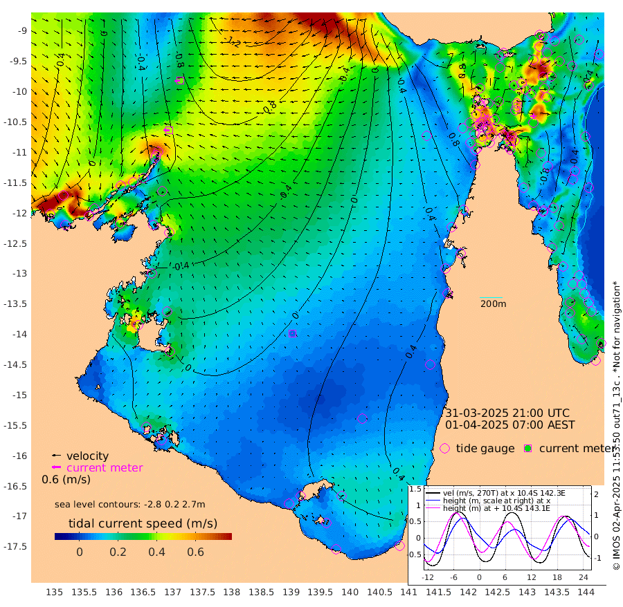 40cm/s -89T +3cm/s rms + 7cm/s -42T. ARA-GOC87 57m 4cm/s -79T +3cm/s rms + 2cm/s -2T. ARA-GOC87 60m 37cm/s -102T +2cm/s rms + 3cm/s 61T. ARA-GOC87 47m -90cm Daru -94cm Bobo Island -34cm Meer Island Barge -50cm Bramble Cay -68cm Unnamed Cay -80cm Pearce Cay -68cm Stephens Island -65cm Merrie England Shoals -78cm Mutacomal Reef -65cm Darnley Island Barge -33cm East Cay -77cm Yorke Island Barge -72cm Rennel Island -80cm Aureed Island -75cm Dungeness Reef -84cm Zagai Island -71cm Yam Island -46cm Dauan Island -46cm Saibai Island -48cm Phipi Reef -82cm Warrior Reef - West -11cm Mabuiag Island Barge -76cm Half Way Island -83cm Coconut Island -76cm Dugong Islet -74cm Poll Island -74cm Kirkcaldie Reef -50cm Suarji Island -72cm Sue Islet 68cm Hawkesbury Island -36cm Alert Patches -50cm Twin Island 45cm Badu Island -53cm St Pauls (Moa Island) 27cm Kubin (Moa Island) -17cm Ince Point 4cm Thursday Island -2cm Nardana Patches 31cm Turtle Head 51cm Round Island 74cm Goods Island 101cm Booby Island 97cm White Rocks Area 86cm Carpentaria -48cm Papou Point 104cm Bampfield Head 73cm Crab Island 89cm Red Wallis Island 50cm Packe Island -85cm Harrington Reef 86cm Herald Camp -21cm Sharp Point 23cm Red Island Point -7cm Possession Island -50cm Alpha Rock -67cm Frederick Point -83cm Wyborn Reef Light -82cm Tetley Island -31cm Triangle Reef -88cm Turtle Head Island -26cm Maclennan Cay -9cm Raine Island -65cm Mcsweeny Reef -56cm Collette Reef -28cm Shadwell Reef -62cm Hannibal Island -47cm Round Point 70cm Vrilya Point -34cm Cape Grenville -35cm Hicks Island -25cm Sir Charles Hardy Island -13cm Harvey Island -19cm Kay Reef -12cm Rocky Island -2cm Chapman Island -5cm Ham Reef -15cm Jubilee Reef -17cm Night Island -6cm Unnamed Reef No. 3 -14cm Morris Island -8cm 1st 3 Mile Opening -13cm Creech Reef -22cm Fife Island -14cm Eden Reef -11cm Stanley Island -18cm Normanby River -2cm Yabooma Island -34cm Hutchison River -17cm Elcho Island -12cm North West Crocodile Island -57cm Cape Wessel -44cm Stevens Island -109cm Guluwuru Island -21cm Hopeful Bay -43cm Auster Point -55cm Two Island Bay -96cm Cadell Strait -208cm Mallison Island -80cm Melville Bay (Gove Harbour) -88cm Truant Island -66cm Cape Arnhem -39cm Cape Grey -27cm Hawk Island -1cm Milner Bay (Groote Eylandt) 5cm Cape Beatrice 32cm West Island 32cm Centre Island 19cm Mornington Island 27cm West Wellesley Islands 56cm Bountiful Island 35cm Albert River Mouth 43cm Sweers Island 39cm Karumba 32cm Nassau River Offshore 35cm Christmas Creek 51cm Archer River 50cm Boyd Point 69cm Weipa (Humbug Point) 41cm Pennefather River 74cm Cullen Point