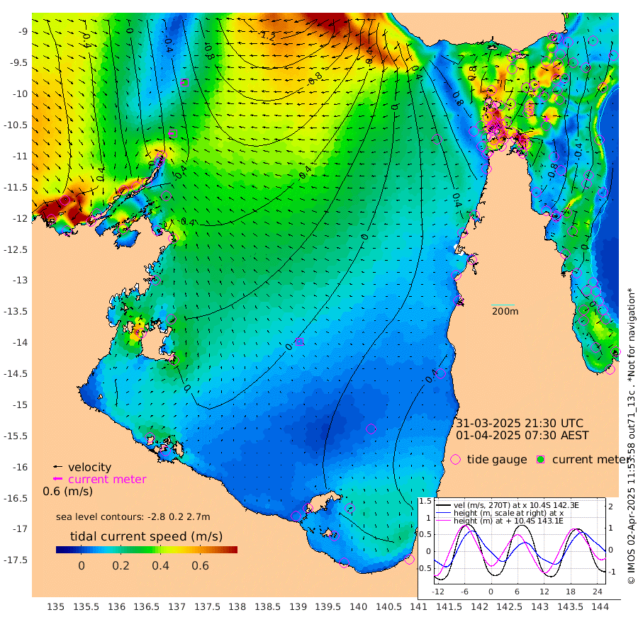 36cm/s -91T +3cm/s rms + 7cm/s -42T. ARA-GOC87 57m 7cm/s -82T +3cm/s rms + 2cm/s -2T. ARA-GOC87 60m 32cm/s -104T +2cm/s rms + 3cm/s 61T. ARA-GOC87 47m -78cm Daru -79cm Bobo Island -20cm Meer Island Barge -33cm Bramble Cay -54cm Unnamed Cay -62cm Pearce Cay -52cm Stephens Island -51cm Merrie England Shoals -66cm Mutacomal Reef -52cm Darnley Island Barge -16cm East Cay -66cm Yorke Island Barge -58cm Rennel Island -68cm Aureed Island -65cm Dungeness Reef -84cm Zagai Island -70cm Yam Island -51cm Dauan Island -54cm Saibai Island -50cm Phipi Reef -80cm Warrior Reef - West -18cm Mabuiag Island Barge -64cm Half Way Island -74cm Coconut Island -65cm Dugong Islet -69cm Poll Island -69cm Kirkcaldie Reef -50cm Suarji Island -71cm Sue Islet 67cm Hawkesbury Island -38cm Alert Patches -50cm Twin Island 42cm Badu Island -56cm St Pauls (Moa Island) 26cm Kubin (Moa Island) -20cm Ince Point -1cm Thursday Island -6cm Nardana Patches 28cm Turtle Head 48cm Round Island 72cm Goods Island 93cm Booby Island 93cm White Rocks Area 68cm Carpentaria -49cm Papou Point 97cm Bampfield Head 65cm Crab Island 82cm Red Wallis Island 48cm Packe Island -74cm Harrington Reef 80cm Herald Camp -25cm Sharp Point 21cm Red Island Point -9cm Possession Island -51cm Alpha Rock -62cm Frederick Point -72cm Wyborn Reef Light -73cm Tetley Island -20cm Triangle Reef -74cm Turtle Head Island -13cm Maclennan Cay 4cm Raine Island -52cm Mcsweeny Reef -44cm Collette Reef -17cm Shadwell Reef -47cm Hannibal Island -29cm Round Point 57cm Vrilya Point -20cm Cape Grenville -20cm Hicks Island -11cm Sir Charles Hardy Island -9cm Harvey Island -5cm Kay Reef 2cm Rocky Island 11cm Chapman Island 7cm Ham Reef -2cm Jubilee Reef -5cm Night Island 7cm Unnamed Reef No. 3 1cm Morris Island 4cm 1st 3 Mile Opening 0cm Creech Reef -6cm Fife Island 4cm Eden Reef 2cm Stanley Island 0cm Normanby River 54cm Yabooma Island 33cm Hutchison River 39cm Elcho Island 42cm North West Crocodile Island -22cm Cape Wessel 5cm Stevens Island -77cm Guluwuru Island 23cm Hopeful Bay -4cm Auster Point -14cm Two Island Bay -39cm Cadell Strait -196cm Mallison Island -50cm Melville Bay (Gove Harbour) -57cm Truant Island -48cm Cape Arnhem -27cm Cape Grey -18cm Hawk Island -1cm Milner Bay (Groote Eylandt) 5cm Cape Beatrice 20cm West Island 18cm Centre Island 15cm Mornington Island 22cm West Wellesley Islands 59cm Bountiful Island 43cm Albert River Mouth 49cm Sweers Island 46cm Karumba 31cm Nassau River Offshore 32cm Christmas Creek 47cm Archer River 44cm Boyd Point 66cm Weipa (Humbug Point) 31cm Pennefather River 63cm Cullen Point