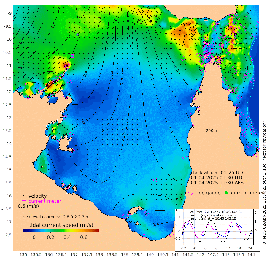 18cm/s 76T +3cm/s rms + 7cm/s -42T. ARA-GOC87 57m 9cm/s -117T +3cm/s rms + 2cm/s -2T. ARA-GOC87 60m 23cm/s 60T +2cm/s rms + 3cm/s 61T. ARA-GOC87 47m 83cm Daru 92cm Bobo Island 54cm Meer Island Barge 73cm Bramble Cay 79cm Unnamed Cay 92cm Pearce Cay 81cm Stephens Island 74cm Merrie England Shoals 78cm Mutacomal Reef 73cm Darnley Island Barge 61cm East Cay 77cm Yorke Island Barge 78cm Rennel Island 81cm Aureed Island 72cm Dungeness Reef 57cm Zagai Island 53cm Yam Island 30cm Dauan Island 23cm Saibai Island 36cm Phipi Reef 64cm Warrior Reef - West -6cm Mabuiag Island Barge 73cm Half Way Island 68cm Coconut Island 74cm Dugong Islet 60cm Poll Island 53cm Kirkcaldie Reef 41cm Suarji Island 50cm Sue Islet -54cm Hawkesbury Island 15cm Alert Patches 27cm Twin Island -47cm Badu Island 26cm St Pauls (Moa Island) -24cm Kubin (Moa Island) -1cm Ince Point -21cm Thursday Island -14cm Nardana Patches -33cm Turtle Head -43cm Round Island -63cm Goods Island -100cm Booby Island -83cm White Rocks Area -125cm Carpentaria 24cm Papou Point -96cm Bampfield Head -98cm Crab Island -92cm Red Wallis Island -48cm Packe Island 76cm Harrington Reef -70cm Herald Camp 3cm Sharp Point -31cm Red Island Point -4cm Possession Island 31cm Alpha Rock 50cm Frederick Point 78cm Wyborn Reef Light 73cm Tetley Island 48cm Triangle Reef 78cm Turtle Head Island 50cm Maclennan Cay 33cm Raine Island 73cm Mcsweeny Reef 65cm Collette Reef 44cm Shadwell Reef 74cm Hannibal Island 73cm Round Point -117cm Vrilya Point 56cm Cape Grenville 61cm Hicks Island 59cm Sir Charles Hardy Island 19cm Harvey Island 48cm Kay Reef 46cm Rocky Island 37cm Chapman Island 35cm Ham Reef 41cm Jubilee Reef 38cm Night Island 33cm Unnamed Reef No. 3 47cm Morris Island 33cm 1st 3 Mile Opening 38cm Creech Reef 51cm Fife Island 53cm Eden Reef 40cm Stanley Island 59cm Normanby River 160cm Yabooma Island 204cm Hutchison River 164cm Elcho Island 160cm North West Crocodile Island 126cm Cape Wessel 155cm Stevens Island 143cm Guluwuru Island 136cm Hopeful Bay 128cm Auster Point 140cm Two Island Bay 197cm Cadell Strait 121cm Mallison Island 130cm Melville Bay (Gove Harbour) 132cm Truant Island 87cm Cape Arnhem 64cm Cape Grey 54cm Hawk Island 16cm Milner Bay (Groote Eylandt) 15cm Cape Beatrice -23cm West Island -35cm Centre Island 11cm Mornington Island 6cm West Wellesley Islands 42cm Bountiful Island 54cm Albert River Mouth 54cm Sweers Island 47cm Karumba 1cm Nassau River Offshore -20cm Christmas Creek -51cm Archer River -58cm Boyd Point -57cm Weipa (Humbug Point) -87cm Pennefather River -95cm Cullen Point