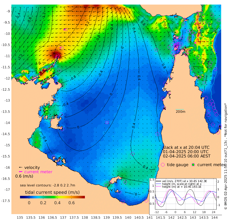 45cm/s -84T +3cm/s rms + 7cm/s -42T. ARA-GOC87 57m 10cm/s 159T +3cm/s rms + 2cm/s -2T. ARA-GOC87 60m 49cm/s -96T +2cm/s rms + 3cm/s 61T. ARA-GOC87 47m -39cm Daru -55cm Bobo Island -31cm Meer Island Barge -41cm Bramble Cay -34cm Unnamed Cay -55cm Pearce Cay -43cm Stephens Island -33cm Merrie England Shoals -29cm Mutacomal Reef -39cm Darnley Island Barge -35cm East Cay -37cm Yorke Island Barge -36cm Rennel Island -41cm Aureed Island -26cm Dungeness Reef -19cm Zagai Island -9cm Yam Island 12cm Dauan Island 16cm Saibai Island 10cm Phipi Reef -17cm Warrior Reef - West 35cm Mabuiag Island Barge -35cm Half Way Island -32cm Coconut Island -26cm Dugong Islet -18cm Poll Island -13cm Kirkcaldie Reef 12cm Suarji Island -8cm Sue Islet 65cm Hawkesbury Island 25cm Alert Patches 10cm Twin Island 54cm Badu Island 14cm St Pauls (Moa Island) 43cm Kubin (Moa Island) 32cm Ince Point 46cm Thursday Island 42cm Nardana Patches 55cm Turtle Head 60cm Round Island 72cm Goods Island 96cm Booby Island 86cm White Rocks Area 108cm Carpentaria 3cm Papou Point 99cm Bampfield Head 76cm Crab Island 88cm Red Wallis Island 62cm Packe Island -31cm Harrington Reef 89cm Herald Camp 9cm Sharp Point 40cm Red Island Point 31cm Possession Island 10cm Alpha Rock -10cm Frederick Point -34cm Wyborn Reef Light -30cm Tetley Island -24cm Triangle Reef -43cm Turtle Head Island -22cm Maclennan Cay -20cm Raine Island -34cm Mcsweeny Reef -29cm Collette Reef -20cm Shadwell Reef -36cm Hannibal Island -41cm Round Point 85cm Vrilya Point -23cm Cape Grenville -33cm Hicks Island -21cm Sir Charles Hardy Island -9cm Harvey Island -20cm Kay Reef -21cm Rocky Island -18cm Chapman Island -16cm Ham Reef -21cm Jubilee Reef -19cm Night Island -16cm Unnamed Reef No. 3 -24cm Morris Island -14cm 1st 3 Mile Opening -18cm Creech Reef -31cm Fife Island -32cm Eden Reef -17cm Stanley Island -33cm Normanby River -188cm Yabooma Island -238cm Hutchison River -198cm Elcho Island -190cm North West Crocodile Island -158cm Cape Wessel -195cm Stevens Island -172cm Guluwuru Island -166cm Hopeful Bay -161cm Auster Point -174cm Two Island Bay -247cm Cadell Strait -175cm Mallison Island -150cm Melville Bay (Gove Harbour) -159cm Truant Island -103cm Cape Arnhem -64cm Cape Grey -46cm Hawk Island -6cm Milner Bay (Groote Eylandt) 5cm Cape Beatrice 61cm West Island 64cm Centre Island 40cm Mornington Island 50cm West Wellesley Islands 49cm Bountiful Island 11cm Albert River Mouth 17cm Sweers Island 20cm Karumba 49cm Nassau River Offshore 57cm Christmas Creek 60cm Archer River 64cm Boyd Point 69cm Weipa (Humbug Point) 61cm Pennefather River 84cm Cullen Point