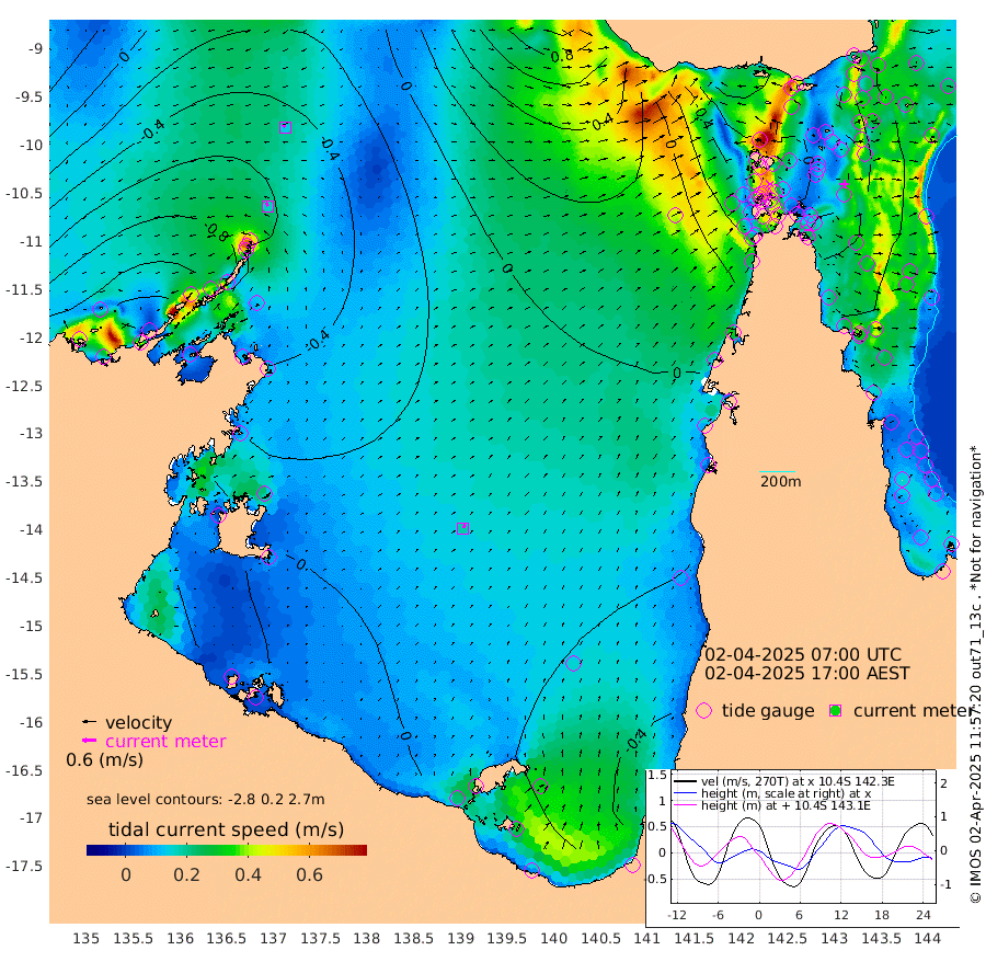 18cm/s -34T +3cm/s rms + 7cm/s -42T. ARA-GOC87 57m 18cm/s 23T +3cm/s rms + 2cm/s -2T. ARA-GOC87 60m 14cm/s -42T +2cm/s rms + 3cm/s 61T. ARA-GOC87 47m -69cm Daru -73cm Bobo Island -63cm Meer Island Barge -72cm Bramble Cay -69cm Unnamed Cay -84cm Pearce Cay -73cm Stephens Island -65cm Merrie England Shoals -63cm Mutacomal Reef -65cm Darnley Island Barge -71cm East Cay -62cm Yorke Island Barge -70cm Rennel Island -72cm Aureed Island -74cm Dungeness Reef -56cm Zagai Island -53cm Yam Island -69cm Dauan Island -46cm Saibai Island -88cm Phipi Reef -69cm Warrior Reef - West -43cm Mabuiag Island Barge -61cm Half Way Island -70cm Coconut Island -60cm Dugong Islet -61cm Poll Island -55cm Kirkcaldie Reef -70cm Suarji Island -43cm Sue Islet -67cm Hawkesbury Island -59cm Alert Patches -56cm Twin Island -81cm Badu Island -54cm St Pauls (Moa Island) -71cm Kubin (Moa Island) -55cm Ince Point -55cm Thursday Island -56cm Nardana Patches -74cm Turtle Head -69cm Round Island -81cm Goods Island -64cm Booby Island -70cm White Rocks Area -4cm Carpentaria -46cm Papou Point -73cm Bampfield Head -43cm Crab Island -58cm Red Wallis Island -76cm Packe Island -65cm Harrington Reef -66cm Herald Camp -1cm Sharp Point -54cm Red Island Point -58cm Possession Island -38cm Alpha Rock -60cm Frederick Point -65cm Wyborn Reef Light -62cm Tetley Island -62cm Triangle Reef -69cm Turtle Head Island -63cm Maclennan Cay -64cm Raine Island -67cm Mcsweeny Reef -64cm Collette Reef -60cm Shadwell Reef -70cm Hannibal Island -77cm Round Point -14cm Vrilya Point -63cm Cape Grenville -70cm Hicks Island -73cm Sir Charles Hardy Island -19cm Harvey Island -62cm Kay Reef -67cm Rocky Island -69cm Chapman Island -58cm Ham Reef -61cm Jubilee Reef -59cm Night Island -61cm Unnamed Reef No. 3 -69cm Morris Island -67cm 1st 3 Mile Opening -63cm Creech Reef -68cm Fife Island -77cm Eden Reef -61cm Stanley Island -68cm Normanby River -136cm Yabooma Island -174cm Hutchison River -136cm Elcho Island -125cm North West Crocodile Island -72cm Cape Wessel -112cm Stevens Island -79cm Guluwuru Island -104cm Hopeful Bay -88cm Auster Point -80cm Two Island Bay -132cm Cadell Strait -14cm Mallison Island -81cm Melville Bay (Gove Harbour) -81cm Truant Island -52cm Cape Arnhem -27cm Cape Grey -19cm Hawk Island 21cm Milner Bay (Groote Eylandt) 21cm Cape Beatrice 63cm West Island 65cm Centre Island 5cm Mornington Island 12cm West Wellesley Islands -29cm Bountiful Island -20cm Albert River Mouth -11cm Sweers Island -22cm Karumba -30cm Nassau River Offshore -44cm Christmas Creek -44cm Archer River -36cm Boyd Point -57cm Weipa (Humbug Point) -14cm Pennefather River -25cm Cullen Point