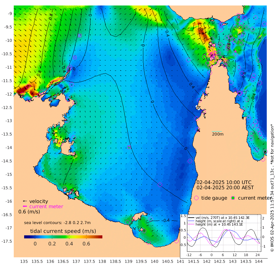 9cm/s -157T +3cm/s rms + 7cm/s -42T. ARA-GOC87 57m 22cm/s 5T +3cm/s rms + 2cm/s -2T. ARA-GOC87 60m 14cm/s 172T +2cm/s rms + 3cm/s 61T. ARA-GOC87 47m -91cm Daru -89cm Bobo Island -52cm Meer Island Barge -60cm Bramble Cay -77cm Unnamed Cay -79cm Pearce Cay -74cm Stephens Island -66cm Merrie England Shoals -79cm Mutacomal Reef -79cm Darnley Island Barge -48cm East Cay -87cm Yorke Island Barge -74cm Rennel Island -91cm Aureed Island -86cm Dungeness Reef -95cm Zagai Island -80cm Yam Island -87cm Dauan Island -84cm Saibai Island -92cm Phipi Reef -105cm Warrior Reef - West -28cm Mabuiag Island Barge -73cm Half Way Island -79cm Coconut Island -81cm Dugong Islet -77cm Poll Island -71cm Kirkcaldie Reef -79cm Suarji Island -81cm Sue Islet 67cm Hawkesbury Island -47cm Alert Patches -52cm Twin Island 40cm Badu Island -60cm St Pauls (Moa Island) 20cm Kubin (Moa Island) -25cm Ince Point -4cm Thursday Island -11cm Nardana Patches 14cm Turtle Head 37cm Round Island 59cm Goods Island 91cm Booby Island 89cm White Rocks Area 84cm Carpentaria -40cm Papou Point 82cm Bampfield Head 90cm Crab Island 86cm Red Wallis Island 39cm Packe Island -79cm Harrington Reef 55cm Herald Camp -23cm Sharp Point 30cm Red Island Point -16cm Possession Island -54cm Alpha Rock -65cm Frederick Point -78cm Wyborn Reef Light -76cm Tetley Island -49cm Triangle Reef -68cm Turtle Head Island -47cm Maclennan Cay -26cm Raine Island -73cm Mcsweeny Reef -67cm Collette Reef -48cm Shadwell Reef -73cm Hannibal Island -53cm Round Point 96cm Vrilya Point -50cm Cape Grenville -50cm Hicks Island -61cm Sir Charles Hardy Island -17cm Harvey Island -39cm Kay Reef -39cm Rocky Island -30cm Chapman Island -30cm Ham Reef -36cm Jubilee Reef -36cm Night Island -27cm Unnamed Reef No. 3 -37cm Morris Island -34cm 1st 3 Mile Opening -36cm Creech Reef -38cm Fife Island -41cm Eden Reef -34cm Stanley Island -37cm Normanby River 79cm Yabooma Island 61cm Hutchison River 69cm Elcho Island 73cm North West Crocodile Island 13cm Cape Wessel 50cm Stevens Island -52cm Guluwuru Island 48cm Hopeful Bay 30cm Auster Point 27cm Two Island Bay 14cm Cadell Strait -149cm Mallison Island -35cm Melville Bay (Gove Harbour) -34cm Truant Island -38cm Cape Arnhem -32cm Cape Grey -32cm Hawk Island -14cm Milner Bay (Groote Eylandt) -17cm Cape Beatrice -17cm West Island -13cm Centre Island -60cm Mornington Island -59cm West Wellesley Islands -80cm Bountiful Island -64cm Albert River Mouth -68cm Sweers Island -59cm Karumba -50cm Nassau River Offshore -36cm Christmas Creek 14cm Archer River 19cm Boyd Point 26cm Weipa (Humbug Point) 57cm Pennefather River 67cm Cullen Point