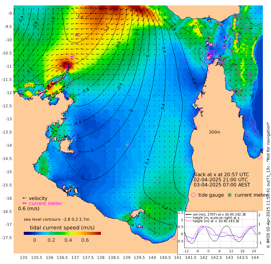 49cm/s -88T +3cm/s rms + 7cm/s -42T. ARA-GOC87 57m 15cm/s 175T +3cm/s rms + 2cm/s -2T. ARA-GOC87 60m 54cm/s -98T +2cm/s rms + 3cm/s 61T. ARA-GOC87 47m -1cm Daru -19cm Bobo Island -9cm Meer Island Barge -9cm Bramble Cay 3cm Unnamed Cay -15cm Pearce Cay -7cm Stephens Island 6cm Merrie England Shoals 11cm Mutacomal Reef -10cm Darnley Island Barge -8cm East Cay -7cm Yorke Island Barge 4cm Rennel Island -8cm Aureed Island 11cm Dungeness Reef 3cm Zagai Island 19cm Yam Island 29cm Dauan Island 24cm Saibai Island 35cm Phipi Reef 11cm Warrior Reef - West 51cm Mabuiag Island Barge 4cm Half Way Island 4cm Coconut Island 12cm Dugong Islet 16cm Poll Island 24cm Kirkcaldie Reef 42cm Suarji Island 18cm Sue Islet 93cm Hawkesbury Island 57cm Alert Patches 42cm Twin Island 80cm Badu Island 43cm St Pauls (Moa Island) 72cm Kubin (Moa Island) 61cm Ince Point 73cm Thursday Island 69cm Nardana Patches 84cm Turtle Head 83cm Round Island 99cm Goods Island 117cm Booby Island 112cm White Rocks Area 109cm Carpentaria 29cm Papou Point 114cm Bampfield Head 93cm Crab Island 111cm Red Wallis Island 93cm Packe Island 11cm Harrington Reef 110cm Herald Camp 14cm Sharp Point 67cm Red Island Point 56cm Possession Island 37cm Alpha Rock 26cm Frederick Point 3cm Wyborn Reef Light 6cm Tetley Island -2cm Triangle Reef -1cm Turtle Head Island 2cm Maclennan Cay -1cm Raine Island 1cm Mcsweeny Reef 1cm Collette Reef 2cm Shadwell Reef -2cm Hannibal Island -6cm Round Point 97cm Vrilya Point 6cm Cape Grenville -5cm Hicks Island 3cm Sir Charles Hardy Island 0cm Harvey Island 6cm Kay Reef 0cm Rocky Island 1cm Chapman Island 1cm Ham Reef -2cm Jubilee Reef 1cm Night Island 3cm Unnamed Reef No. 3 0cm Morris Island 6cm 1st 3 Mile Opening 2cm Creech Reef -6cm Fife Island -9cm Eden Reef 5cm Stanley Island -6cm Normanby River -164cm Yabooma Island -209cm Hutchison River -177cm Elcho Island -167cm North West Crocodile Island -156cm Cape Wessel -179cm Stevens Island -173cm Guluwuru Island -154cm Hopeful Bay -154cm Auster Point -167cm Two Island Bay -229cm Cadell Strait -207cm Mallison Island -148cm Melville Bay (Gove Harbour) -159cm Truant Island -106cm Cape Arnhem -66cm Cape Grey -48cm Hawk Island -14cm Milner Bay (Groote Eylandt) 2cm Cape Beatrice 53cm West Island 53cm Centre Island 45cm Mornington Island 55cm West Wellesley Islands 58cm Bountiful Island 21cm Albert River Mouth 20cm Sweers Island 33cm Karumba 66cm Nassau River Offshore 75cm Christmas Creek 75cm Archer River 75cm Boyd Point 84cm Weipa (Humbug Point) 72cm Pennefather River 93cm Cullen Point