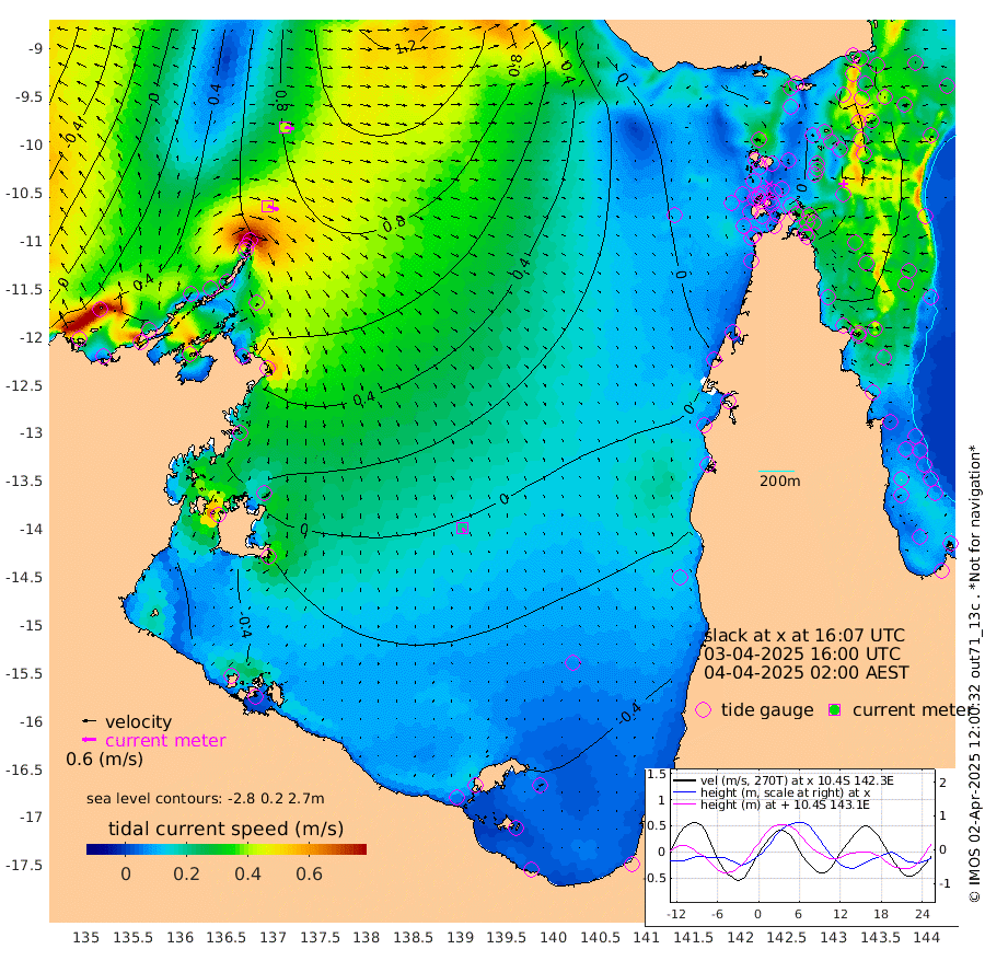 49cm/s 110T +3cm/s rms + 7cm/s -42T. ARA-GOC87 57m 20cm/s 156T +3cm/s rms + 2cm/s -2T. ARA-GOC87 60m 41cm/s 102T +2cm/s rms + 3cm/s 61T. ARA-GOC87 47m 55cm Daru 66cm Bobo Island 62cm Meer Island Barge 59cm Bramble Cay 52cm Unnamed Cay 68cm Pearce Cay 61cm Stephens Island 48cm Merrie England Shoals 42cm Mutacomal Reef 67cm Darnley Island Barge 60cm East Cay 63cm Yorke Island Barge 49cm Rennel Island 63cm Aureed Island 50cm Dungeness Reef 51cm Zagai Island 36cm Yam Island 46cm Dauan Island 44cm Saibai Island 41cm Phipi Reef 52cm Warrior Reef - West 17cm Mabuiag Island Barge 50cm Half Way Island 53cm Coconut Island 46cm Dugong Islet 40cm Poll Island 37cm Kirkcaldie Reef 25cm Suarji Island 41cm Sue Islet 10cm Hawkesbury Island 21cm Alert Patches 28cm Twin Island 25cm Badu Island 27cm St Pauls (Moa Island) 20cm Kubin (Moa Island) 19cm Ince Point 15cm Thursday Island 16cm Nardana Patches 17cm Turtle Head 7cm Round Island 15cm Goods Island 7cm Booby Island -1cm White Rocks Area 6cm Carpentaria 27cm Papou Point 11cm Bampfield Head 7cm Crab Island 4cm Red Wallis Island 15cm Packe Island 45cm Harrington Reef 4cm Herald Camp 0cm Sharp Point 13cm Red Island Point 16cm Possession Island 19cm Alpha Rock 37cm Frederick Point 48cm Wyborn Reef Light 45cm Tetley Island 55cm Triangle Reef 57cm Turtle Head Island 54cm Maclennan Cay 54cm Raine Island 54cm Mcsweeny Reef 54cm Collette Reef 54cm Shadwell Reef 59cm Hannibal Island 58cm Round Point 5cm Vrilya Point 49cm Cape Grenville 57cm Hicks Island 63cm Sir Charles Hardy Island 16cm Harvey Island 50cm Kay Reef 54cm Rocky Island 57cm Chapman Island 54cm Ham Reef 57cm Jubilee Reef 50cm Night Island 53cm Unnamed Reef No. 3 55cm Morris Island 56cm 1st 3 Mile Opening 57cm Creech Reef 55cm Fife Island 69cm Eden Reef 53cm Stanley Island 56cm Normanby River 49cm Yabooma Island 80cm Hutchison River 54cm Elcho Island 40cm North West Crocodile Island 82cm Cape Wessel 68cm Stevens Island 128cm Guluwuru Island 55cm Hopeful Bay 71cm Auster Point 76cm Two Island Bay 125cm Cadell Strait 228cm Mallison Island 98cm Melville Bay (Gove Harbour) 110cm Truant Island 76cm Cape Arnhem 30cm Cape Grey 6cm Hawk Island -42cm Milner Bay (Groote Eylandt) -54cm Cape Beatrice -101cm West Island -99cm Centre Island -80cm Mornington Island -86cm West Wellesley Islands -98cm Bountiful Island -121cm Albert River Mouth -132cm Sweers Island -121cm Karumba -46cm Nassau River Offshore -11cm Christmas Creek 7cm Archer River 15cm Boyd Point 11cm Weipa (Humbug Point) 10cm Pennefather River 5cm Cullen Point