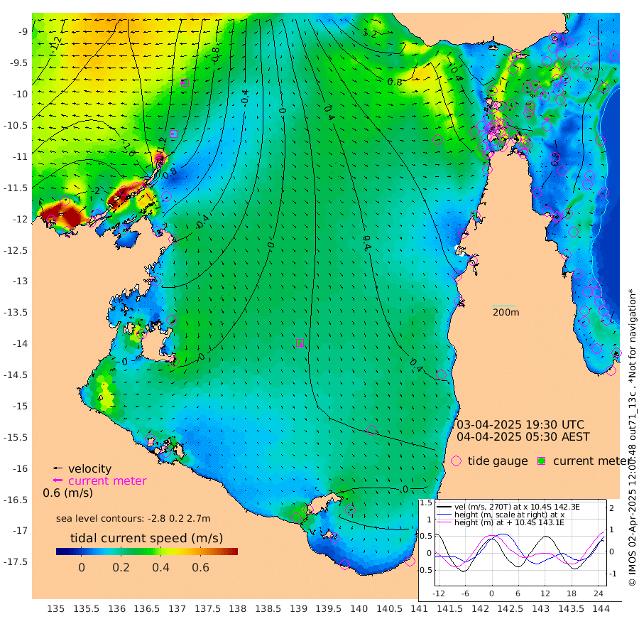 16cm/s -95T +3cm/s rms + 7cm/s -42T. ARA-GOC87 57m 32cm/s 160T +3cm/s rms + 2cm/s -2T. ARA-GOC87 60m 28cm/s -100T +2cm/s rms + 3cm/s 61T. ARA-GOC87 47m 73cm Daru 63cm Bobo Island 57cm Meer Island Barge 61cm Bramble Cay 76cm Unnamed Cay 65cm Pearce Cay 73cm Stephens Island 79cm Merrie England Shoals 78cm Mutacomal Reef 75cm Darnley Island Barge 56cm East Cay 76cm Yorke Island Barge 72cm Rennel Island 71cm Aureed Island 73cm Dungeness Reef 53cm Zagai Island 59cm Yam Island 41cm Dauan Island 43cm Saibai Island 43cm Phipi Reef 57cm Warrior Reef - West 42cm Mabuiag Island Barge 79cm Half Way Island 68cm Coconut Island 84cm Dugong Islet 66cm Poll Island 79cm Kirkcaldie Reef 65cm Suarji Island 74cm Sue Islet 45cm Hawkesbury Island 74cm Alert Patches 69cm Twin Island 38cm Badu Island 67cm St Pauls (Moa Island) 48cm Kubin (Moa Island) 63cm Ince Point 64cm Thursday Island 62cm Nardana Patches 59cm Turtle Head 41cm Round Island 52cm Goods Island 59cm Booby Island 49cm White Rocks Area 80cm Carpentaria 51cm Papou Point 55cm Bampfield Head 48cm Crab Island 57cm Red Wallis Island 59cm Packe Island 83cm Harrington Reef 58cm Herald Camp 22cm Sharp Point 46cm Red Island Point 54cm Possession Island 67cm Alpha Rock 73cm Frederick Point 69cm Wyborn Reef Light 68cm Tetley Island 51cm Triangle Reef 76cm Turtle Head Island 59cm Maclennan Cay 44cm Raine Island 74cm Mcsweeny Reef 71cm Collette Reef 59cm Shadwell Reef 75cm Hannibal Island 61cm Round Point 65cm Vrilya Point 69cm Cape Grenville 58cm Hicks Island 68cm Sir Charles Hardy Island 21cm Harvey Island 63cm Kay Reef 51cm Rocky Island 47cm Chapman Island 50cm Ham Reef 53cm Jubilee Reef 51cm Night Island 52cm Unnamed Reef No. 3 53cm Morris Island 56cm 1st 3 Mile Opening 58cm Creech Reef 51cm Fife Island 56cm Eden Reef 62cm Stanley Island 56cm Normanby River -219cm Yabooma Island -252cm Hutchison River -227cm Elcho Island -224cm North West Crocodile Island -132cm Cape Wessel -197cm Stevens Island -96cm Guluwuru Island -180cm Hopeful Bay -152cm Auster Point -155cm Two Island Bay -198cm Cadell Strait 10cm Mallison Island -101cm Melville Bay (Gove Harbour) -103cm Truant Island -62cm Cape Arnhem -47cm Cape Grey -46cm Hawk Island -36cm Milner Bay (Groote Eylandt) -25cm Cape Beatrice 10cm West Island 10cm Centre Island 5cm Mornington Island 15cm West Wellesley Islands -14cm Bountiful Island -74cm Albert River Mouth -79cm Sweers Island -62cm Karumba 35cm Nassau River Offshore 61cm Christmas Creek 56cm Archer River 62cm Boyd Point 55cm Weipa (Humbug Point) 59cm Pennefather River 59cm Cullen Point