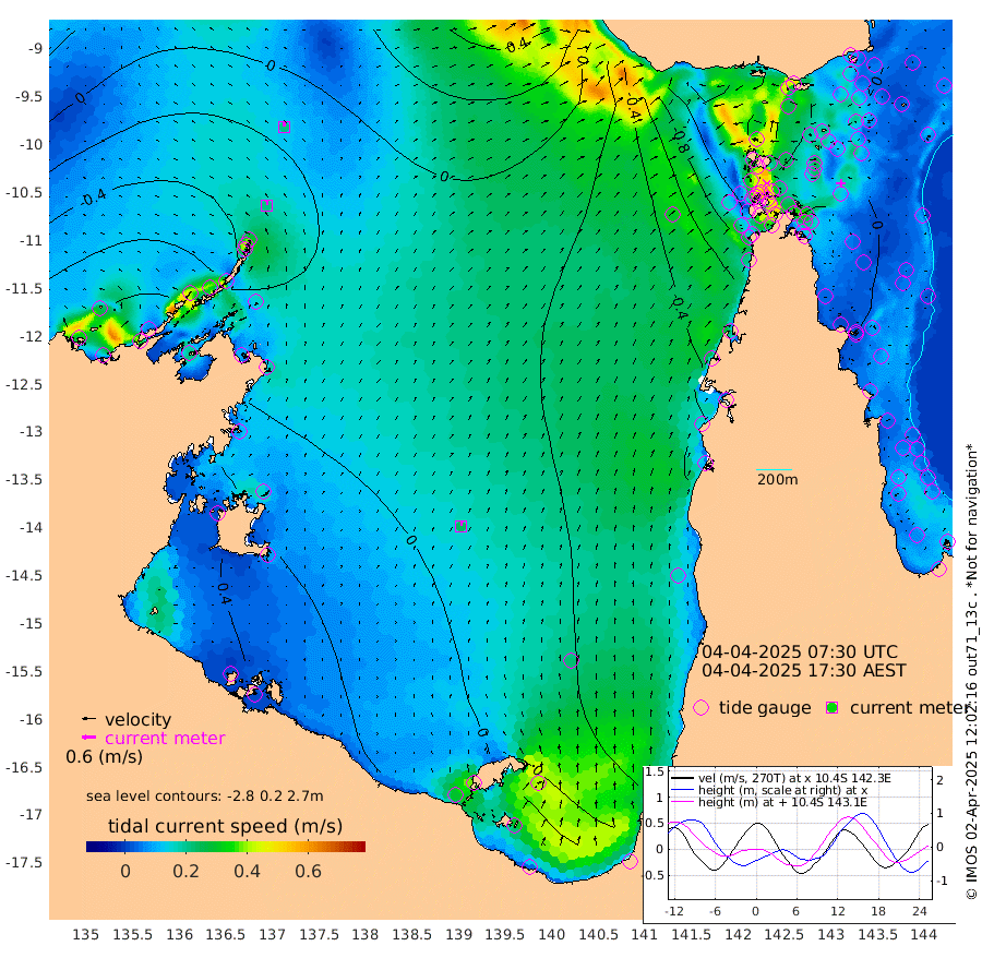 21cm/s 0T +3cm/s rms + 7cm/s -42T. ARA-GOC87 57m 24cm/s 6T +3cm/s rms + 2cm/s -2T. ARA-GOC87 60m 21cm/s 10T +2cm/s rms + 3cm/s 61T. ARA-GOC87 47m -30cm Daru -24cm Bobo Island -13cm Meer Island Barge -16cm Bramble Cay -18cm Unnamed Cay -31cm Pearce Cay -16cm Stephens Island -11cm Merrie England Shoals -25cm Mutacomal Reef -10cm Darnley Island Barge -16cm East Cay -16cm Yorke Island Barge -26cm Rennel Island -25cm Aureed Island -46cm Dungeness Reef -59cm Zagai Island -62cm Yam Island -116cm Dauan Island -93cm Saibai Island -118cm Phipi Reef -77cm Warrior Reef - West -100cm Mabuiag Island Barge -19cm Half Way Island -42cm Coconut Island -25cm Dugong Islet -52cm Poll Island -46cm Kirkcaldie Reef -77cm Suarji Island -40cm Sue Islet -155cm Hawkesbury Island -82cm Alert Patches -74cm Twin Island -165cm Badu Island -81cm St Pauls (Moa Island) -133cm Kubin (Moa Island) -96cm Ince Point -108cm Thursday Island -106cm Nardana Patches -134cm Turtle Head -130cm Round Island -158cm Goods Island -158cm Booby Island -153cm White Rocks Area -92cm Carpentaria -71cm Papou Point -150cm Bampfield Head -128cm Crab Island -149cm Red Wallis Island -144cm Packe Island -27cm Harrington Reef -143cm Herald Camp -12cm Sharp Point -113cm Red Island Point -88cm Possession Island -49cm Alpha Rock -56cm Frederick Point -31cm Wyborn Reef Light -36cm Tetley Island -27cm Triangle Reef -31cm Turtle Head Island -20cm Maclennan Cay -24cm Raine Island -19cm Mcsweeny Reef -15cm Collette Reef -17cm Shadwell Reef -13cm Hannibal Island -20cm Round Point -102cm Vrilya Point -11cm Cape Grenville -17cm Hicks Island -24cm Sir Charles Hardy Island -2cm Harvey Island -11cm Kay Reef -20cm Rocky Island -26cm Chapman Island -17cm Ham Reef -18cm Jubilee Reef -16cm Night Island -20cm Unnamed Reef No. 3 -19cm Morris Island -23cm 1st 3 Mile Opening -18cm Creech Reef -15cm Fife Island -18cm Eden Reef -10cm Stanley Island -7cm Normanby River -87cm Yabooma Island -110cm Hutchison River -84cm Elcho Island -81cm North West Crocodile Island -23cm Cape Wessel -58cm Stevens Island -17cm Guluwuru Island -51cm Hopeful Bay -37cm Auster Point -30cm Two Island Bay -68cm Cadell Strait 63cm Mallison Island -24cm Melville Bay (Gove Harbour) -23cm Truant Island -9cm Cape Arnhem 11cm Cape Grey 19cm Hawk Island 53cm Milner Bay (Groote Eylandt) 49cm Cape Beatrice 82cm West Island 84cm Centre Island 42cm Mornington Island 50cm West Wellesley Islands 22cm Bountiful Island 38cm Albert River Mouth 63cm Sweers Island 29cm Karumba -16cm Nassau River Offshore -51cm Christmas Creek -77cm Archer River -80cm Boyd Point -101cm Weipa (Humbug Point) -71cm Pennefather River -99cm Cullen Point