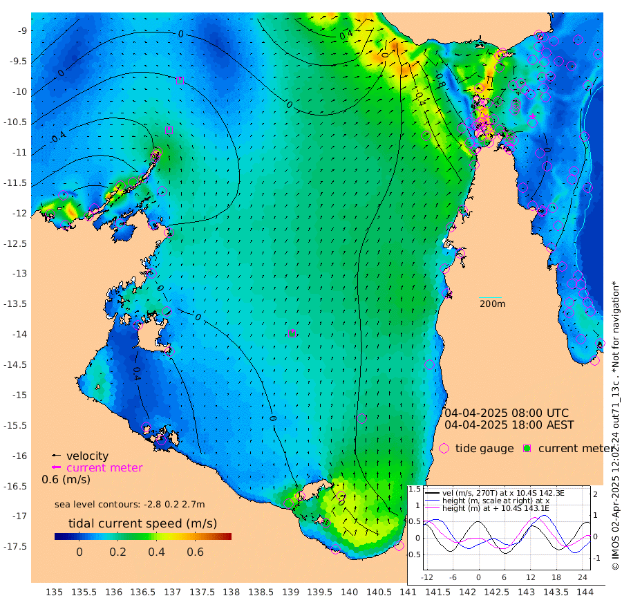 20cm/s -8T +3cm/s rms + 7cm/s -42T. ARA-GOC87 57m 27cm/s 9T +3cm/s rms + 2cm/s -2T. ARA-GOC87 60m 18cm/s 3T +2cm/s rms + 3cm/s 61T. ARA-GOC87 47m -31cm Daru -27cm Bobo Island -19cm Meer Island Barge -20cm Bramble Cay -18cm Unnamed Cay -34cm Pearce Cay -18cm Stephens Island -11cm Merrie England Shoals -23cm Mutacomal Reef -15cm Darnley Island Barge -20cm East Cay -20cm Yorke Island Barge -26cm Rennel Island -29cm Aureed Island -45cm Dungeness Reef -60cm Zagai Island -59cm Yam Island -118cm Dauan Island -95cm Saibai Island -119cm Phipi Reef -79cm Warrior Reef - West -89cm Mabuiag Island Barge -18cm Half Way Island -39cm Coconut Island -24cm Dugong Islet -48cm Poll Island -40cm Kirkcaldie Reef -70cm Suarji Island -38cm Sue Islet -129cm Hawkesbury Island -71cm Alert Patches -64cm Twin Island -144cm Badu Island -72cm St Pauls (Moa Island) -114cm Kubin (Moa Island) -83cm Ince Point -91cm Thursday Island -91cm Nardana Patches -116cm Turtle Head -109cm Round Island -135cm Goods Island -130cm Booby Island -125cm White Rocks Area -67cm Carpentaria -61cm Papou Point -121cm Bampfield Head -104cm Crab Island -122cm Red Wallis Island -123cm Packe Island -23cm Harrington Reef -119cm Herald Camp -10cm Sharp Point -95cm Red Island Point -74cm Possession Island -41cm Alpha Rock -48cm Frederick Point -28cm Wyborn Reef Light -32cm Tetley Island -31cm Triangle Reef -26cm Turtle Head Island -23cm Maclennan Cay -27cm Raine Island -20cm Mcsweeny Reef -18cm Collette Reef -21cm Shadwell Reef -16cm Hannibal Island -22cm Round Point -77cm Vrilya Point -12cm Cape Grenville -21cm Hicks Island -30cm Sir Charles Hardy Island -3cm Harvey Island -13cm Kay Reef -24cm Rocky Island -30cm Chapman Island -22cm Ham Reef -22cm Jubilee Reef -19cm Night Island -23cm Unnamed Reef No. 3 -23cm Morris Island -27cm 1st 3 Mile Opening -22cm Creech Reef -19cm Fife Island -25cm Eden Reef -14cm Stanley Island -11cm Normanby River -85cm Yabooma Island -113cm Hutchison River -86cm Elcho Island -81cm North West Crocodile Island -30cm Cape Wessel -61cm Stevens Island -36cm Guluwuru Island -55cm Hopeful Bay -42cm Auster Point -36cm Two Island Bay -80cm Cadell Strait 22cm Mallison Island -38cm Melville Bay (Gove Harbour) -37cm Truant Island -21cm Cape Arnhem 3cm Cape Grey 10cm Hawk Island 49cm Milner Bay (Groote Eylandt) 44cm Cape Beatrice 80cm West Island 83cm Centre Island 30cm Mornington Island 38cm West Wellesley Islands 6cm Bountiful Island 18cm Albert River Mouth 43cm Sweers Island 13cm Karumba -25cm Nassau River Offshore -55cm Christmas Creek -71cm Archer River -72cm Boyd Point -92cm Weipa (Humbug Point) -56cm Pennefather River -80cm Cullen Point