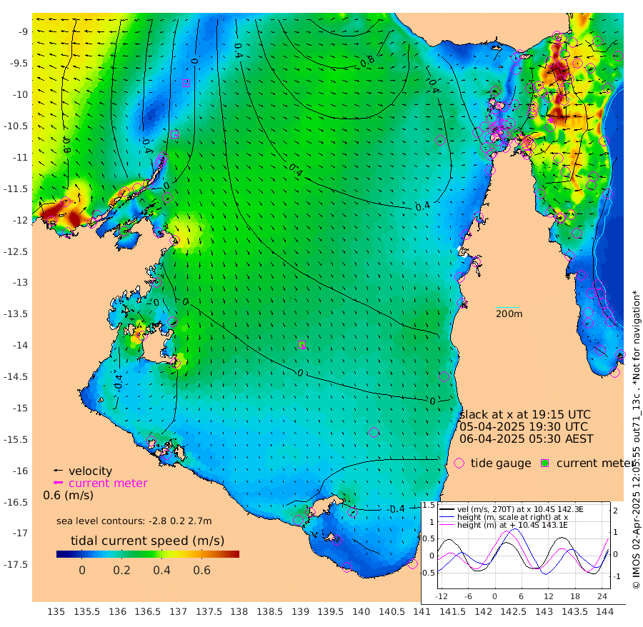 16cm/s 125T +3cm/s rms + 7cm/s -42T. ARA-GOC87 57m 36cm/s 161T +3cm/s rms + 2cm/s -2T. ARA-GOC87 60m 8cm/s 163T +2cm/s rms + 3cm/s 61T. ARA-GOC87 47m 82cm Daru 89cm Bobo Island 103cm Meer Island Barge 106cm Bramble Cay 101cm Unnamed Cay 102cm Pearce Cay 108cm Stephens Island 107cm Merrie England Shoals 87cm Mutacomal Reef 111cm Darnley Island Barge 109cm East Cay 98cm Yorke Island Barge 90cm Rennel Island 91cm Aureed Island 72cm Dungeness Reef 29cm Zagai Island 32cm Yam Island -2cm Dauan Island 3cm Saibai Island -4cm Phipi Reef 31cm Warrior Reef - West 0cm Mabuiag Island Barge 96cm Half Way Island 70cm Coconut Island 91cm Dugong Islet 52cm Poll Island 64cm Kirkcaldie Reef 23cm Suarji Island 56cm Sue Islet 37cm Hawkesbury Island 36cm Alert Patches 38cm Twin Island 16cm Badu Island 25cm St Pauls (Moa Island) 29cm Kubin (Moa Island) 27cm Ince Point 28cm Thursday Island 25cm Nardana Patches 30cm Turtle Head 16cm Round Island 36cm Goods Island 40cm Booby Island 32cm White Rocks Area 53cm Carpentaria 23cm Papou Point 36cm Bampfield Head 29cm Crab Island 40cm Red Wallis Island 40cm Packe Island 87cm Harrington Reef 37cm Herald Camp 0cm Sharp Point 28cm Red Island Point 23cm Possession Island 39cm Alpha Rock 58cm Frederick Point 78cm Wyborn Reef Light 70cm Tetley Island 86cm Triangle Reef 93cm Turtle Head Island 99cm Maclennan Cay 91cm Raine Island 99cm Mcsweeny Reef 100cm Collette Reef 95cm Shadwell Reef 110cm Hannibal Island 110cm Round Point 43cm Vrilya Point 108cm Cape Grenville 103cm Hicks Island 115cm Sir Charles Hardy Island 33cm Harvey Island 112cm Kay Reef 100cm Rocky Island 102cm Chapman Island 100cm Ham Reef 101cm Jubilee Reef 92cm Night Island 102cm Unnamed Reef No. 3 105cm Morris Island 98cm 1st 3 Mile Opening 105cm Creech Reef 105cm Fife Island 122cm Eden Reef 112cm Stanley Island 119cm Normanby River -73cm Yabooma Island -83cm Hutchison River -85cm Elcho Island -89cm North West Crocodile Island -13cm Cape Wessel -58cm Stevens Island 20cm Guluwuru Island -52cm Hopeful Bay -32cm Auster Point -27cm Two Island Bay -26cm Cadell Strait 156cm Mallison Island 0cm Melville Bay (Gove Harbour) 6cm Truant Island 4cm Cape Arnhem -17cm Cape Grey -32cm Hawk Island -60cm Milner Bay (Groote Eylandt) -56cm Cape Beatrice -65cm West Island -68cm Centre Island -62cm Mornington Island -54cm West Wellesley Islands -82cm Bountiful Island -148cm Albert River Mouth -156cm Sweers Island -135cm Karumba -11cm Nassau River Offshore 29cm Christmas Creek 43cm Archer River 49cm Boyd Point 44cm Weipa (Humbug Point) 41cm Pennefather River 40cm Cullen Point