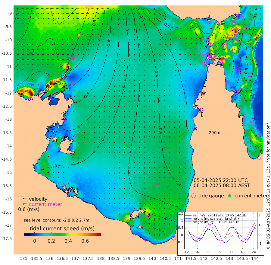 28cm/s -98T +3cm/s rms + 7cm/s -42T. ARA-GOC87 57m 35cm/s 169T +3cm/s rms + 2cm/s -2T. ARA-GOC87 60m 40cm/s -102T +2cm/s rms + 3cm/s 61T. ARA-GOC87 47m 126cm Daru 113cm Bobo Island 71cm Meer Island Barge 94cm Bramble Cay 121cm Unnamed Cay 119cm Pearce Cay 115cm Stephens Island 126cm Merrie England Shoals 134cm Mutacomal Reef 102cm Darnley Island Barge 81cm East Cay 111cm Yorke Island Barge 126cm Rennel Island 114cm Aureed Island 128cm Dungeness Reef 92cm Zagai Island 111cm Yam Island 73cm Dauan Island 63cm Saibai Island 88cm Phipi Reef 104cm Warrior Reef - West 80cm Mabuiag Island Barge 130cm Half Way Island 122cm Coconut Island 139cm Dugong Islet 123cm Poll Island 138cm Kirkcaldie Reef 122cm Suarji Island 116cm Sue Islet 109cm Hawkesbury Island 133cm Alert Patches 129cm Twin Island 93cm Badu Island 124cm St Pauls (Moa Island) 106cm Kubin (Moa Island) 119cm Ince Point 118cm Thursday Island 116cm Nardana Patches 115cm Turtle Head 92cm Round Island 105cm Goods Island 102cm Booby Island 104cm White Rocks Area 85cm Carpentaria 104cm Papou Point 90cm Bampfield Head 83cm Crab Island 105cm Red Wallis Island 117cm Packe Island 148cm Harrington Reef 105cm Herald Camp 35cm Sharp Point 103cm Red Island Point 106cm Possession Island 116cm Alpha Rock 134cm Frederick Point 126cm Wyborn Reef Light 125cm Tetley Island 71cm Triangle Reef 139cm Turtle Head Island 81cm Maclennan Cay 55cm Raine Island 116cm Mcsweeny Reef 104cm Collette Reef 74cm Shadwell Reef 111cm Hannibal Island 101cm Round Point 87cm Vrilya Point 98cm Cape Grenville 85cm Hicks Island 87cm Sir Charles Hardy Island 30cm Harvey Island 84cm Kay Reef 66cm Rocky Island 57cm Chapman Island 57cm Ham Reef 63cm Jubilee Reef 65cm Night Island 62cm Unnamed Reef No. 3 70cm Morris Island 64cm 1st 3 Mile Opening 69cm Creech Reef 71cm Fife Island 66cm Eden Reef 74cm Stanley Island 78cm Normanby River -153cm Yabooma Island -179cm Hutchison River -167cm Elcho Island -156cm North West Crocodile Island -119cm Cape Wessel -154cm Stevens Island -107cm Guluwuru Island -145cm Hopeful Bay -126cm Auster Point -129cm Two Island Bay -158cm Cadell Strait -105cm Mallison Island -100cm Melville Bay (Gove Harbour) -106cm Truant Island -71cm Cape Arnhem -53cm Cape Grey -49cm Hawk Island -48cm Milner Bay (Groote Eylandt) -27cm Cape Beatrice 3cm West Island -4cm Centre Island 8cm Mornington Island 15cm West Wellesley Islands -2cm Bountiful Island -59cm Albert River Mouth -72cm Sweers Island -37cm Karumba 52cm Nassau River Offshore 76cm Christmas Creek 70cm Archer River 73cm Boyd Point 72cm Weipa (Humbug Point) 71cm Pennefather River 76cm Cullen Point
