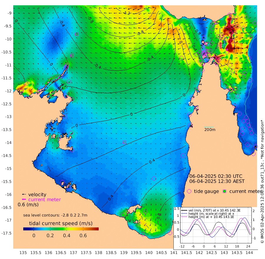 29cm/s -87T +3cm/s rms + 7cm/s -42T. ARA-GOC87 57m 18cm/s -119T +3cm/s rms + 2cm/s -2T. ARA-GOC87 60m 27cm/s -89T +2cm/s rms + 3cm/s 61T. ARA-GOC87 47m -46cm Daru -60cm Bobo Island -69cm Meer Island Barge -75cm Bramble Cay -71cm Unnamed Cay -65cm Pearce Cay -77cm Stephens Island -80cm Merrie England Shoals -56cm Mutacomal Reef -76cm Darnley Island Barge -76cm East Cay -63cm Yorke Island Barge -58cm Rennel Island -55cm Aureed Island -28cm Dungeness Reef 15cm Zagai Island 13cm Yam Island 95cm Dauan Island 75cm Saibai Island 95cm Phipi Reef 37cm Warrior Reef - West 56cm Mabuiag Island Barge -66cm Half Way Island -39cm Coconut Island -55cm Dugong Islet -14cm Poll Island -24cm Kirkcaldie Reef 22cm Suarji Island -17cm Sue Islet 38cm Hawkesbury Island 14cm Alert Patches 4cm Twin Island 64cm Badu Island 23cm St Pauls (Moa Island) 36cm Kubin (Moa Island) 26cm Ince Point 29cm Thursday Island 32cm Nardana Patches 43cm Turtle Head 33cm Round Island 44cm Goods Island 35cm Booby Island 32cm White Rocks Area -12cm Carpentaria 9cm Papou Point 9cm Bampfield Head 30cm Crab Island 33cm Red Wallis Island 36cm Packe Island -61cm Harrington Reef 31cm Herald Camp 12cm Sharp Point 30cm Red Island Point 12cm Possession Island -9cm Alpha Rock -22cm Frederick Point -55cm Wyborn Reef Light -46cm Tetley Island -49cm Triangle Reef -74cm Turtle Head Island -63cm Maclennan Cay -56cm Raine Island -68cm Mcsweeny Reef -67cm Collette Reef -59cm Shadwell Reef -78cm Hannibal Island -79cm Round Point 9cm Vrilya Point -78cm Cape Grenville -71cm Hicks Island -68cm Sir Charles Hardy Island -24cm Harvey Island -80cm Kay Reef -63cm Rocky Island -61cm Chapman Island -63cm Ham Reef -64cm Jubilee Reef -59cm Night Island -64cm Unnamed Reef No. 3 -68cm Morris Island -60cm 1st 3 Mile Opening -66cm Creech Reef -70cm Fife Island -79cm Eden Reef -77cm Stanley Island -88cm Normanby River -2cm Yabooma Island 10cm Hutchison River 10cm Elcho Island 16cm North West Crocodile Island -53cm Cape Wessel -22cm Stevens Island -53cm Guluwuru Island -18cm Hopeful Bay -39cm Auster Point -45cm Two Island Bay -28cm Cadell Strait -148cm Mallison Island -35cm Melville Bay (Gove Harbour) -49cm Truant Island -28cm Cape Arnhem -10cm Cape Grey 8cm Hawk Island 13cm Milner Bay (Groote Eylandt) 29cm Cape Beatrice 35cm West Island 34cm Centre Island 91cm Mornington Island 83cm West Wellesley Islands 128cm Bountiful Island 171cm Albert River Mouth 155cm Sweers Island 167cm Karumba 90cm Nassau River Offshore 67cm Christmas Creek 41cm Archer River 25cm Boyd Point 43cm Weipa (Humbug Point) 11cm Pennefather River 19cm Cullen Point