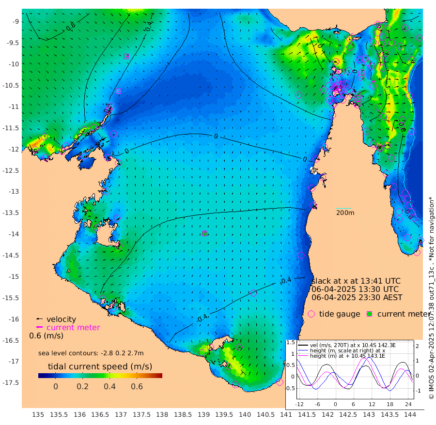 13cm/s 118T +3cm/s rms + 7cm/s -42T. ARA-GOC87 57m 29cm/s 12T +3cm/s rms + 2cm/s -2T. ARA-GOC87 60m 20cm/s 116T +2cm/s rms + 3cm/s 61T. ARA-GOC87 47m -41cm Daru -46cm Bobo Island -73cm Meer Island Barge -73cm Bramble Cay -59cm Unnamed Cay -61cm Pearce Cay -68cm Stephens Island -66cm Merrie England Shoals -43cm Mutacomal Reef -72cm Darnley Island Barge -78cm East Cay -56cm Yorke Island Barge -49cm Rennel Island -52cm Aureed Island -31cm Dungeness Reef 12cm Zagai Island 14cm Yam Island 27cm Dauan Island 29cm Saibai Island 18cm Phipi Reef 0cm Warrior Reef - West 53cm Mabuiag Island Barge -48cm Half Way Island -22cm Coconut Island -42cm Dugong Islet -5cm Poll Island -12cm Kirkcaldie Reef 21cm Suarji Island -6cm Sue Islet 60cm Hawkesbury Island 23cm Alert Patches 23cm Twin Island 63cm Badu Island 35cm St Pauls (Moa Island) 52cm Kubin (Moa Island) 37cm Ince Point 44cm Thursday Island 43cm Nardana Patches 38cm Turtle Head 66cm Round Island 47cm Goods Island 59cm Booby Island 58cm White Rocks Area 58cm Carpentaria 38cm Papou Point 84cm Bampfield Head 53cm Crab Island 53cm Red Wallis Island 40cm Packe Island -32cm Harrington Reef 59cm Herald Camp 11cm Sharp Point 39cm Red Island Point 45cm Possession Island 16cm Alpha Rock 0cm Frederick Point -24cm Wyborn Reef Light -14cm Tetley Island -56cm Triangle Reef -22cm Turtle Head Island -67cm Maclennan Cay -67cm Raine Island -59cm Mcsweeny Reef -64cm Collette Reef -67cm Shadwell Reef -73cm Hannibal Island -74cm Round Point 45cm Vrilya Point -74cm Cape Grenville -70cm Hicks Island -79cm Sir Charles Hardy Island -22cm Harvey Island -80cm Kay Reef -75cm Rocky Island -78cm Chapman Island -74cm Ham Reef -74cm Jubilee Reef -69cm Night Island -77cm Unnamed Reef No. 3 -78cm Morris Island -69cm 1st 3 Mile Opening -77cm Creech Reef -84cm Fife Island -97cm Eden Reef -84cm Stanley Island -90cm Normanby River 86cm Yabooma Island 88cm Hutchison River 82cm Elcho Island 82cm North West Crocodile Island 49cm Cape Wessel 74cm Stevens Island 11cm Guluwuru Island 59cm Hopeful Bay 61cm Auster Point 61cm Two Island Bay 49cm Cadell Strait -95cm Mallison Island 19cm Melville Bay (Gove Harbour) 26cm Truant Island 9cm Cape Arnhem 5cm Cape Grey -2cm Hawk Island 8cm Milner Bay (Groote Eylandt) -12cm Cape Beatrice -20cm West Island -14cm Centre Island -76cm Mornington Island -84cm West Wellesley Islands -89cm Bountiful Island -82cm Albert River Mouth -75cm Sweers Island -82cm Karumba -90cm Nassau River Offshore -79cm Christmas Creek -39cm Archer River -16cm Boyd Point -20cm Weipa (Humbug Point) 9cm Pennefather River 30cm Cullen Point