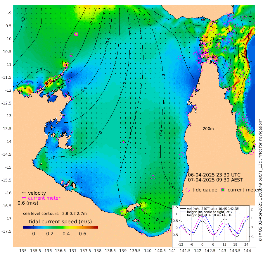 31cm/s -96T +3cm/s rms + 7cm/s -42T. ARA-GOC87 57m 31cm/s 175T +3cm/s rms + 2cm/s -2T. ARA-GOC87 60m 41cm/s -101T +2cm/s rms + 3cm/s 61T. ARA-GOC87 47m 130cm Daru 113cm Bobo Island 43cm Meer Island Barge 70cm Bramble Cay 107cm Unnamed Cay 112cm Pearce Cay 98cm Stephens Island 106cm Merrie England Shoals 132cm Mutacomal Reef 81cm Darnley Island Barge 52cm East Cay 102cm Yorke Island Barge 122cm Rennel Island 111cm Aureed Island 137cm Dungeness Reef 123cm Zagai Island 140cm Yam Island 121cm Dauan Island 103cm Saibai Island 136cm Phipi Reef 140cm Warrior Reef - West 115cm Mabuiag Island Barge 123cm Half Way Island 131cm Coconut Island 138cm Dugong Islet 142cm Poll Island 152cm Kirkcaldie Reef 153cm Suarji Island 131cm Sue Islet 125cm Hawkesbury Island 158cm Alert Patches 154cm Twin Island 118cm Badu Island 158cm St Pauls (Moa Island) 128cm Kubin (Moa Island) 145cm Ince Point 141cm Thursday Island 141cm Nardana Patches 134cm Turtle Head 111cm Round Island 115cm Goods Island 104cm Booby Island 109cm White Rocks Area 72cm Carpentaria 133cm Papou Point 88cm Bampfield Head 86cm Crab Island 109cm Red Wallis Island 131cm Packe Island 152cm Harrington Reef 113cm Herald Camp 47cm Sharp Point 122cm Red Island Point 128cm Possession Island 134cm Alpha Rock 151cm Frederick Point 129cm Wyborn Reef Light 134cm Tetley Island 53cm Triangle Reef 139cm Turtle Head Island 55cm Maclennan Cay 24cm Raine Island 102cm Mcsweeny Reef 85cm Collette Reef 48cm Shadwell Reef 89cm Hannibal Island 76cm Round Point 81cm Vrilya Point 69cm Cape Grenville 59cm Hicks Island 56cm Sir Charles Hardy Island 22cm Harvey Island 48cm Kay Reef 34cm Rocky Island 23cm Chapman Island 23cm Ham Reef 31cm Jubilee Reef 37cm Night Island 28cm Unnamed Reef No. 3 36cm Morris Island 31cm 1st 3 Mile Opening 35cm Creech Reef 38cm Fife Island 23cm Eden Reef 35cm Stanley Island 39cm Normanby River -128cm Yabooma Island -143cm Hutchison River -137cm Elcho Island -123cm North West Crocodile Island -113cm Cape Wessel -133cm Stevens Island -105cm Guluwuru Island -130cm Hopeful Bay -115cm Auster Point -115cm Two Island Bay -134cm Cadell Strait -161cm Mallison Island -94cm Melville Bay (Gove Harbour) -101cm Truant Island -68cm Cape Arnhem -49cm Cape Grey -40cm Hawk Island -42cm Milner Bay (Groote Eylandt) -20cm Cape Beatrice 7cm West Island 0cm Centre Island 21cm Mornington Island 21cm West Wellesley Islands 15cm Bountiful Island -25cm Albert River Mouth -41cm Sweers Island -1cm Karumba 58cm Nassau River Offshore 73cm Christmas Creek 62cm Archer River 64cm Boyd Point 65cm Weipa (Humbug Point) 64cm Pennefather River 71cm Cullen Point