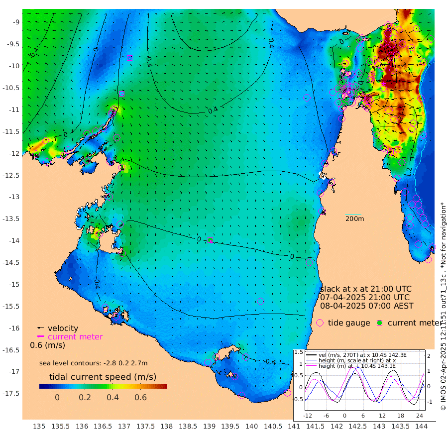 13cm/s 131T +3cm/s rms + 7cm/s -42T. ARA-GOC87 57m 32cm/s 165T +3cm/s rms + 2cm/s -2T. ARA-GOC87 60m 7cm/s 166T +2cm/s rms + 3cm/s 61T. ARA-GOC87 47m 103cm Daru 113cm Bobo Island 118cm Meer Island Barge 133cm Bramble Cay 127cm Unnamed Cay 130cm Pearce Cay 133cm Stephens Island 137cm Merrie England Shoals 116cm Mutacomal Reef 128cm Darnley Island Barge 132cm East Cay 114cm Yorke Island Barge 117cm Rennel Island 110cm Aureed Island 89cm Dungeness Reef 29cm Zagai Island 39cm Yam Island -17cm Dauan Island -13cm Saibai Island -13cm Phipi Reef 32cm Warrior Reef - West -5cm Mabuiag Island Barge 118cm Half Way Island 89cm Coconut Island 111cm Dugong Islet 66cm Poll Island 76cm Kirkcaldie Reef 30cm Suarji Island 62cm Sue Islet 50cm Hawkesbury Island 43cm Alert Patches 48cm Twin Island 18cm Badu Island 28cm St Pauls (Moa Island) 38cm Kubin (Moa Island) 32cm Ince Point 31cm Thursday Island 28cm Nardana Patches 35cm Turtle Head 28cm Round Island 42cm Goods Island 38cm Booby Island 42cm White Rocks Area 34cm Carpentaria 29cm Papou Point 42cm Bampfield Head 23cm Crab Island 43cm Red Wallis Island 51cm Packe Island 112cm Harrington Reef 45cm Herald Camp -4cm Sharp Point 34cm Red Island Point 31cm Possession Island 51cm Alpha Rock 74cm Frederick Point 106cm Wyborn Reef Light 96cm Tetley Island 102cm Triangle Reef 119cm Turtle Head Island 116cm Maclennan Cay 104cm Raine Island 123cm Mcsweeny Reef 121cm Collette Reef 109cm Shadwell Reef 134cm Hannibal Island 142cm Round Point 29cm Vrilya Point 132cm Cape Grenville 125cm Hicks Island 134cm Sir Charles Hardy Island 40cm Harvey Island 135cm Kay Reef 118cm Rocky Island 119cm Chapman Island 115cm Ham Reef 115cm Jubilee Reef 107cm Night Island 119cm Unnamed Reef No. 3 123cm Morris Island 108cm 1st 3 Mile Opening 119cm Creech Reef 127cm Fife Island 141cm Eden Reef 129cm Stanley Island 145cm Normanby River 14cm Yabooma Island 11cm Hutchison River -2cm Elcho Island -6cm North West Crocodile Island 35cm Cape Wessel 16cm Stevens Island 44cm Guluwuru Island 18cm Hopeful Bay 23cm Auster Point 29cm Two Island Bay 39cm Cadell Strait 143cm Mallison Island 31cm Melville Bay (Gove Harbour) 37cm Truant Island 18cm Cape Arnhem -9cm Cape Grey -21cm Hawk Island -59cm Milner Bay (Groote Eylandt) -55cm Cape Beatrice -75cm West Island -83cm Centre Island -70cm Mornington Island -63cm West Wellesley Islands -80cm Bountiful Island -143cm Albert River Mouth -149cm Sweers Island -128cm Karumba -17cm Nassau River Offshore 20cm Christmas Creek 34cm Archer River 38cm Boyd Point 37cm Weipa (Humbug Point) 25cm Pennefather River 30cm Cullen Point