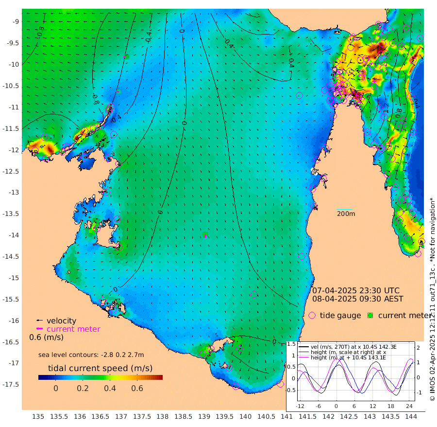 19cm/s -101T +3cm/s rms + 7cm/s -42T. ARA-GOC87 57m 33cm/s 171T +3cm/s rms + 2cm/s -2T. ARA-GOC87 60m 29cm/s -101T +2cm/s rms + 3cm/s 61T. ARA-GOC87 47m 153cm Daru 143cm Bobo Island 69cm Meer Island Barge 99cm Bramble Cay 133cm Unnamed Cay 143cm Pearce Cay 128cm Stephens Island 134cm Merrie England Shoals 155cm Mutacomal Reef 111cm Darnley Island Barge 81cm East Cay 129cm Yorke Island Barge 146cm Rennel Island 138cm Aureed Island 153cm Dungeness Reef 129cm Zagai Island 144cm Yam Island 106cm Dauan Island 92cm Saibai Island 120cm Phipi Reef 143cm Warrior Reef - West 98cm Mabuiag Island Barge 148cm Half Way Island 150cm Coconut Island 160cm Dugong Islet 153cm Poll Island 162cm Kirkcaldie Reef 151cm Suarji Island 141cm Sue Islet 102cm Hawkesbury Island 152cm Alert Patches 154cm Twin Island 91cm Badu Island 153cm St Pauls (Moa Island) 112cm Kubin (Moa Island) 134cm Ince Point 125cm Thursday Island 126cm Nardana Patches 113cm Turtle Head 91cm Round Island 89cm Goods Island 72cm Booby Island 80cm White Rocks Area 48cm Carpentaria 131cm Papou Point 62cm Bampfield Head 57cm Crab Island 81cm Red Wallis Island 112cm Packe Island 175cm Harrington Reef 90cm Herald Camp 44cm Sharp Point 105cm Red Island Point 120cm Possession Island 138cm Alpha Rock 161cm Frederick Point 153cm Wyborn Reef Light 154cm Tetley Island 75cm Triangle Reef 164cm Turtle Head Island 78cm Maclennan Cay 43cm Raine Island 128cm Mcsweeny Reef 111cm Collette Reef 69cm Shadwell Reef 118cm Hannibal Island 106cm Round Point 54cm Vrilya Point 95cm Cape Grenville 85cm Hicks Island 83cm Sir Charles Hardy Island 30cm Harvey Island 74cm Kay Reef 57cm Rocky Island 45cm Chapman Island 45cm Ham Reef 53cm Jubilee Reef 58cm Night Island 50cm Unnamed Reef No. 3 60cm Morris Island 49cm 1st 3 Mile Opening 57cm Creech Reef 65cm Fife Island 52cm Eden Reef 59cm Stanley Island 69cm Normanby River -97cm Yabooma Island -104cm Hutchison River -106cm Elcho Island -95cm North West Crocodile Island -70cm Cape Wessel -95cm Stevens Island -58cm Guluwuru Island -96cm Hopeful Bay -78cm Auster Point -73cm Two Island Bay -82cm Cadell Strait -80cm Mallison Island -55cm Melville Bay (Gove Harbour) -58cm Truant Island -40cm Cape Arnhem -35cm Cape Grey -31cm Hawk Island -47cm Milner Bay (Groote Eylandt) -28cm Cape Beatrice -14cm West Island -23cm Centre Island -3cm Mornington Island -4cm West Wellesley Islands -16cm Bountiful Island -64cm Albert River Mouth -76cm Sweers Island -38cm Karumba 35cm Nassau River Offshore 54cm Christmas Creek 43cm Archer River 48cm Boyd Point 43cm Weipa (Humbug Point) 43cm Pennefather River 48cm Cullen Point