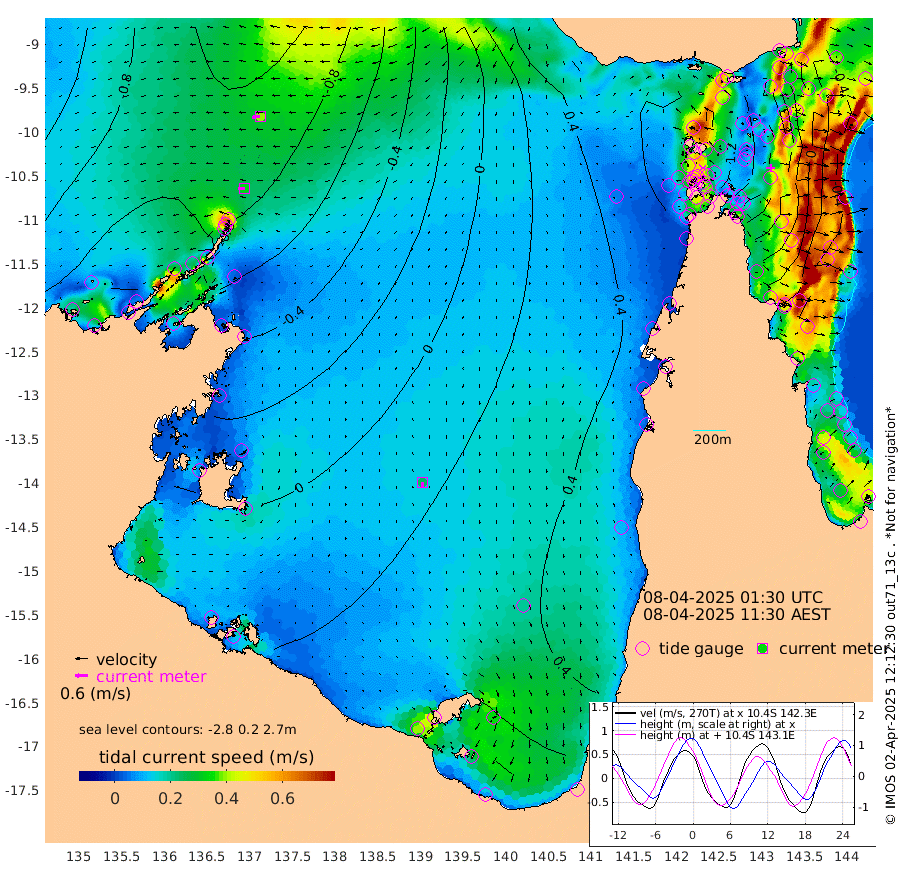 33cm/s -93T +3cm/s rms + 7cm/s -42T. ARA-GOC87 57m 24cm/s -174T +3cm/s rms + 2cm/s -2T. ARA-GOC87 60m 39cm/s -97T +2cm/s rms + 3cm/s 61T. ARA-GOC87 47m 61cm Daru 40cm Bobo Island -29cm Meer Island Barge -16cm Bramble Cay 20cm Unnamed Cay 30cm Pearce Cay 10cm Stephens Island 11cm Merrie England Shoals 52cm Mutacomal Reef 0cm Darnley Island Barge -30cm East Cay 29cm Yorke Island Barge 42cm Rennel Island 40cm Aureed Island 78cm Dungeness Reef 109cm Zagai Island 119cm Yam Island 153cm Dauan Island 133cm Saibai Island 159cm Phipi Reef 130cm Warrior Reef - West 128cm Mabuiag Island Barge 44cm Half Way Island 69cm Coconut Island 63cm Dugong Islet 98cm Poll Island 99cm Kirkcaldie Reef 129cm Suarji Island 93cm Sue Islet 111cm Hawkesbury Island 128cm Alert Patches 122cm Twin Island 121cm Badu Island 141cm St Pauls (Moa Island) 116cm Kubin (Moa Island) 128cm Ince Point 124cm Thursday Island 127cm Nardana Patches 119cm Turtle Head 100cm Round Island 100cm Goods Island 90cm Booby Island 87cm White Rocks Area 54cm Carpentaria 115cm Papou Point 64cm Bampfield Head 79cm Crab Island 92cm Red Wallis Island 110cm Packe Island 71cm Harrington Reef 98cm Herald Camp 49cm Sharp Point 107cm Red Island Point 107cm Possession Island 99cm Alpha Rock 100cm Frederick Point 56cm Wyborn Reef Light 68cm Tetley Island -6cm Triangle Reef 57cm Turtle Head Island -16cm Maclennan Cay -39cm Raine Island 20cm Mcsweeny Reef 6cm Collette Reef -20cm Shadwell Reef -1cm Hannibal Island -16cm Round Point 69cm Vrilya Point -18cm Cape Grenville -21cm Hicks Island -24cm Sir Charles Hardy Island -4cm Harvey Island -39cm Kay Reef -38cm Rocky Island -48cm Chapman Island -45cm Ham Reef -39cm Jubilee Reef -29cm Night Island -44cm Unnamed Reef No. 3 -41cm Morris Island -38cm 1st 3 Mile Opening -38cm Creech Reef -40cm Fife Island -61cm Eden Reef -47cm Stanley Island -53cm Normanby River -122cm Yabooma Island -129cm Hutchison River -120cm Elcho Island -104cm North West Crocodile Island -118cm Cape Wessel -129cm Stevens Island -109cm Guluwuru Island -127cm Hopeful Bay -116cm Auster Point -113cm Two Island Bay -126cm Cadell Strait -203cm Mallison Island -95cm Melville Bay (Gove Harbour) -106cm Truant Island -68cm Cape Arnhem -44cm Cape Grey -30cm Hawk Island -25cm Milner Bay (Groote Eylandt) -5cm Cape Beatrice 22cm West Island 18cm Centre Island 44cm Mornington Island 37cm West Wellesley Islands 43cm Bountiful Island 36cm Albert River Mouth 18cm Sweers Island 54cm Karumba 63cm Nassau River Offshore 65cm Christmas Creek 49cm Archer River 51cm Boyd Point 52cm Weipa (Humbug Point) 52cm Pennefather River 62cm Cullen Point