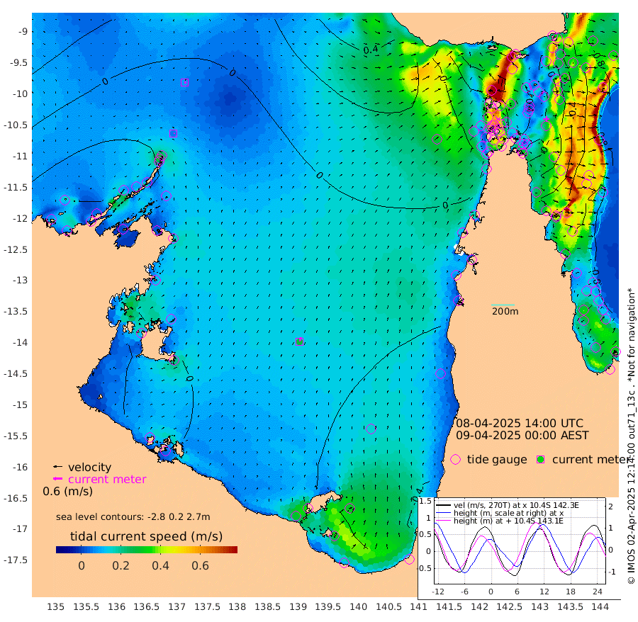 5cm/s 64T +3cm/s rms + 7cm/s -42T. ARA-GOC87 57m 28cm/s 15T +3cm/s rms + 2cm/s -2T. ARA-GOC87 60m 9cm/s 95T +2cm/s rms + 3cm/s 61T. ARA-GOC87 47m -7cm Daru -15cm Bobo Island -64cm Meer Island Barge -63cm Bramble Cay -35cm Unnamed Cay -36cm Pearce Cay -43cm Stephens Island -46cm Merrie England Shoals -15cm Mutacomal Reef -47cm Darnley Island Barge -72cm East Cay -24cm Yorke Island Barge -22cm Rennel Island -17cm Aureed Island 3cm Dungeness Reef 51cm Zagai Island 48cm Yam Island 50cm Dauan Island 52cm Saibai Island 44cm Phipi Reef 39cm Warrior Reef - West 57cm Mabuiag Island Barge -18cm Half Way Island 10cm Coconut Island -6cm Dugong Islet 29cm Poll Island 22cm Kirkcaldie Reef 61cm Suarji Island 29cm Sue Islet 7cm Hawkesbury Island 45cm Alert Patches 48cm Twin Island 25cm Badu Island 65cm St Pauls (Moa Island) 29cm Kubin (Moa Island) 47cm Ince Point 44cm Thursday Island 46cm Nardana Patches 23cm Turtle Head 35cm Round Island 5cm Goods Island 7cm Booby Island 10cm White Rocks Area 29cm Carpentaria 57cm Papou Point 33cm Bampfield Head 7cm Crab Island 5cm Red Wallis Island 10cm Packe Island 6cm Harrington Reef 18cm Herald Camp 26cm Sharp Point 17cm Red Island Point 50cm Possession Island 42cm Alpha Rock 29cm Frederick Point 2cm Wyborn Reef Light 13cm Tetley Island -48cm Triangle Reef 3cm Turtle Head Island -57cm Maclennan Cay -71cm Raine Island -35cm Mcsweeny Reef -45cm Collette Reef -60cm Shadwell Reef -52cm Hannibal Island -67cm Round Point 4cm Vrilya Point -63cm Cape Grenville -61cm Hicks Island -70cm Sir Charles Hardy Island -18cm Harvey Island -78cm Kay Reef -75cm Rocky Island -84cm Chapman Island -78cm Ham Reef -73cm Jubilee Reef -65cm Night Island -80cm Unnamed Reef No. 3 -78cm Morris Island -67cm 1st 3 Mile Opening -75cm Creech Reef -83cm Fife Island -99cm Eden Reef -83cm Stanley Island -90cm Normanby River -22cm Yabooma Island -26cm Hutchison River -20cm Elcho Island -19cm North West Crocodile Island -6cm Cape Wessel -17cm Stevens Island -17cm Guluwuru Island -27cm Hopeful Bay -6cm Auster Point -7cm Two Island Bay -38cm Cadell Strait -104cm Mallison Island -13cm Melville Bay (Gove Harbour) -8cm Truant Island -4cm Cape Arnhem 6cm Cape Grey 3cm Hawk Island 29cm Milner Bay (Groote Eylandt) 13cm Cape Beatrice 29cm West Island 35cm Centre Island -25cm Mornington Island -29cm West Wellesley Islands -40cm Bountiful Island -35cm Albert River Mouth -25cm Sweers Island -41cm Karumba -60cm Nassau River Offshore -63cm Christmas Creek -53cm Archer River -31cm Boyd Point -43cm Weipa (Humbug Point) -16cm Pennefather River -3cm Cullen Point