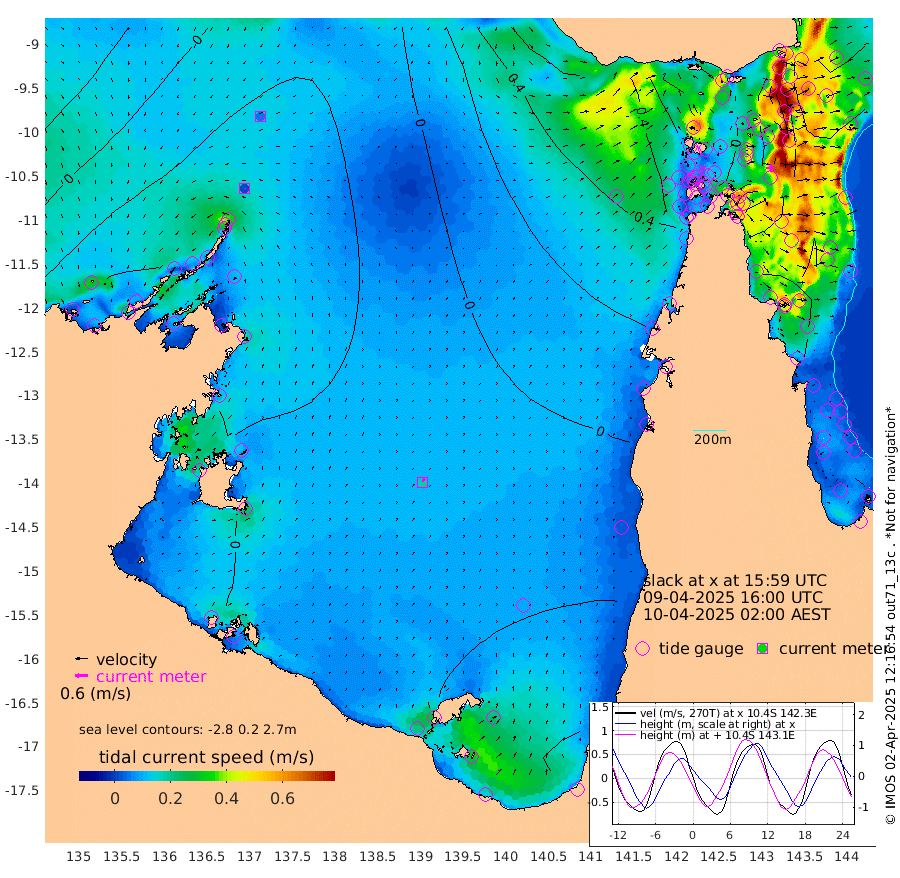 2cm/s 176T +3cm/s rms + 7cm/s -42T. ARA-GOC87 57m 19cm/s 22T +3cm/s rms + 2cm/s -2T. ARA-GOC87 60m 6cm/s 154T +2cm/s rms + 3cm/s 61T. ARA-GOC87 47m -83cm Daru -92cm Bobo Island -85cm Meer Island Barge -106cm Bramble Cay -98cm Unnamed Cay -107cm Pearce Cay -104cm Stephens Island -111cm Merrie England Shoals -91cm Mutacomal Reef -94cm Darnley Island Barge -102cm East Cay -83cm Yorke Island Barge -92cm Rennel Island -85cm Aureed Island -65cm Dungeness Reef -8cm Zagai Island -10cm Yam Island 37cm Dauan Island 39cm Saibai Island 12cm Phipi Reef -17cm Warrior Reef - West 42cm Mabuiag Island Barge -86cm Half Way Island -67cm Coconut Island -77cm Dugong Islet -40cm Poll Island -48cm Kirkcaldie Reef -5cm Suarji Island -30cm Sue Islet 28cm Hawkesbury Island -8cm Alert Patches -11cm Twin Island 39cm Badu Island 8cm St Pauls (Moa Island) 26cm Kubin (Moa Island) 12cm Ince Point 22cm Thursday Island 21cm Nardana Patches 19cm Turtle Head 38cm Round Island 29cm Goods Island 50cm Booby Island 37cm White Rocks Area 72cm Carpentaria 5cm Papou Point 64cm Bampfield Head 40cm Crab Island 39cm Red Wallis Island 17cm Packe Island -82cm Harrington Reef 48cm Herald Camp 8cm Sharp Point 8cm Red Island Point 13cm Possession Island -15cm Alpha Rock -42cm Frederick Point -77cm Wyborn Reef Light -66cm Tetley Island -72cm Triangle Reef -80cm Turtle Head Island -80cm Maclennan Cay -76cm Raine Island -94cm Mcsweeny Reef -94cm Collette Reef -81cm Shadwell Reef -107cm Hannibal Island -115cm Round Point 42cm Vrilya Point -100cm Cape Grenville -94cm Hicks Island -89cm Sir Charles Hardy Island -30cm Harvey Island -102cm Kay Reef -87cm Rocky Island -89cm Chapman Island -81cm Ham Reef -82cm Jubilee Reef -80cm Night Island -87cm Unnamed Reef No. 3 -93cm Morris Island -72cm 1st 3 Mile Opening -85cm Creech Reef -103cm Fife Island -106cm Eden Reef -95cm Stanley Island -111cm Normanby River -32cm Yabooma Island -47cm Hutchison River -34cm Elcho Island -34cm North West Crocodile Island -22cm Cape Wessel -37cm Stevens Island -32cm Guluwuru Island -38cm Hopeful Bay -23cm Auster Point -21cm Two Island Bay -58cm Cadell Strait -88cm Mallison Island -30cm Melville Bay (Gove Harbour) -26cm Truant Island -17cm Cape Arnhem -10cm Cape Grey -15cm Hawk Island 12cm Milner Bay (Groote Eylandt) -4cm Cape Beatrice 11cm West Island 18cm Centre Island -41cm Mornington Island -40cm West Wellesley Islands -44cm Bountiful Island -47cm Albert River Mouth -46cm Sweers Island -57cm Karumba -56cm Nassau River Offshore -45cm Christmas Creek -23cm Archer River 2cm Boyd Point -2cm Weipa (Humbug Point) 10cm Pennefather River 38cm Cullen Point