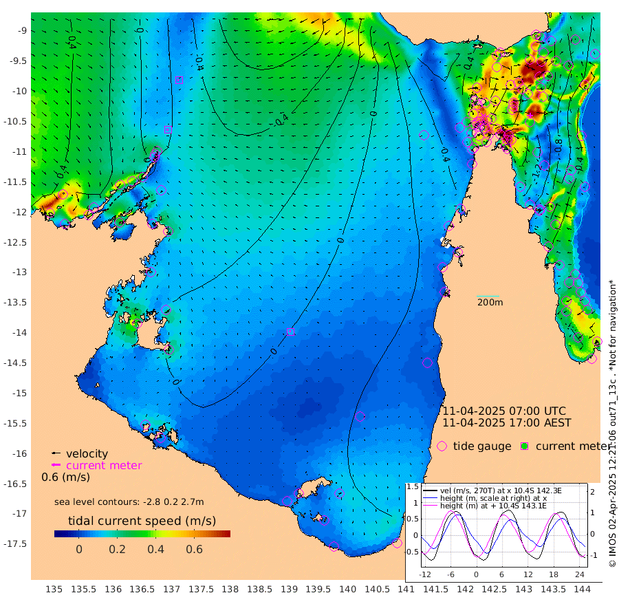12cm/s -95T +3cm/s rms + 7cm/s -42T. ARA-GOC87 57m 9cm/s -53T +3cm/s rms + 2cm/s -2T. ARA-GOC87 60m 9cm/s -104T +2cm/s rms + 3cm/s 61T. ARA-GOC87 47m -127cm Daru -131cm Bobo Island -52cm Meer Island Barge -79cm Bramble Cay -109cm Unnamed Cay -118cm Pearce Cay -103cm Stephens Island -103cm Merrie England Shoals -128cm Mutacomal Reef -91cm Darnley Island Barge -60cm East Cay -109cm Yorke Island Barge -116cm Rennel Island -124cm Aureed Island -121cm Dungeness Reef -125cm Zagai Island -122cm Yam Island -81cm Dauan Island -83cm Saibai Island -80cm Phipi Reef -125cm Warrior Reef - West -63cm Mabuiag Island Barge -114cm Half Way Island -131cm Coconut Island -124cm Dugong Islet -127cm Poll Island -119cm Kirkcaldie Reef -131cm Suarji Island -116cm Sue Islet 5cm Hawkesbury Island -101cm Alert Patches -114cm Twin Island -12cm Badu Island -116cm St Pauls (Moa Island) -39cm Kubin (Moa Island) -81cm Ince Point -63cm Thursday Island -68cm Nardana Patches -36cm Turtle Head -22cm Round Island 4cm Goods Island 30cm Booby Island 11cm White Rocks Area 19cm Carpentaria -100cm Papou Point 7cm Bampfield Head 39cm Crab Island 16cm Red Wallis Island -26cm Packe Island -142cm Harrington Reef 3cm Herald Camp -33cm Sharp Point -24cm Red Island Point -71cm Possession Island -113cm Alpha Rock -126cm Frederick Point -135cm Wyborn Reef Light -136cm Tetley Island -60cm Triangle Reef -126cm Turtle Head Island -57cm Maclennan Cay -25cm Raine Island -104cm Mcsweeny Reef -88cm Collette Reef -48cm Shadwell Reef -95cm Hannibal Island -81cm Round Point 49cm Vrilya Point -69cm Cape Grenville -63cm Hicks Island -67cm Sir Charles Hardy Island -22cm Harvey Island -51cm Kay Reef -38cm Rocky Island -30cm Chapman Island -28cm Ham Reef -34cm Jubilee Reef -38cm Night Island -31cm Unnamed Reef No. 3 -39cm Morris Island -29cm 1st 3 Mile Opening -35cm Creech Reef -44cm Fife Island -33cm Eden Reef -34cm Stanley Island -45cm Normanby River 7cm Yabooma Island -10cm Hutchison River 5cm Elcho Island 9cm North West Crocodile Island -44cm Cape Wessel -16cm Stevens Island -60cm Guluwuru Island -1cm Hopeful Bay -23cm Auster Point -23cm Two Island Bay -25cm Cadell Strait -86cm Mallison Island -49cm Melville Bay (Gove Harbour) -56cm Truant Island -41cm Cape Arnhem -23cm Cape Grey -14cm Hawk Island 1cm Milner Bay (Groote Eylandt) 7cm Cape Beatrice 13cm West Island 19cm Centre Island 26cm Mornington Island 25cm West Wellesley Islands 29cm Bountiful Island 60cm Albert River Mouth 63cm Sweers Island 65cm Karumba 26cm Nassau River Offshore 21cm Christmas Creek 37cm Archer River 24cm Boyd Point 35cm Weipa (Humbug Point) 46cm Pennefather River 35cm Cullen Point