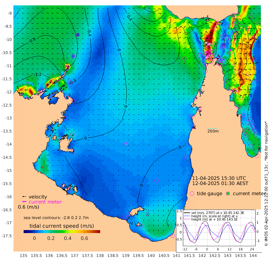 4cm/s 5T +3cm/s rms + 7cm/s -42T. ARA-GOC87 57m 13cm/s 40T +3cm/s rms + 2cm/s -2T. ARA-GOC87 60m 1cm/s -1T +2cm/s rms + 3cm/s 61T. ARA-GOC87 47m -1cm Daru -3cm Bobo Island -42cm Meer Island Barge -51cm Bramble Cay -30cm Unnamed Cay -21cm Pearce Cay -30cm Stephens Island -43cm Merrie England Shoals -16cm Mutacomal Reef -25cm Darnley Island Barge -52cm East Cay -7cm Yorke Island Barge -16cm Rennel Island 3cm Aureed Island 14cm Dungeness Reef 61cm Zagai Island 51cm Yam Island 69cm Dauan Island 74cm Saibai Island 60cm Phipi Reef 56cm Warrior Reef - West 55cm Mabuiag Island Barge -10cm Half Way Island 16cm Coconut Island 3cm Dugong Islet 32cm Poll Island 26cm Kirkcaldie Reef 67cm Suarji Island 38cm Sue Islet -17cm Hawkesbury Island 44cm Alert Patches 47cm Twin Island 12cm Badu Island 63cm St Pauls (Moa Island) 12cm Kubin (Moa Island) 42cm Ince Point 37cm Thursday Island 39cm Nardana Patches 17cm Turtle Head 7cm Round Island -7cm Goods Island -5cm Booby Island -8cm White Rocks Area 30cm Carpentaria 51cm Papou Point 4cm Bampfield Head -5cm Crab Island -6cm Red Wallis Island -2cm Packe Island 11cm Harrington Reef -2cm Herald Camp 28cm Sharp Point 12cm Red Island Point 36cm Possession Island 36cm Alpha Rock 30cm Frederick Point -4cm Wyborn Reef Light 6cm Tetley Island -30cm Triangle Reef -5cm Turtle Head Island -36cm Maclennan Cay -51cm Raine Island -23cm Mcsweeny Reef -32cm Collette Reef -42cm Shadwell Reef -39cm Hannibal Island -58cm Round Point -1cm Vrilya Point -50cm Cape Grenville -46cm Hicks Island -44cm Sir Charles Hardy Island -13cm Harvey Island -62cm Kay Reef -54cm Rocky Island -59cm Chapman Island -53cm Ham Reef -51cm Jubilee Reef -45cm Night Island -56cm Unnamed Reef No. 3 -58cm Morris Island -45cm 1st 3 Mile Opening -50cm Creech Reef -61cm Fife Island -71cm Eden Reef -62cm Stanley Island -71cm Normanby River -135cm Yabooma Island -144cm Hutchison River -128cm Elcho Island -127cm North West Crocodile Island -62cm Cape Wessel -117cm Stevens Island -42cm Guluwuru Island -115cm Hopeful Bay -79cm Auster Point -83cm Two Island Bay -116cm Cadell Strait -73cm Mallison Island -47cm Melville Bay (Gove Harbour) -45cm Truant Island -19cm Cape Arnhem -4cm Cape Grey -9cm Hawk Island 19cm Milner Bay (Groote Eylandt) 11cm Cape Beatrice 41cm West Island 47cm Centre Island 8cm Mornington Island 9cm West Wellesley Islands -3cm Bountiful Island -17cm Albert River Mouth -12cm Sweers Island -23cm Karumba -16cm Nassau River Offshore -17cm Christmas Creek -25cm Archer River -8cm Boyd Point -21cm Weipa (Humbug Point) -10cm Pennefather River -2cm Cullen Point