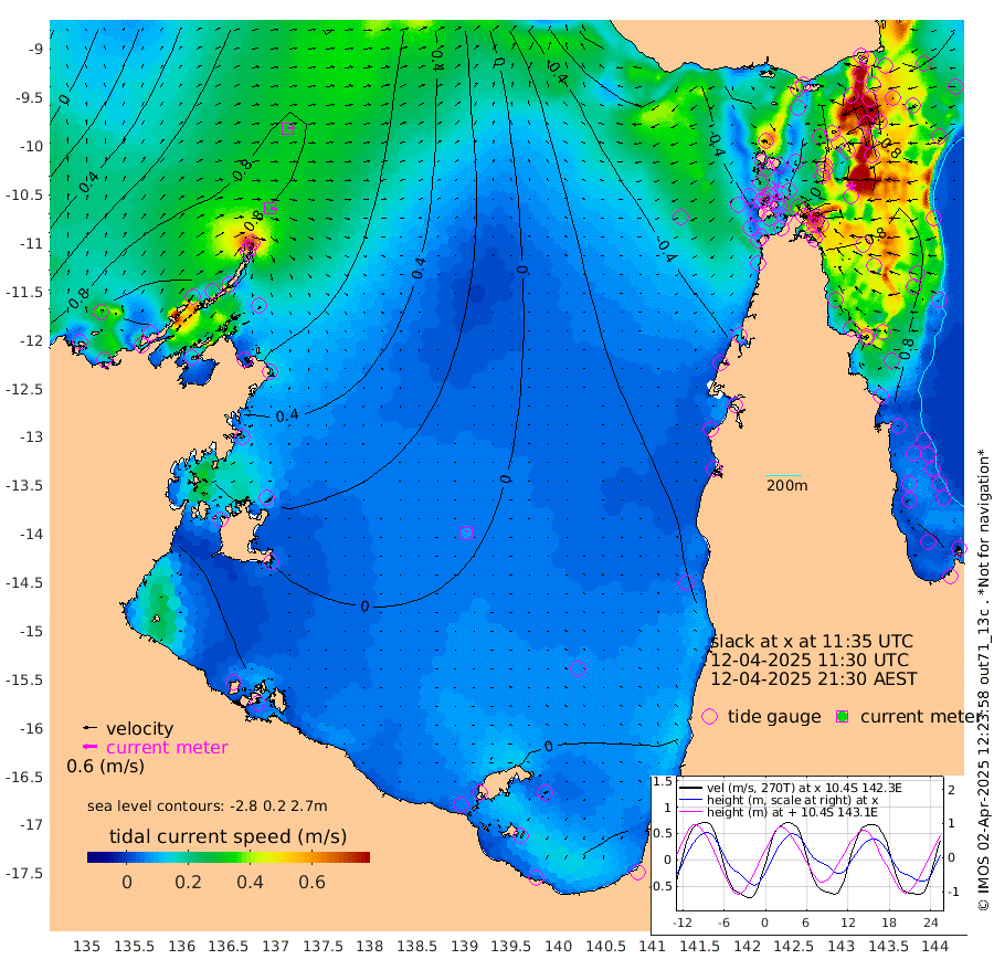 29cm/s 100T +3cm/s rms + 7cm/s -42T. ARA-GOC87 57m 9cm/s -17T +3cm/s rms + 2cm/s -2T. ARA-GOC87 60m 31cm/s 89T +2cm/s rms + 3cm/s 61T. ARA-GOC87 47m 89cm Daru 100cm Bobo Island 71cm Meer Island Barge 96cm Bramble Cay 96cm Unnamed Cay 102cm Pearce Cay 95cm Stephens Island 105cm Merrie England Shoals 93cm Mutacomal Reef 84cm Darnley Island Barge 86cm East Cay 80cm Yorke Island Barge 90cm Rennel Island 84cm Aureed Island 69cm Dungeness Reef 36cm Zagai Island 28cm Yam Island -20cm Dauan Island -17cm Saibai Island 14cm Phipi Reef 31cm Warrior Reef - West -15cm Mabuiag Island Barge 79cm Half Way Island 85cm Coconut Island 69cm Dugong Islet 53cm Poll Island 56cm Kirkcaldie Reef 33cm Suarji Island 43cm Sue Islet -24cm Hawkesbury Island 29cm Alert Patches 31cm Twin Island -11cm Badu Island 15cm St Pauls (Moa Island) -16cm Kubin (Moa Island) 5cm Ince Point -6cm Thursday Island -4cm Nardana Patches -8cm Turtle Head -12cm Round Island -22cm Goods Island -43cm Booby Island -28cm White Rocks Area -65cm Carpentaria 21cm Papou Point -25cm Bampfield Head -31cm Crab Island -41cm Red Wallis Island -18cm Packe Island 87cm Harrington Reef -45cm Herald Camp -2cm Sharp Point 5cm Red Island Point 17cm Possession Island 30cm Alpha Rock 56cm Frederick Point 92cm Wyborn Reef Light 83cm Tetley Island 62cm Triangle Reef 95cm Turtle Head Island 63cm Maclennan Cay 64cm Raine Island 89cm Mcsweeny Reef 89cm Collette Reef 70cm Shadwell Reef 100cm Hannibal Island 104cm Round Point -42cm Vrilya Point 84cm Cape Grenville 82cm Hicks Island 69cm Sir Charles Hardy Island 24cm Harvey Island 84cm Kay Reef 70cm Rocky Island 71cm Chapman Island 62cm Ham Reef 66cm Jubilee Reef 61cm Night Island 67cm Unnamed Reef No. 3 75cm Morris Island 60cm 1st 3 Mile Opening 65cm Creech Reef 78cm Fife Island 82cm Eden Reef 72cm Stanley Island 85cm Normanby River 110cm Yabooma Island 146cm Hutchison River 116cm Elcho Island 107cm North West Crocodile Island 88cm Cape Wessel 123cm Stevens Island 98cm Guluwuru Island 109cm Hopeful Bay 98cm Auster Point 83cm Two Island Bay 134cm Cadell Strait 134cm Mallison Island 92cm Melville Bay (Gove Harbour) 96cm Truant Island 62cm Cape Arnhem 46cm Cape Grey 37cm Hawk Island 8cm Milner Bay (Groote Eylandt) 1cm Cape Beatrice -36cm West Island -34cm Centre Island -2cm Mornington Island -10cm West Wellesley Islands -1cm Bountiful Island 8cm Albert River Mouth 19cm Sweers Island 11cm Karumba -6cm Nassau River Offshore -9cm Christmas Creek -7cm Archer River -25cm Boyd Point -23cm Weipa (Humbug Point) -17cm Pennefather River -48cm Cullen Point